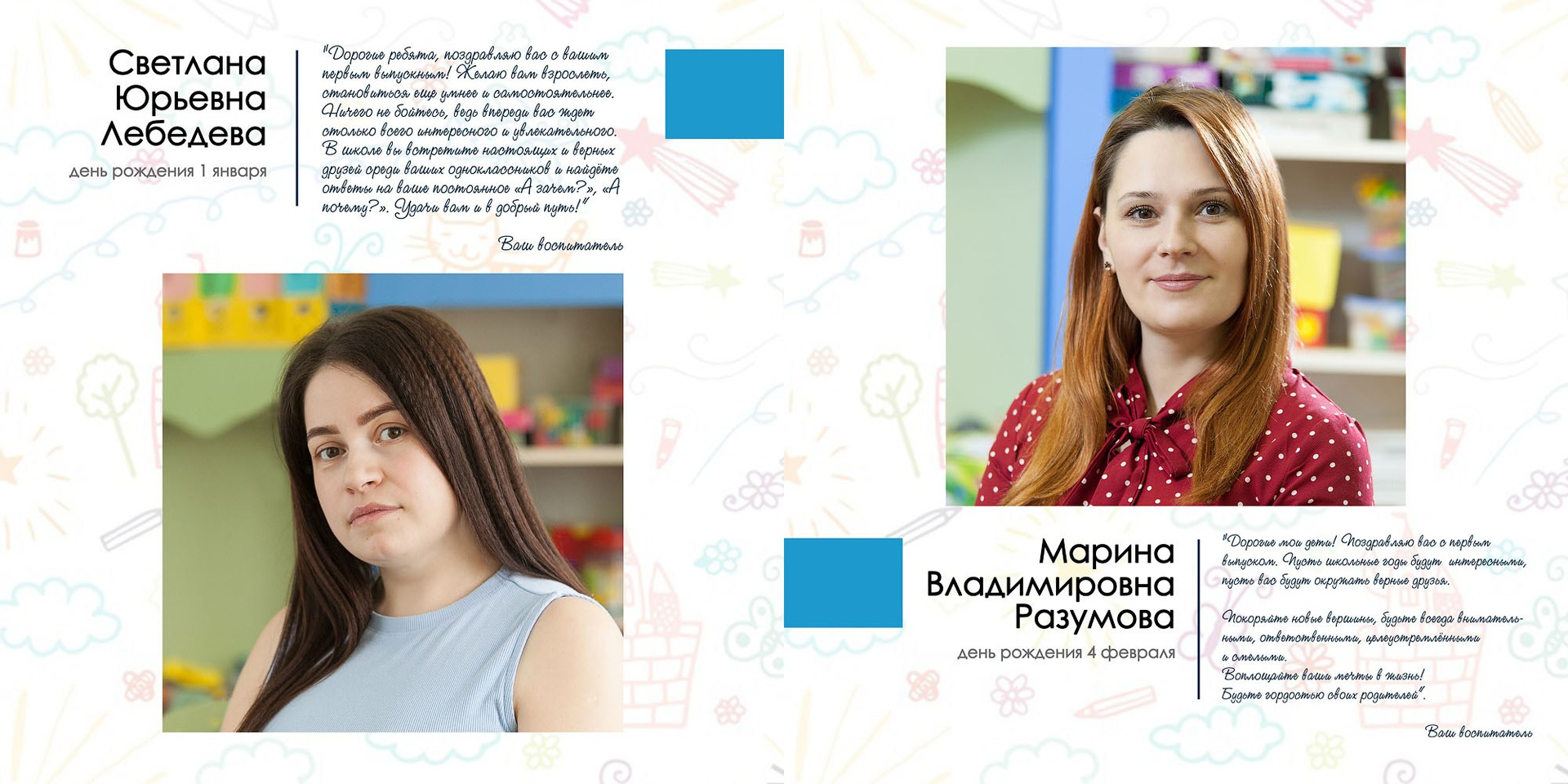 - разворот с напутственными словами воспитателей