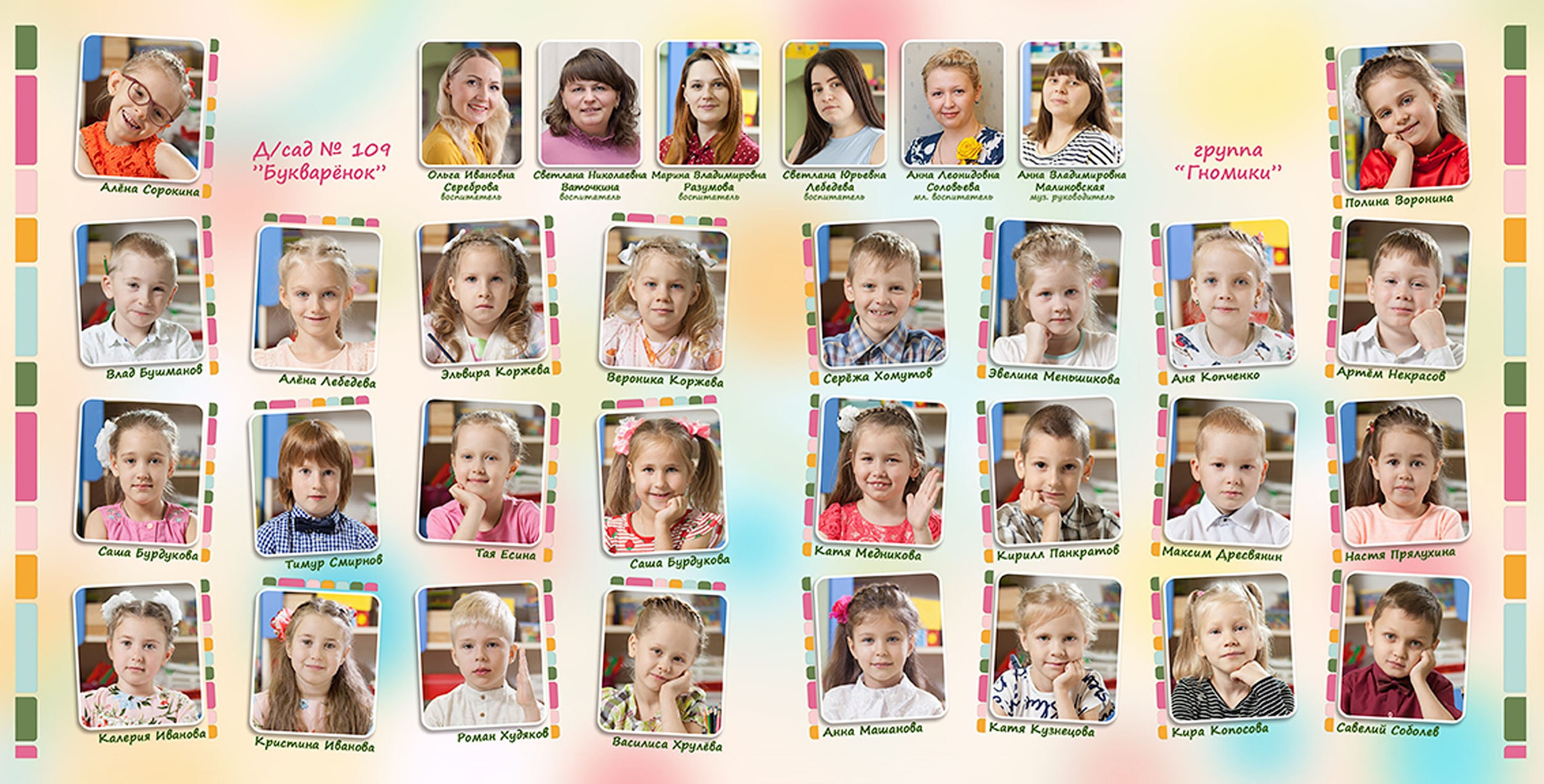 - виньетка с друзьями и воспитателями 20*40 см