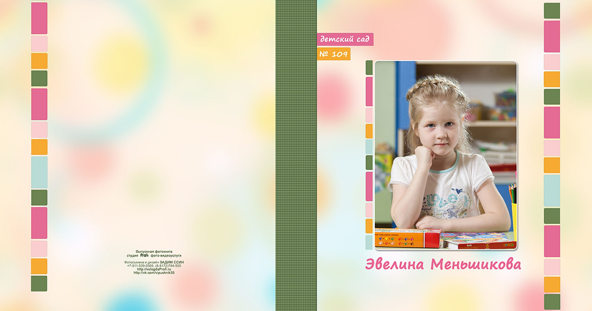 Выпускная фотокнига «Радуга». Формат 20*20 см с глянцевой ламинированной обложкой.