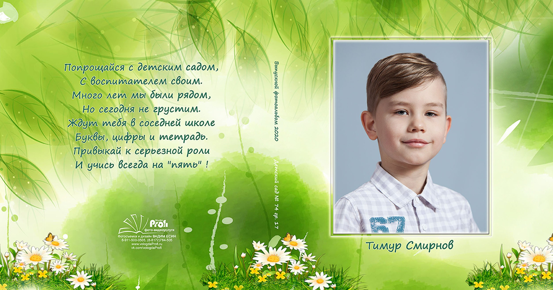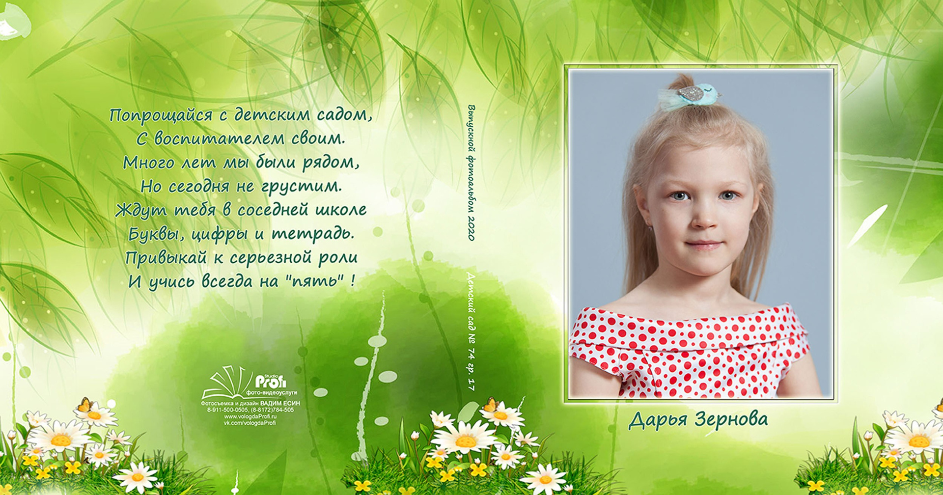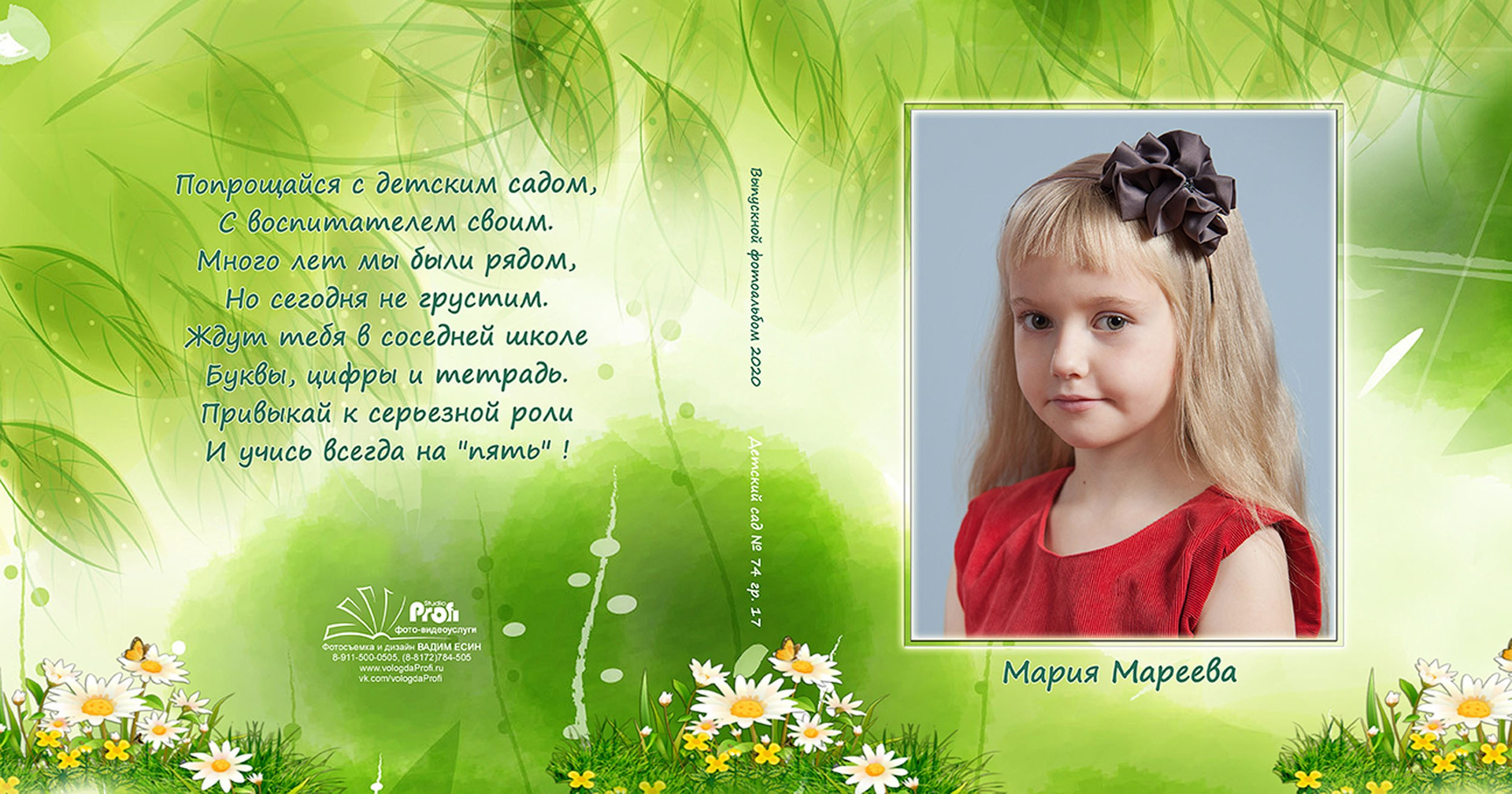 Выпускная фотокнига «Поляна». Формат 20*20 см с глянцевой ламинированной обложкой.