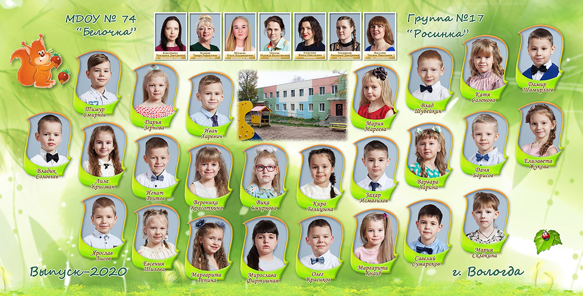 - виньетка с друзьями и воспитателями 20*40 см