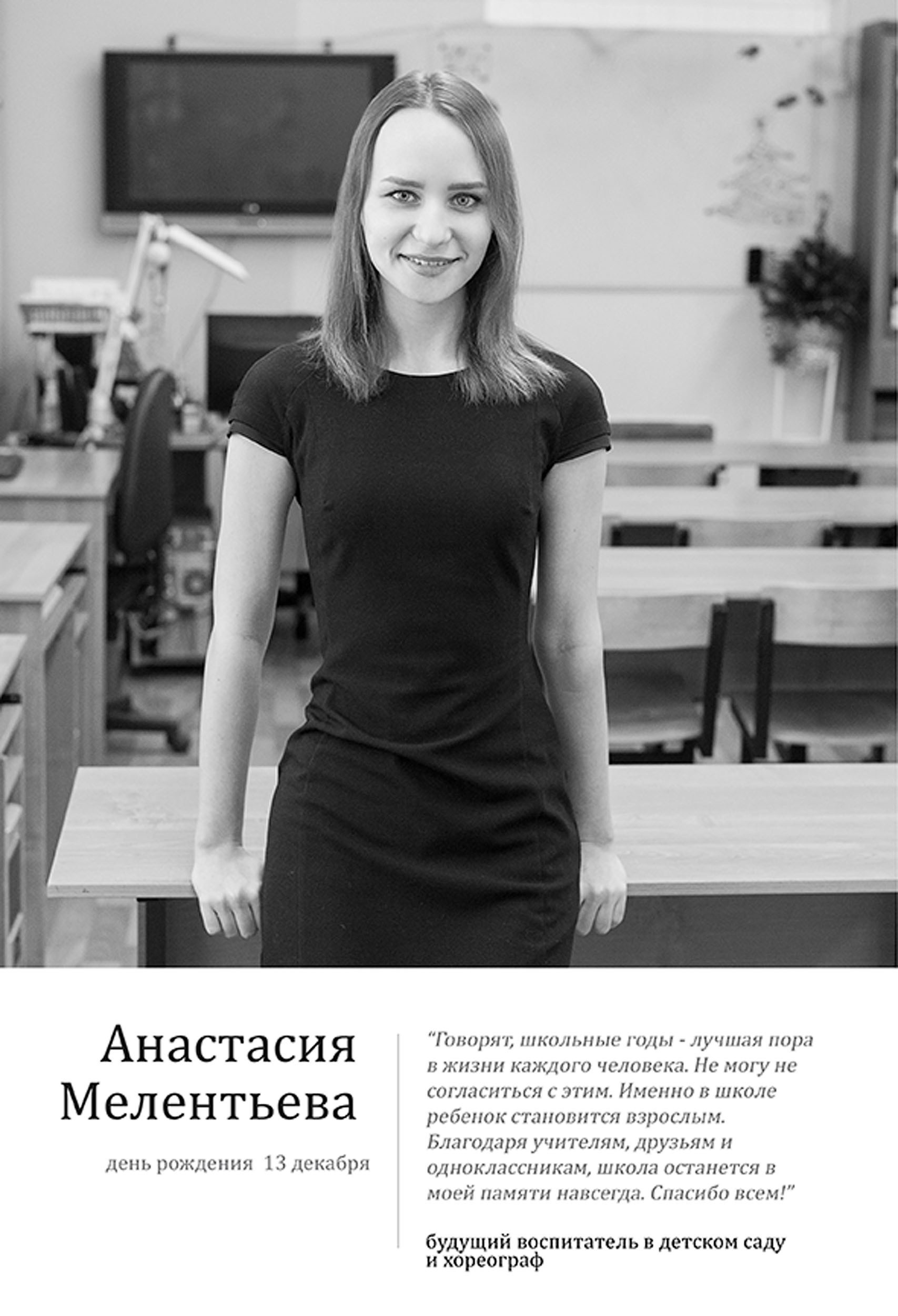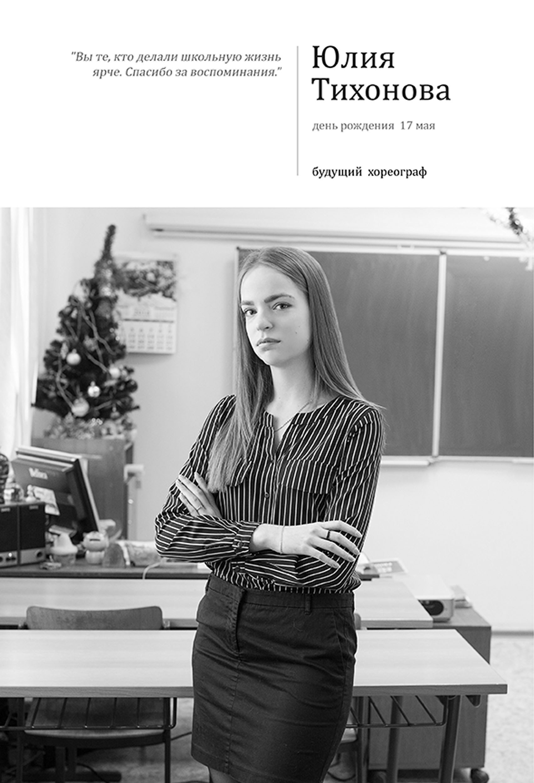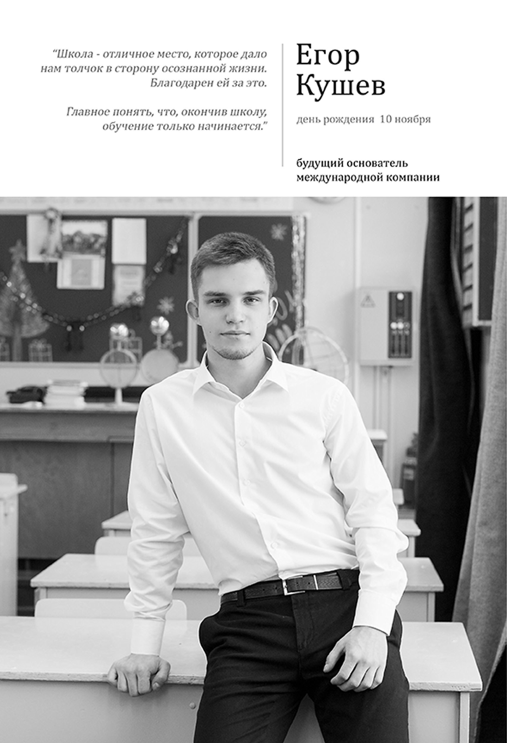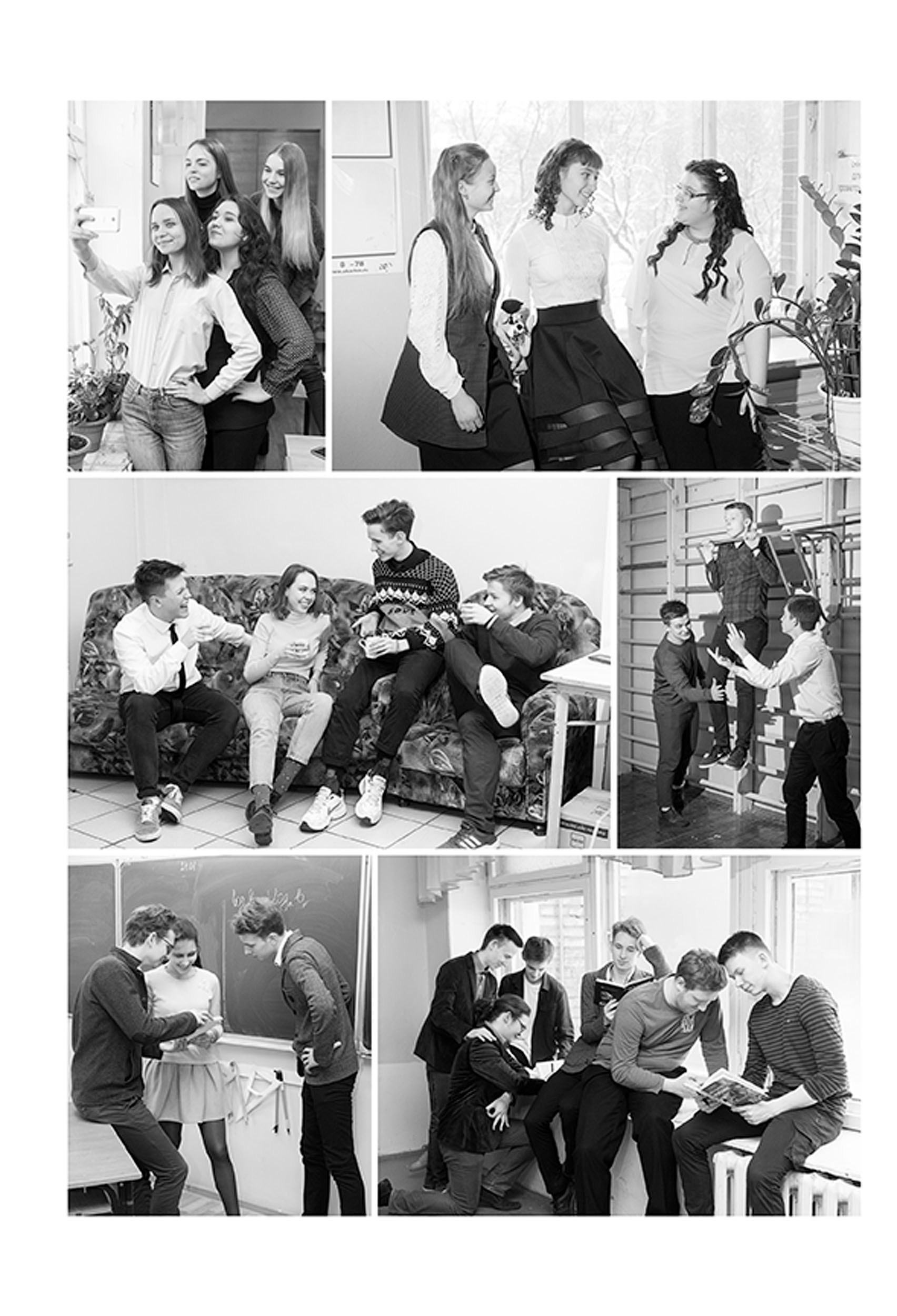 - личные развороты всех одноклассников в разных локациях (страница А4 формата)