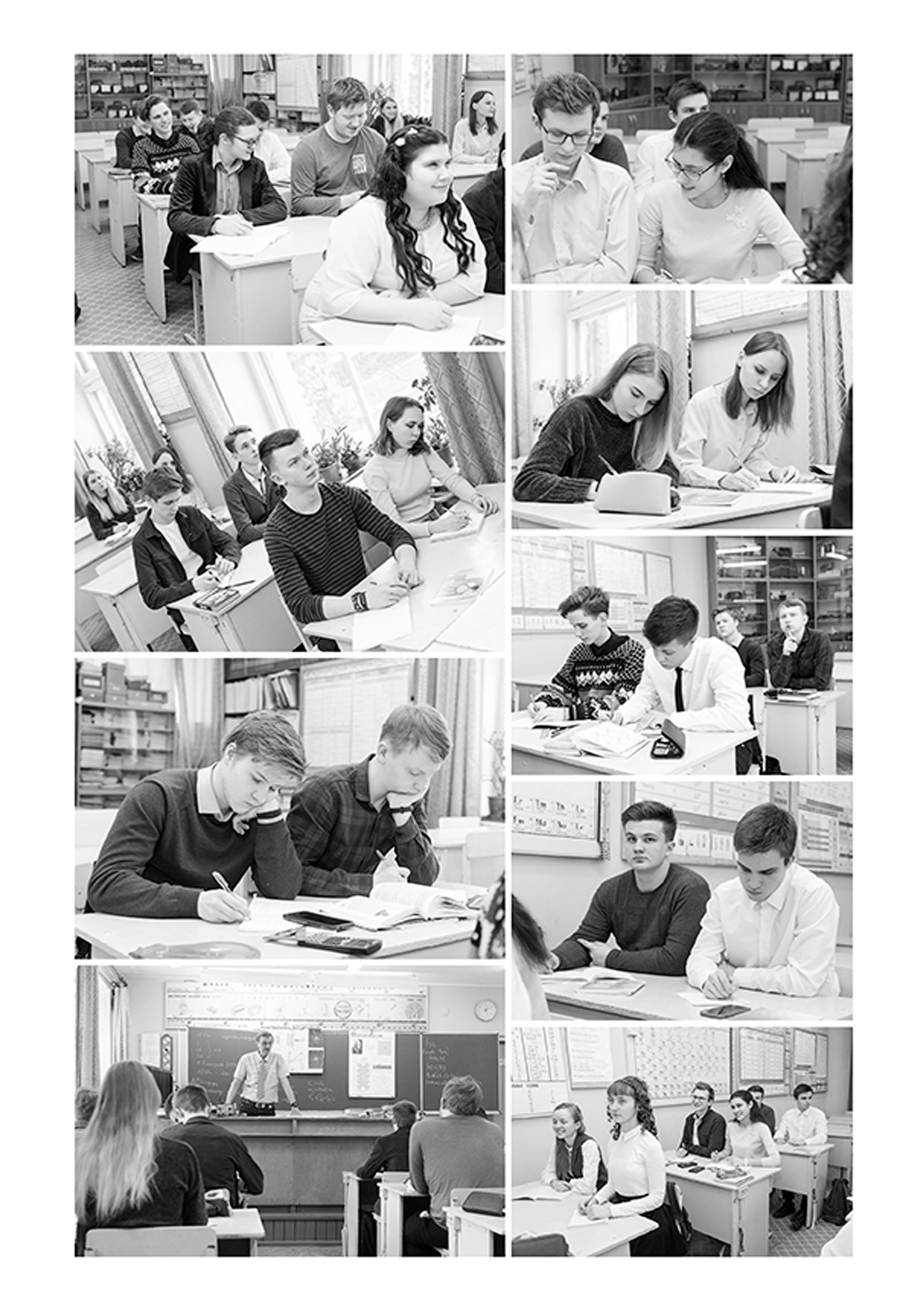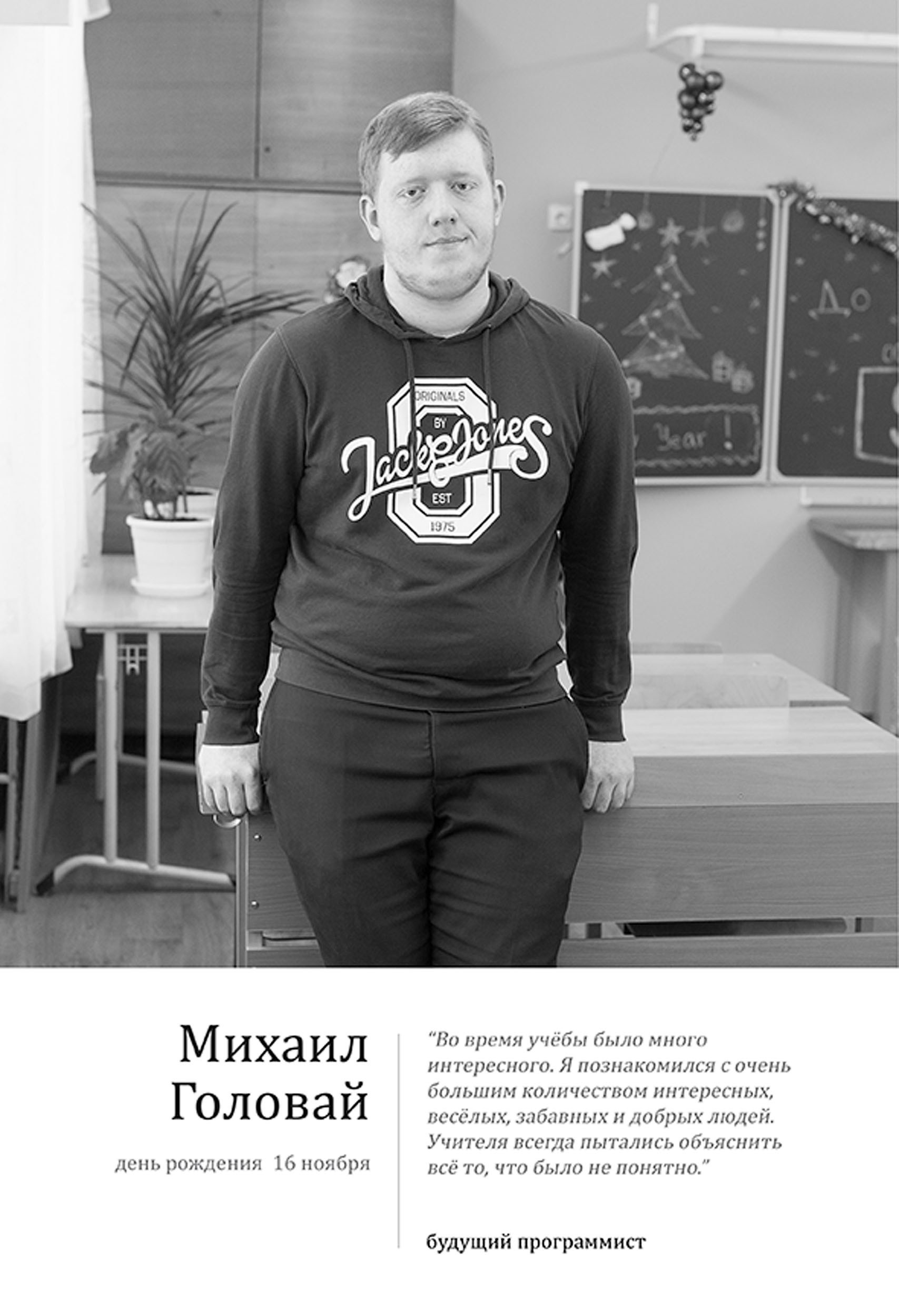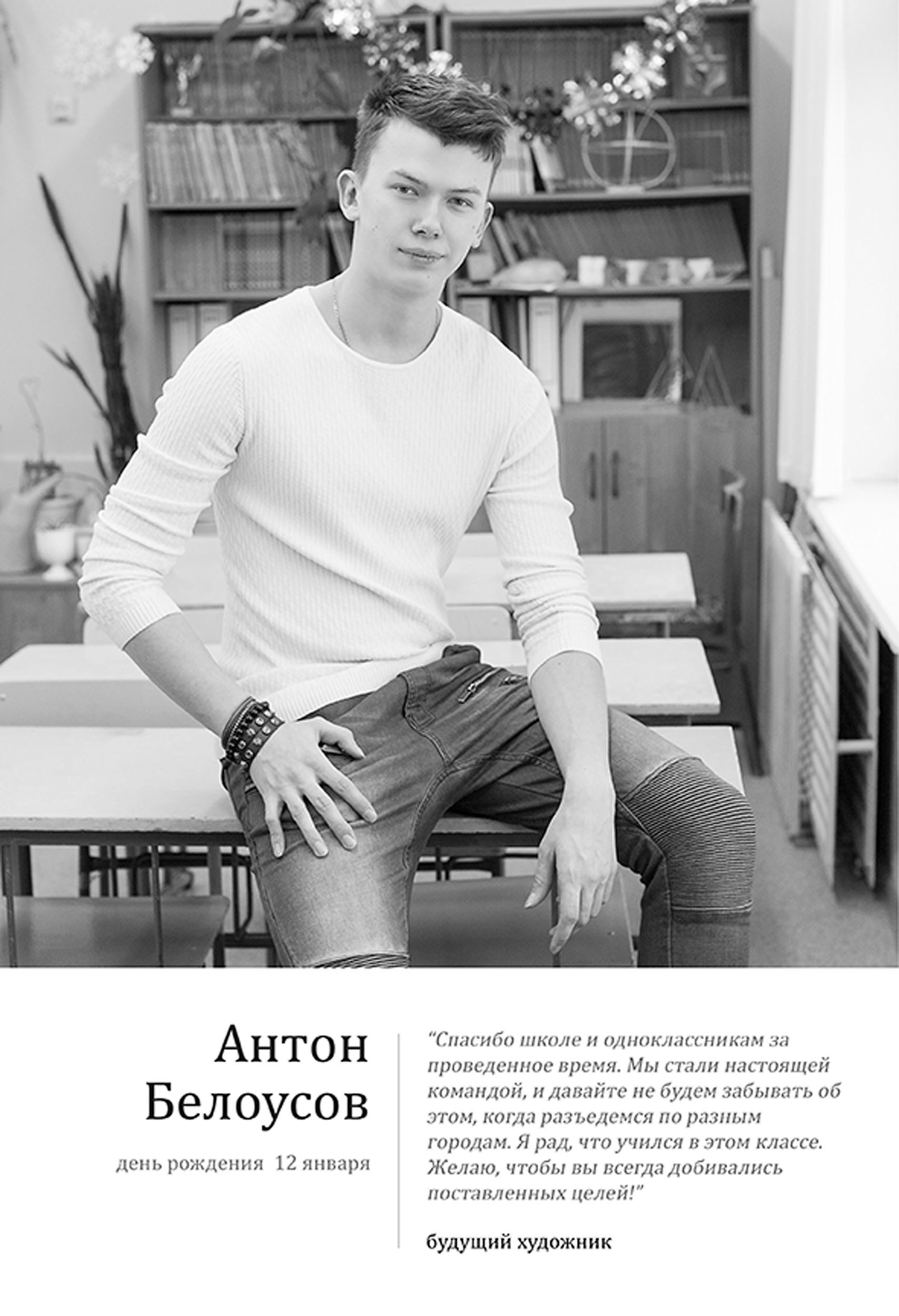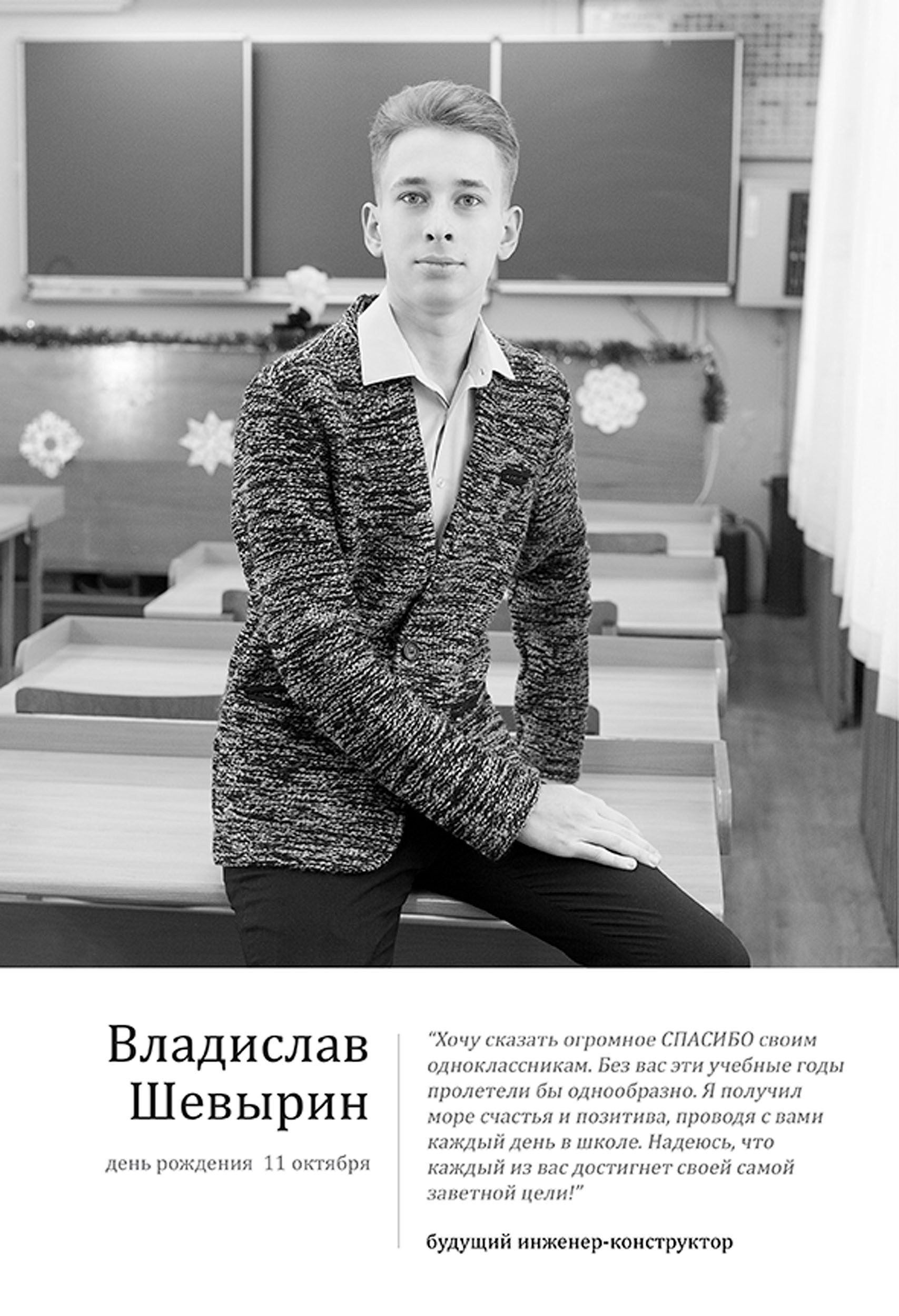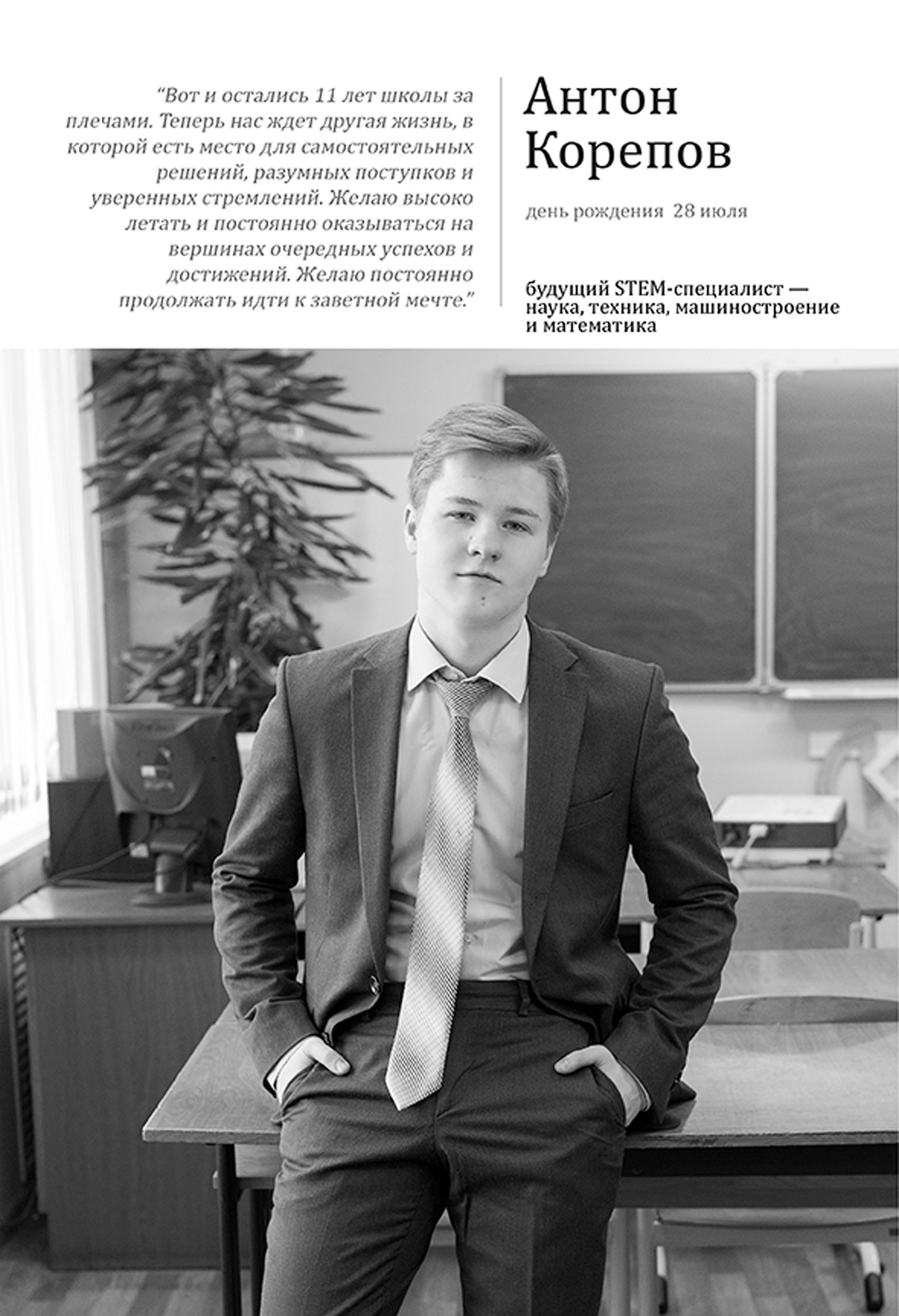 - личные развороты всех одноклассников в разных локациях (страница А4 формата)