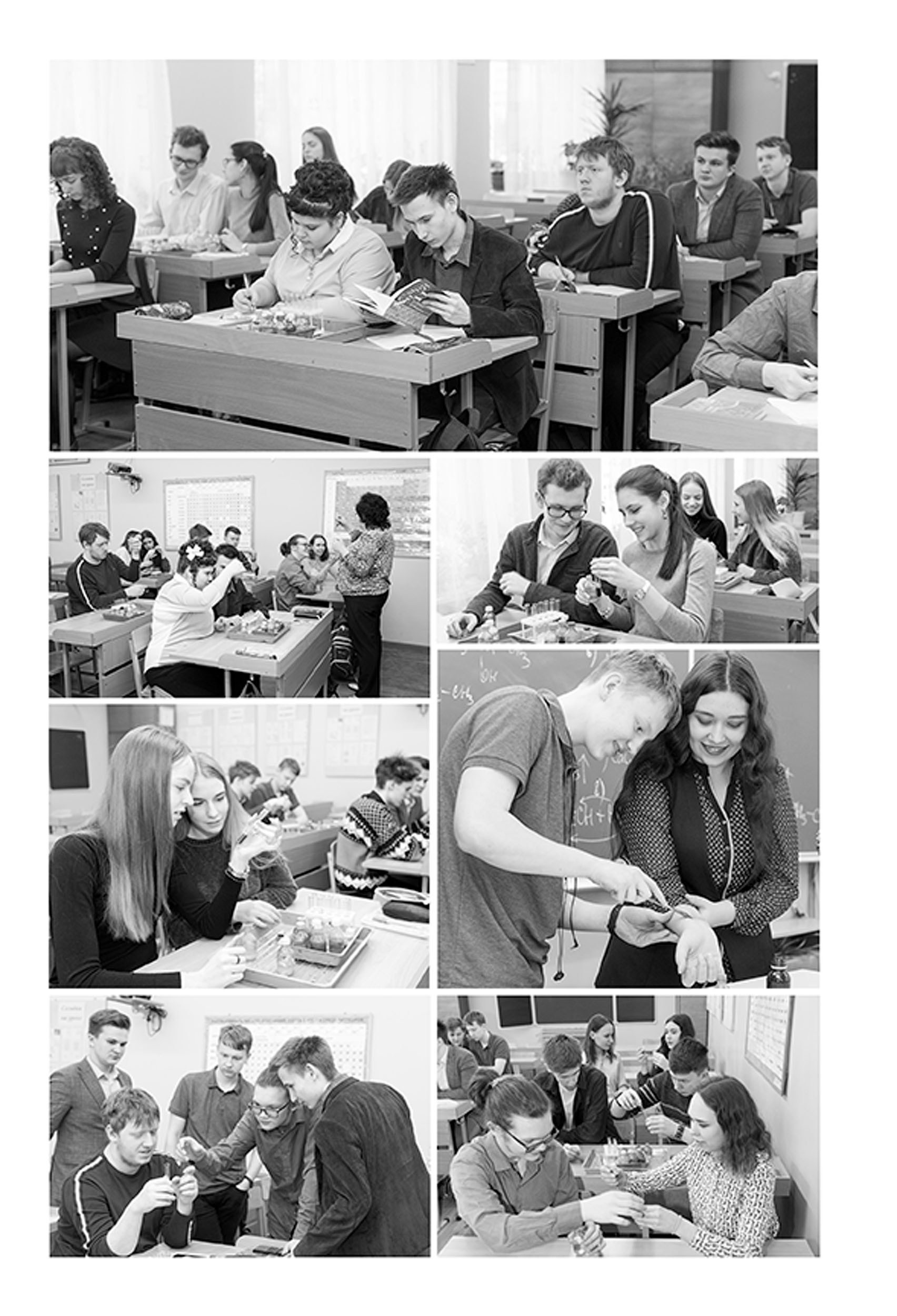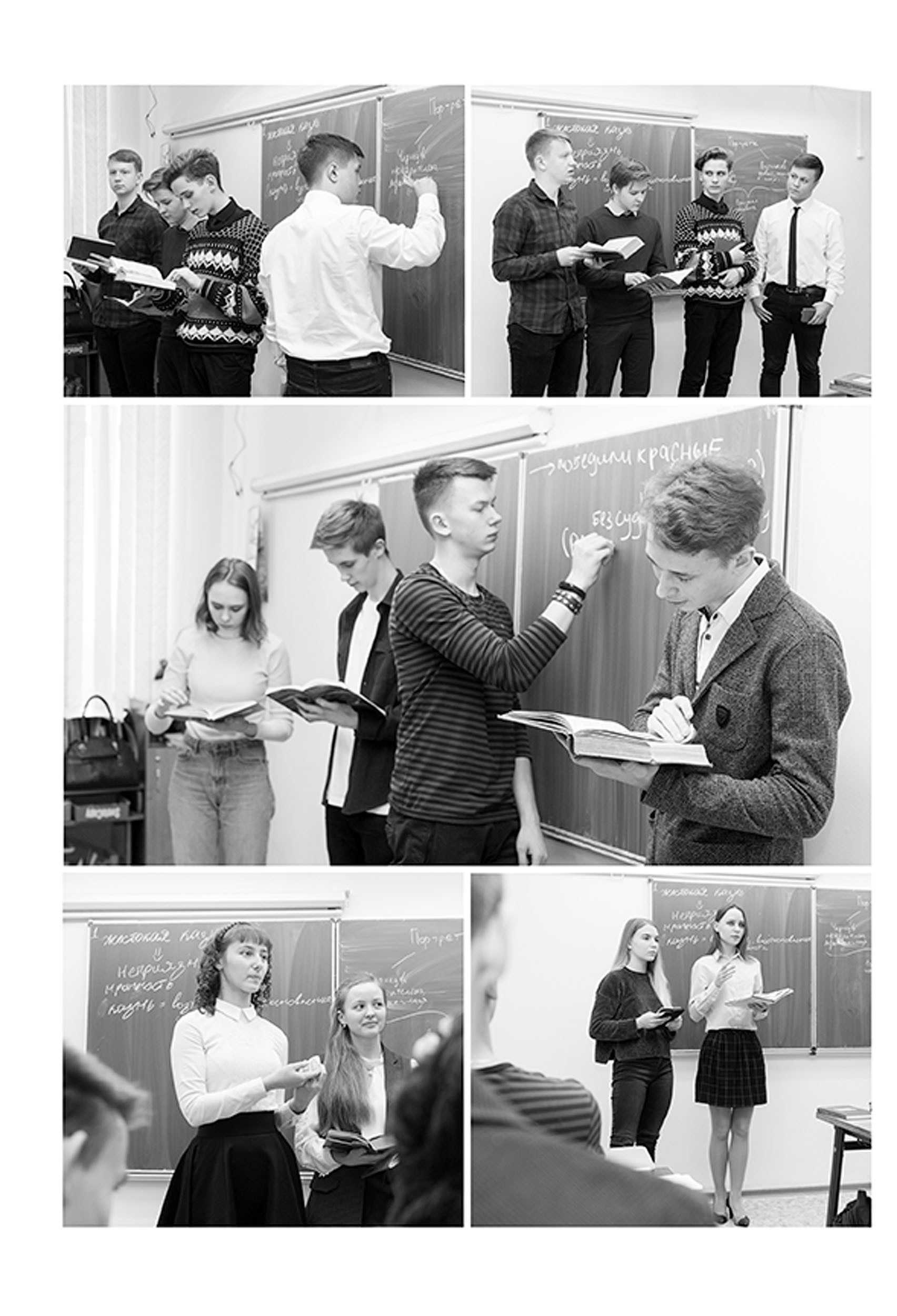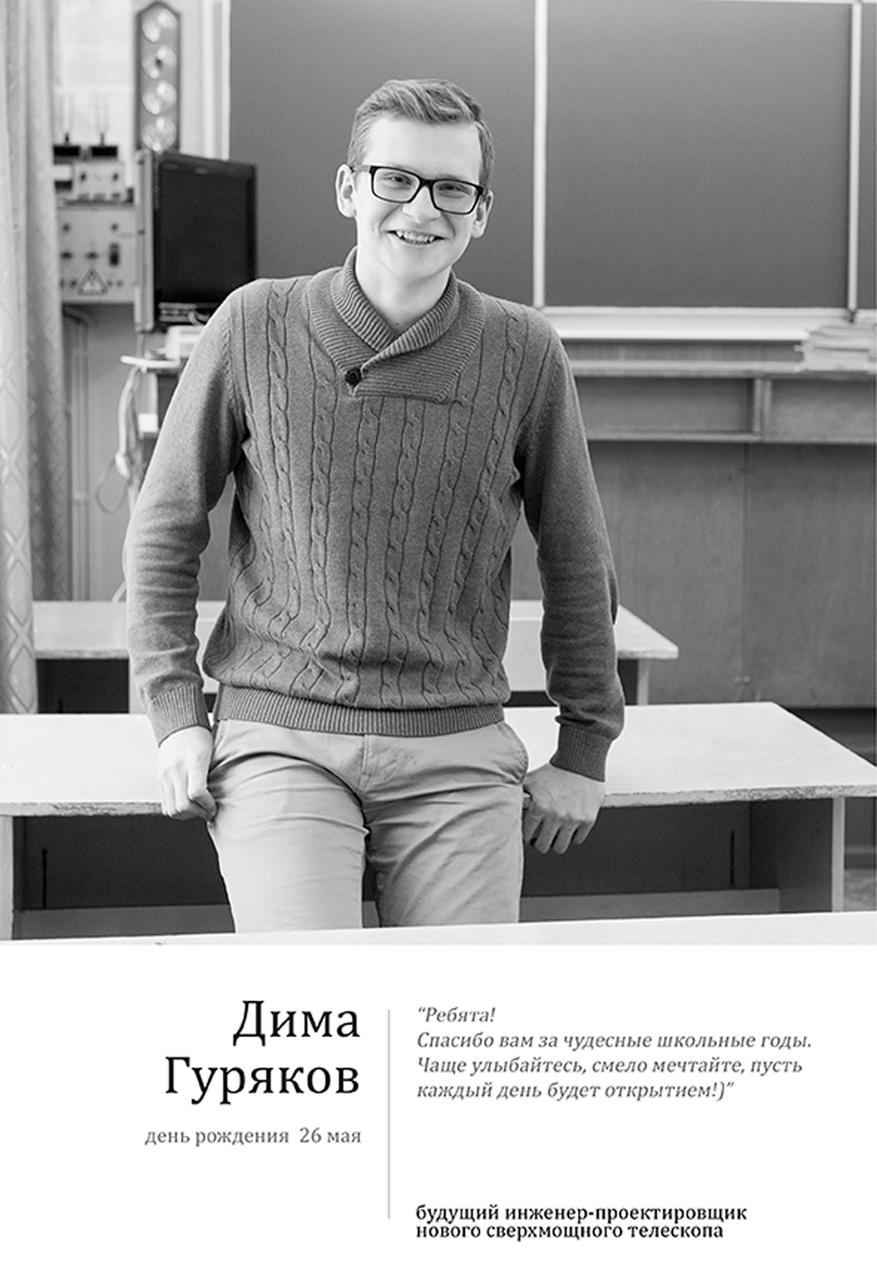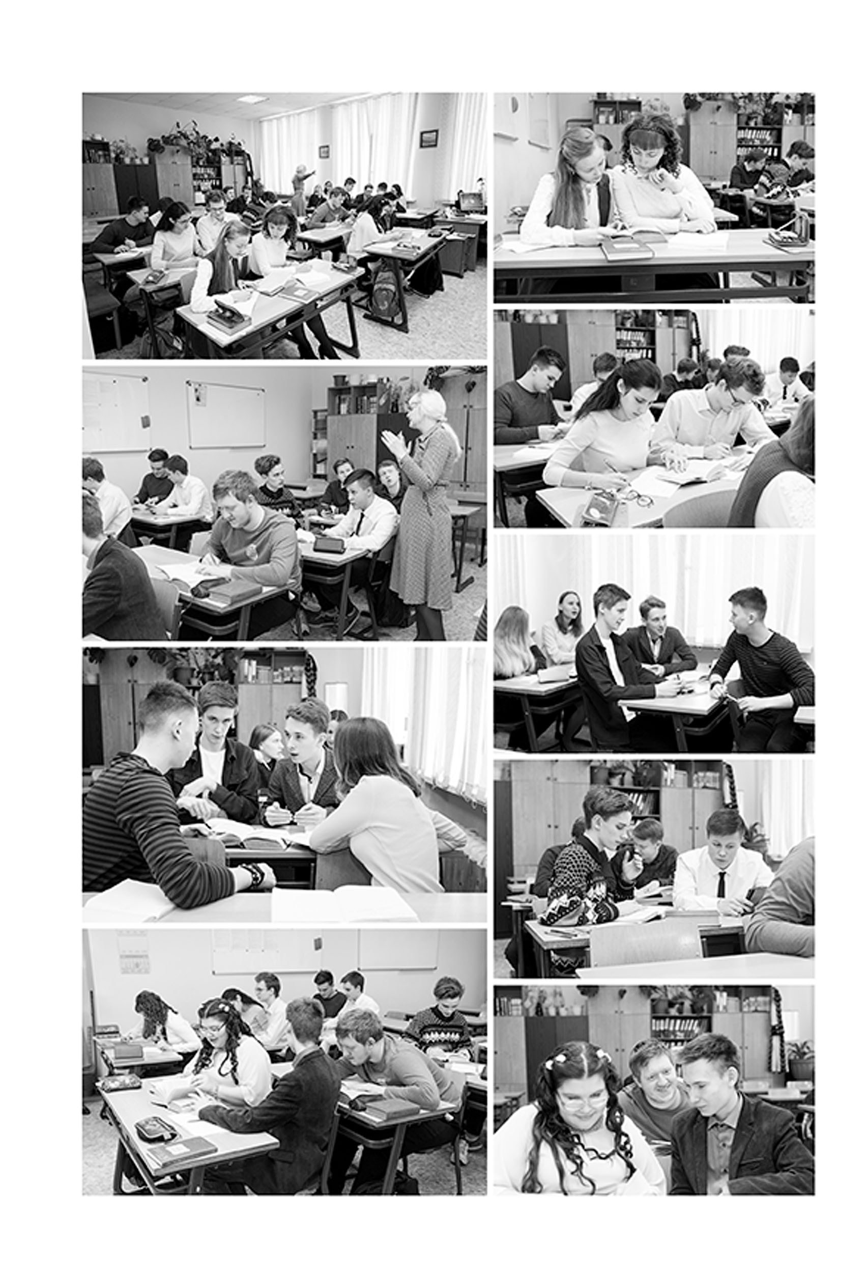 - личные развороты всех одноклассников в разных локациях (страница А4 формата)