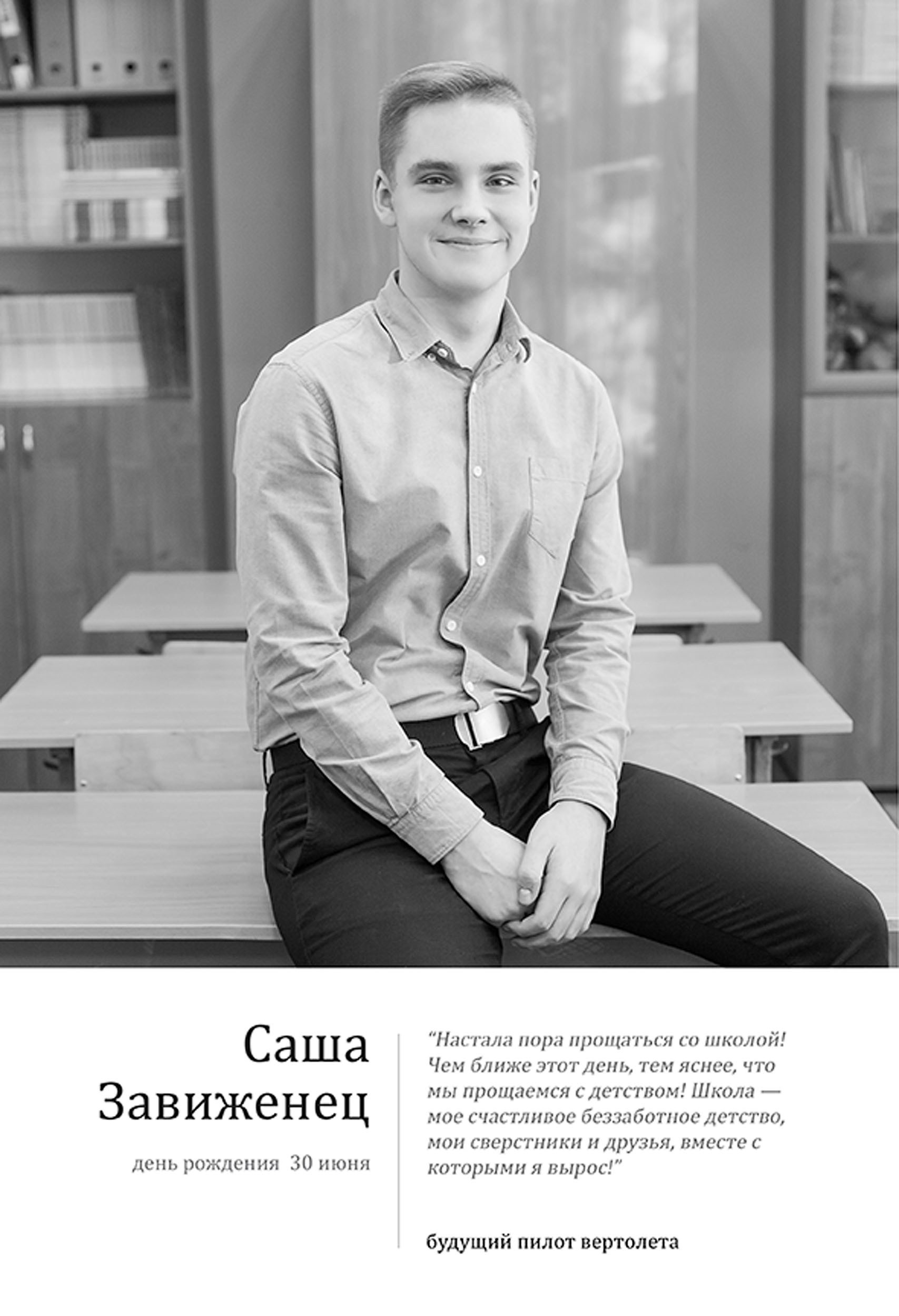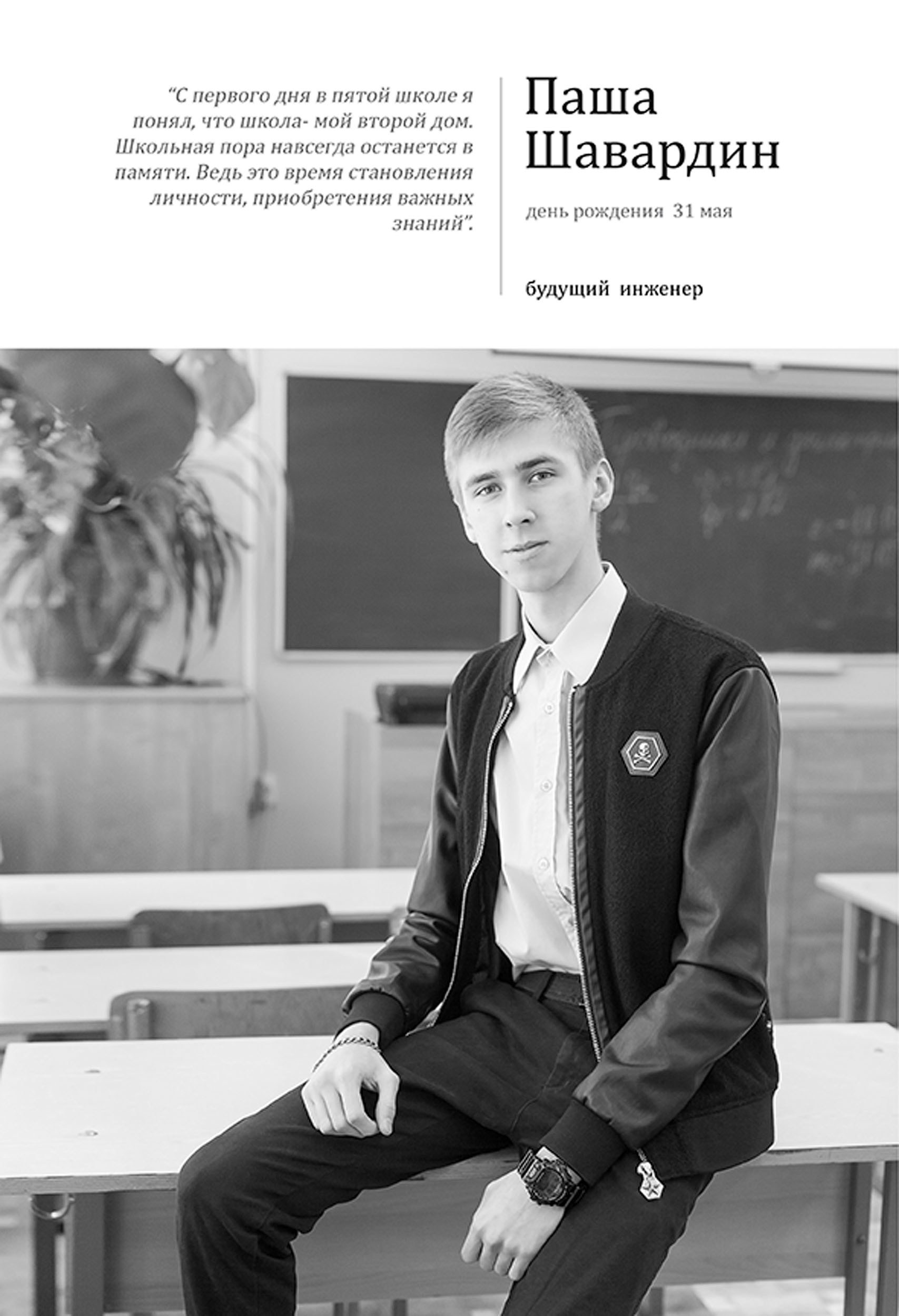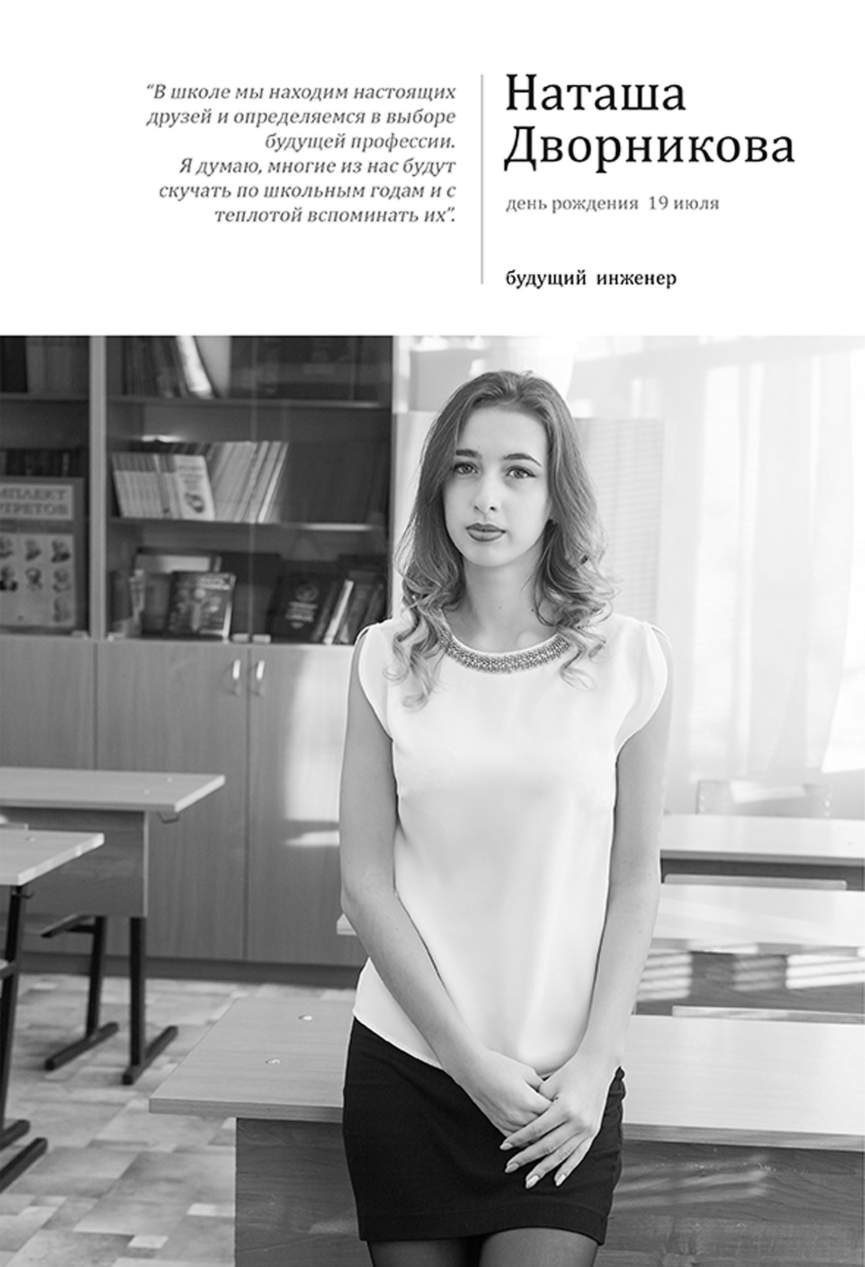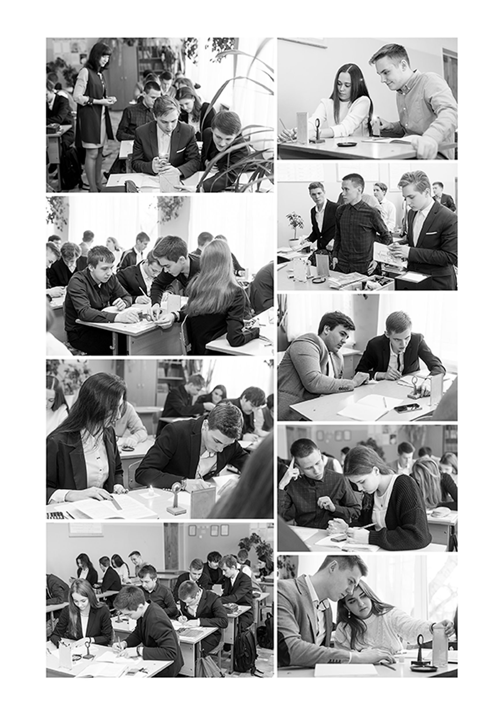 - личные развороты всех одноклассников в разных локациях (страница А4 формата)