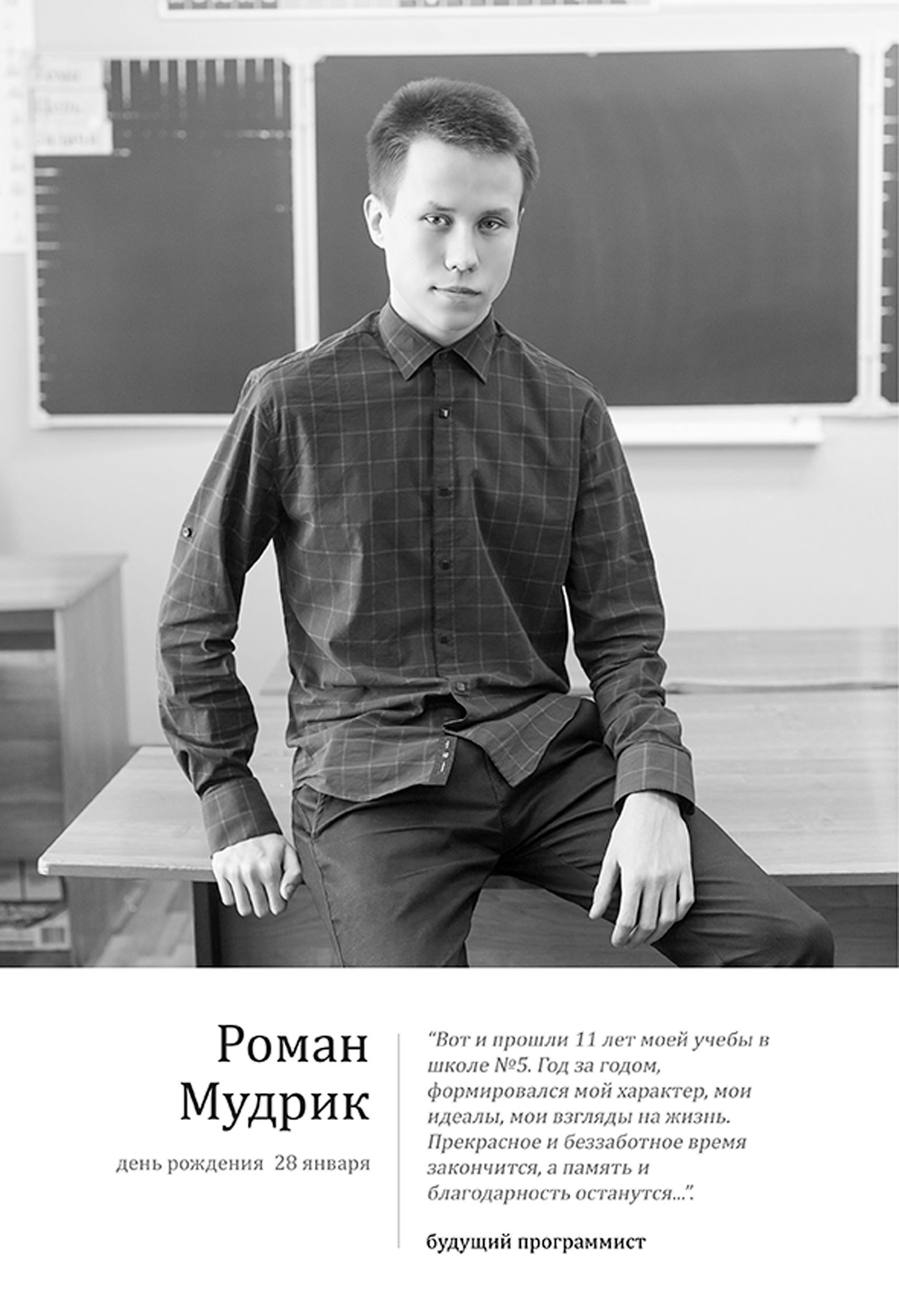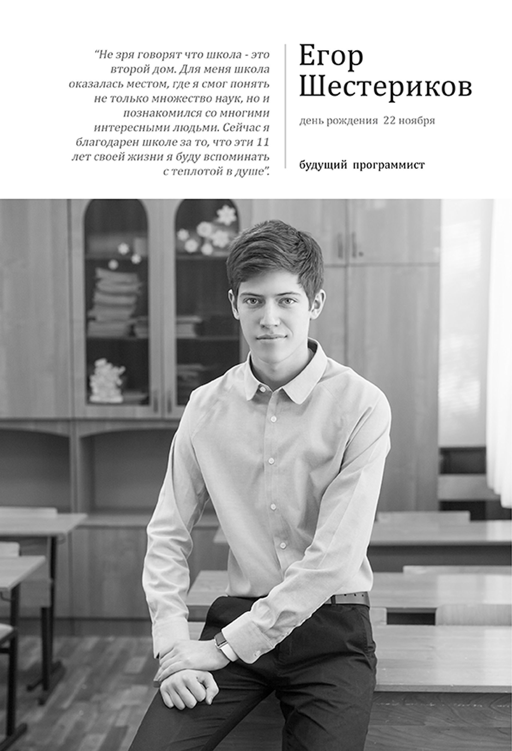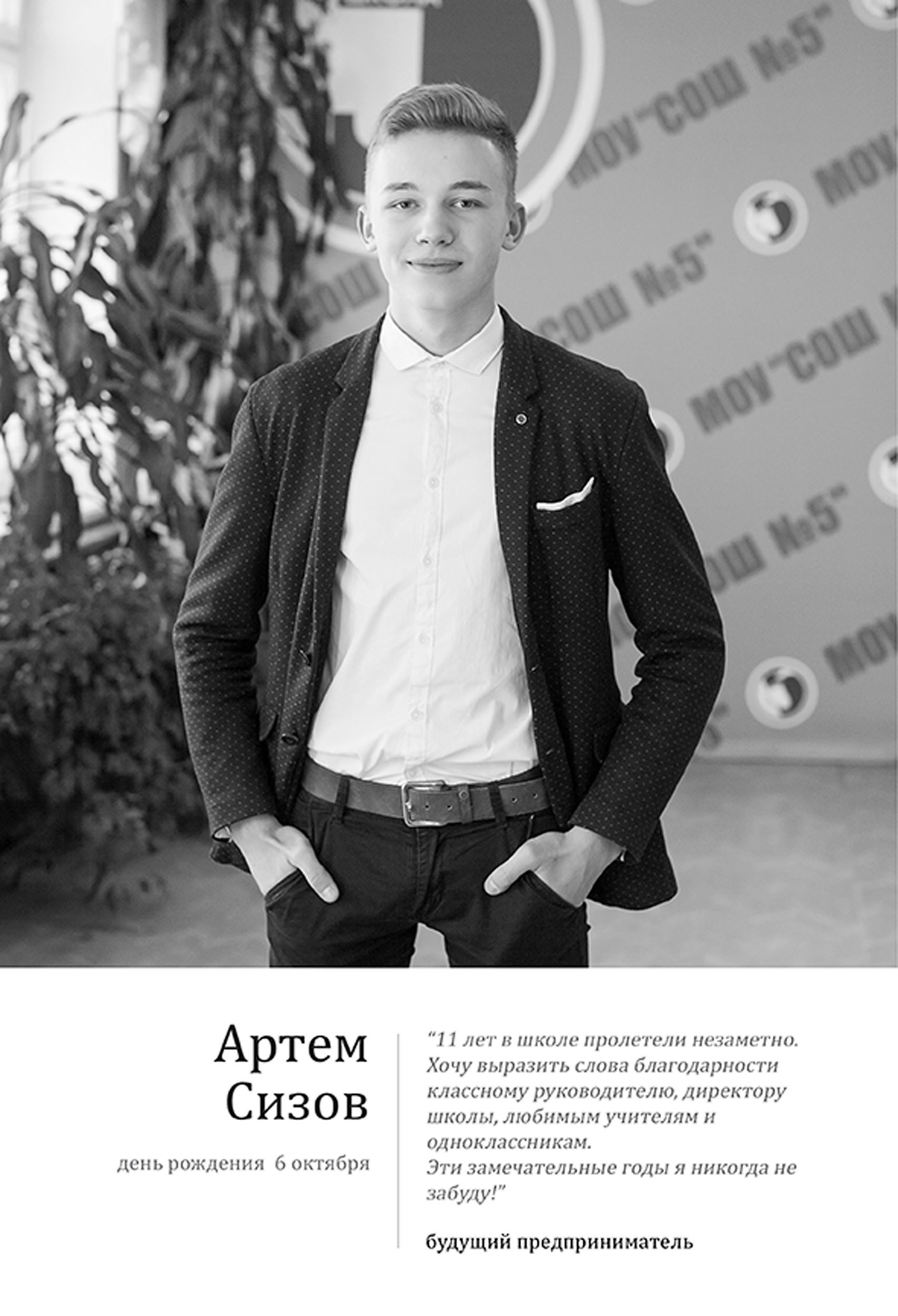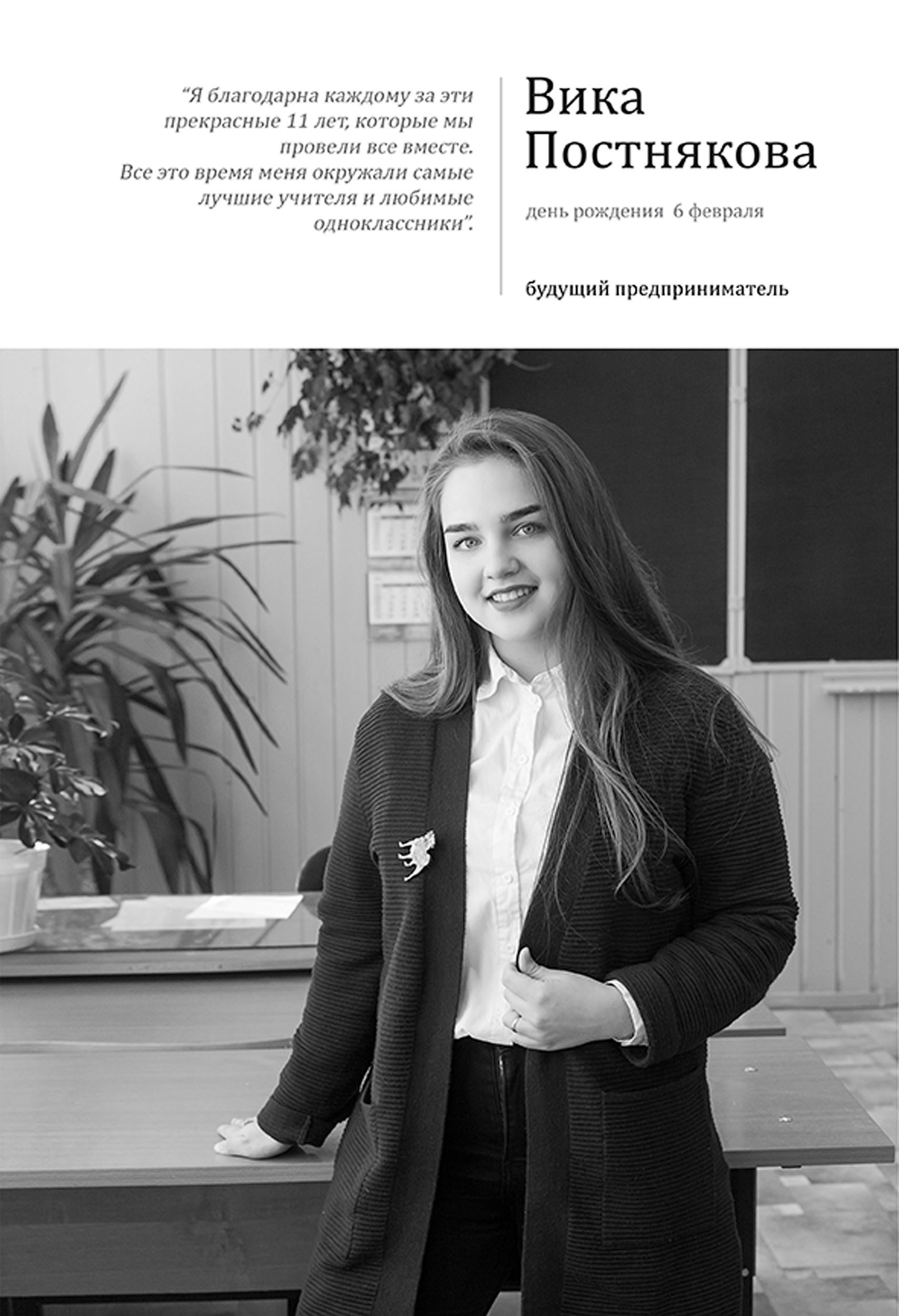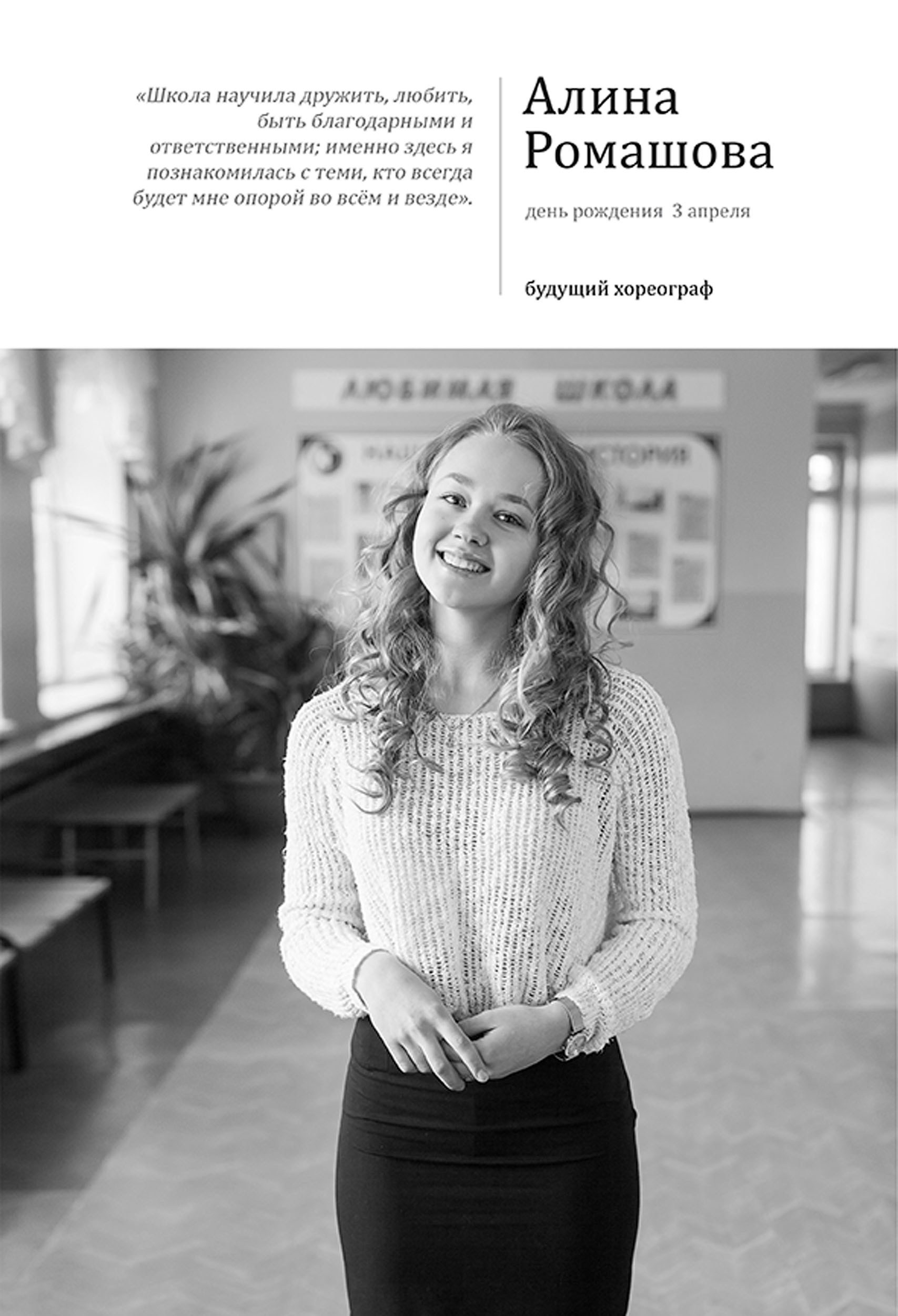 - личные развороты всех одноклассников в разных локациях (страница А4 формата)