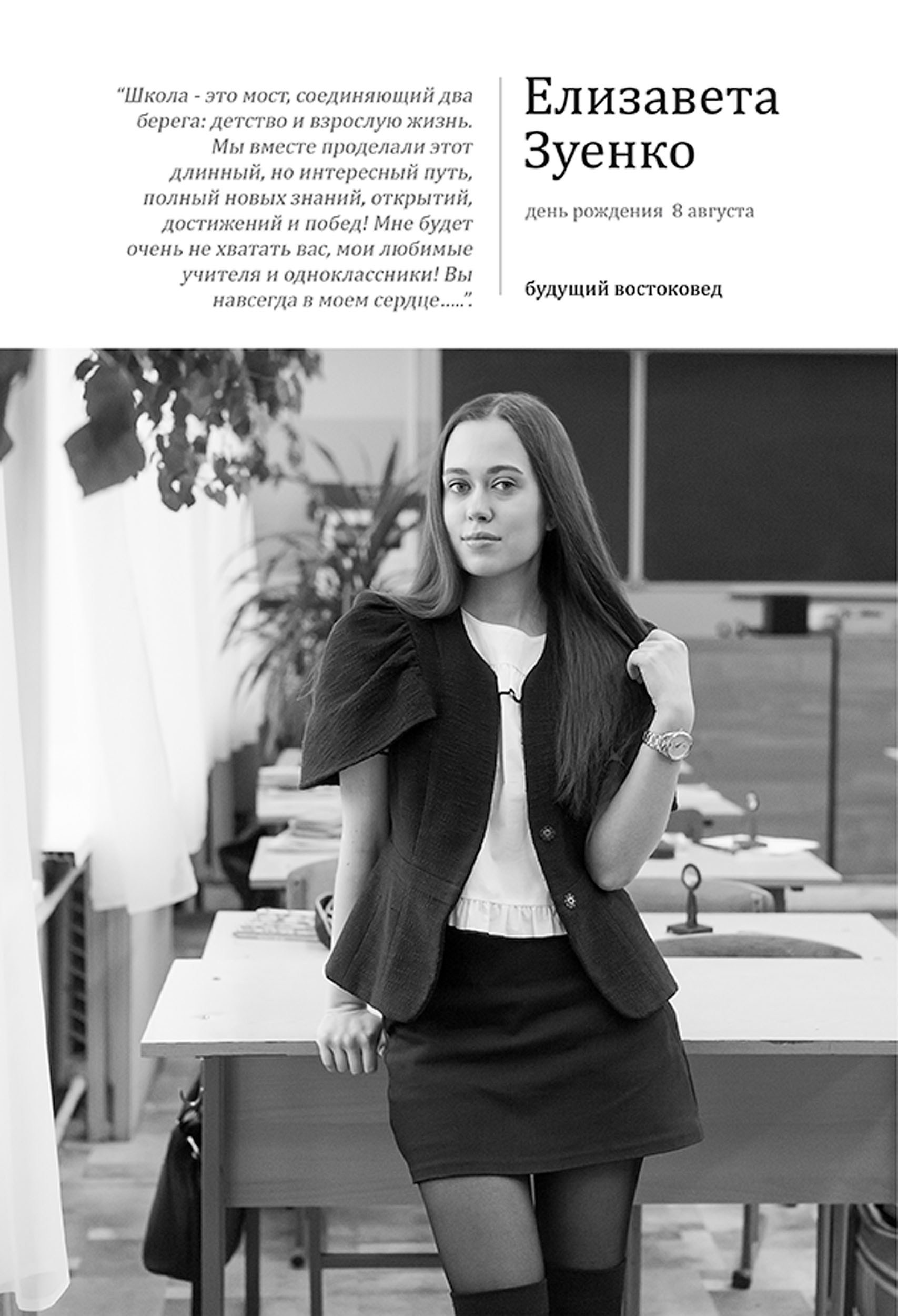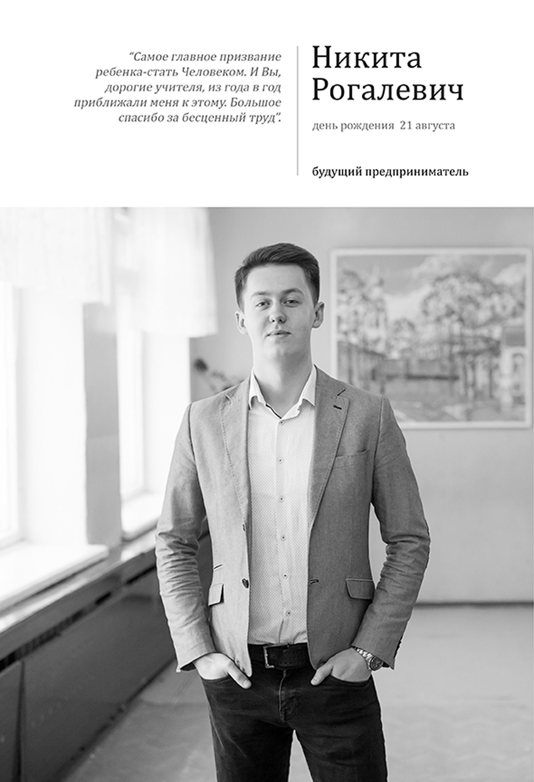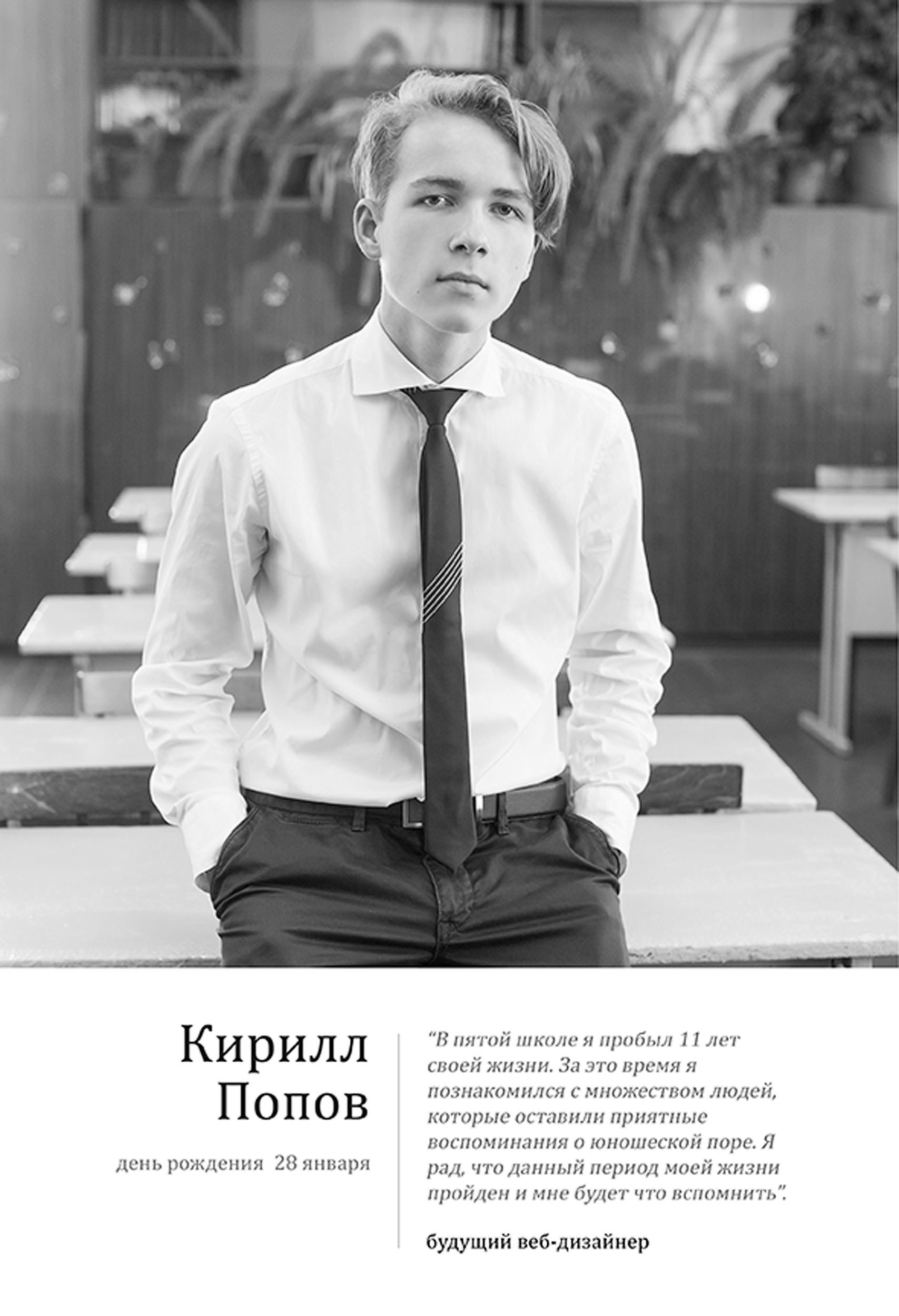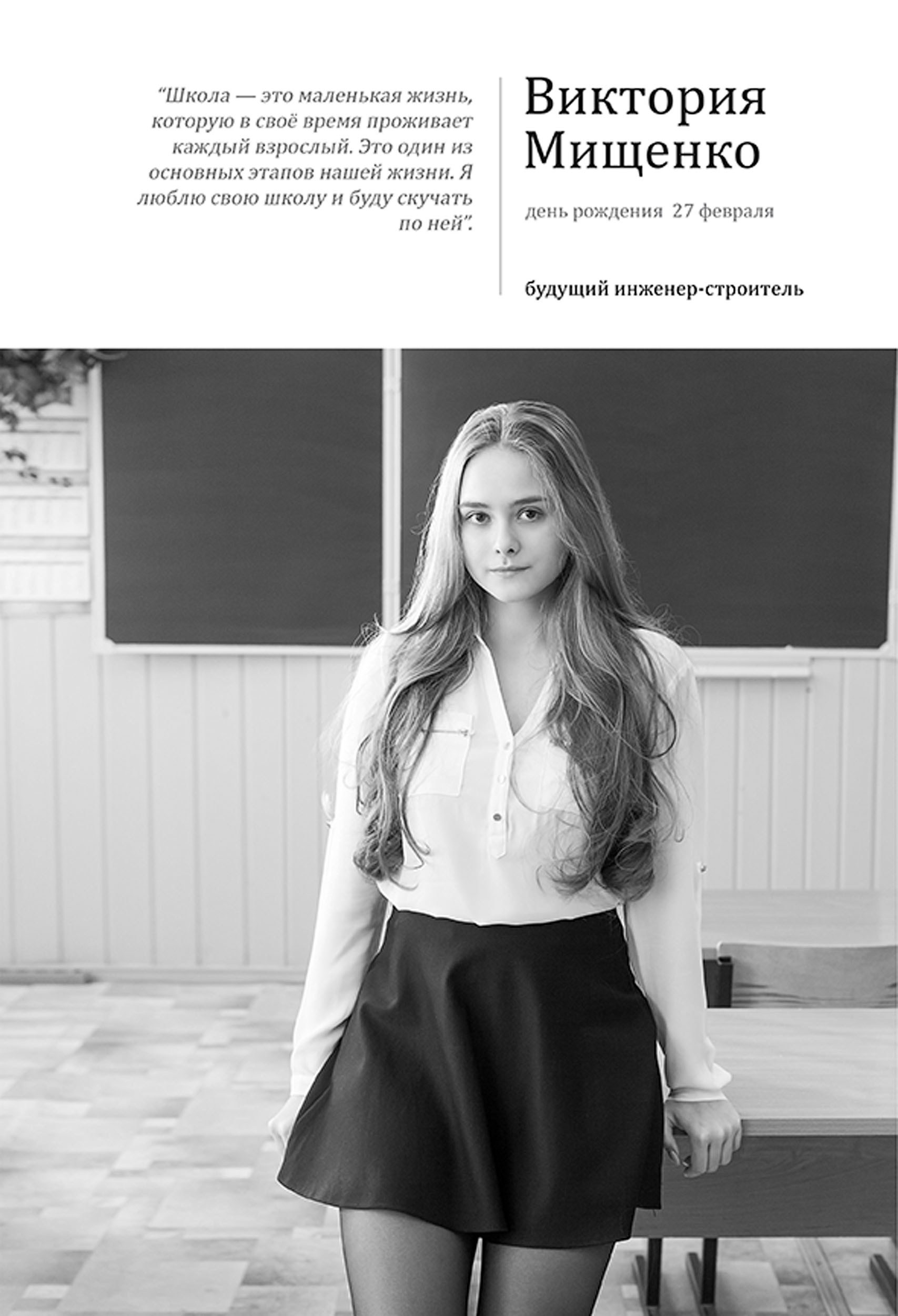 - личные развороты всех одноклассников в разных локациях (страница А4 формата)