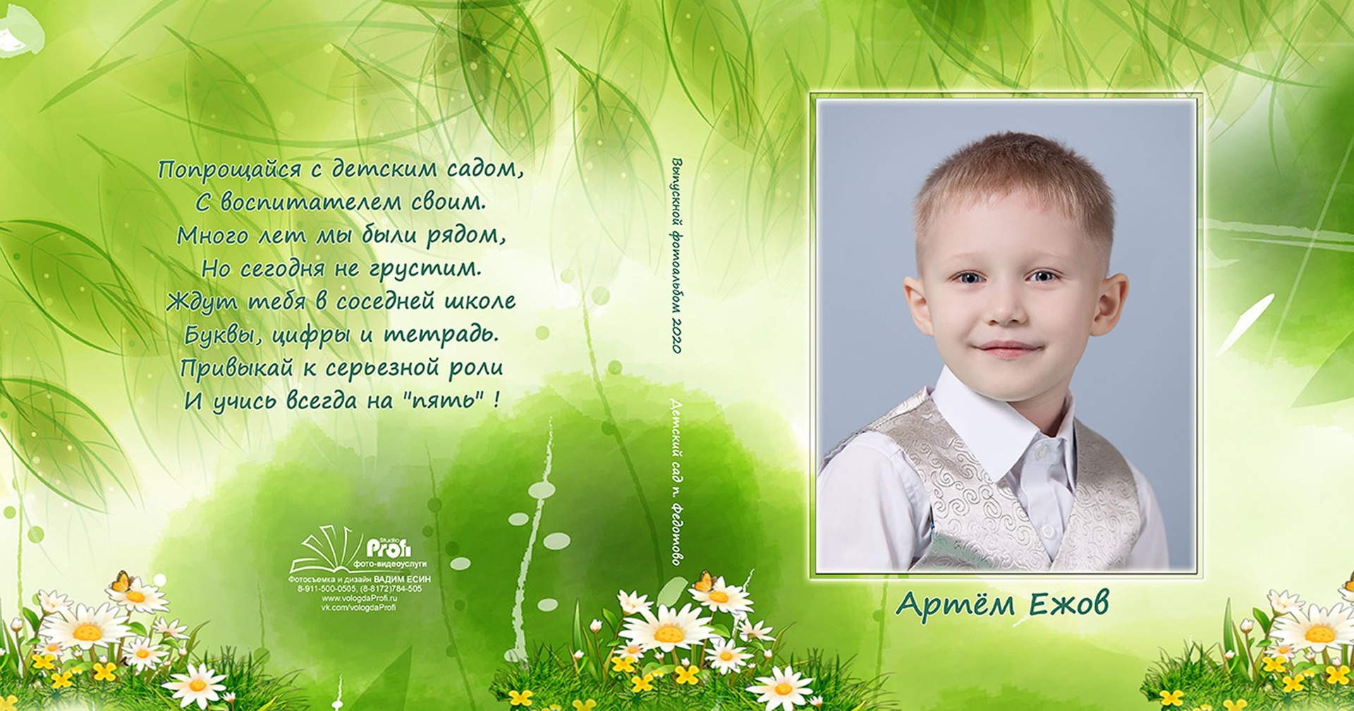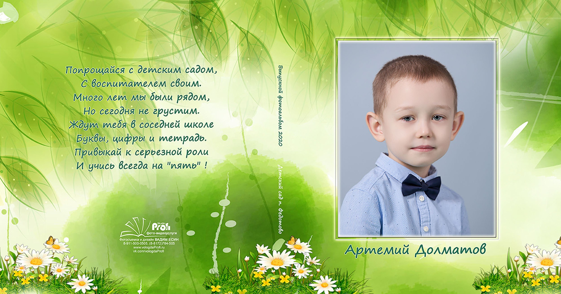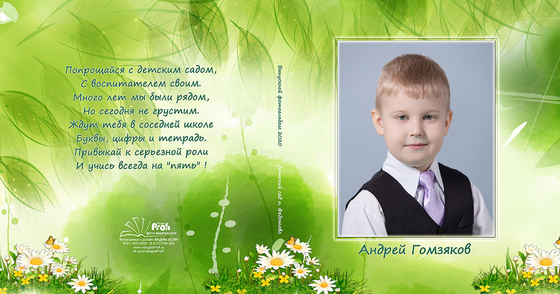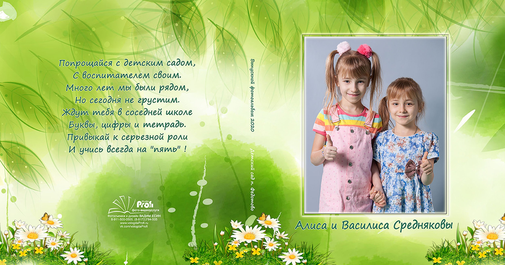 Выпускная фотокнига «Поляна». Формат 20*20 см с глянцевой ламинированной обложкой.