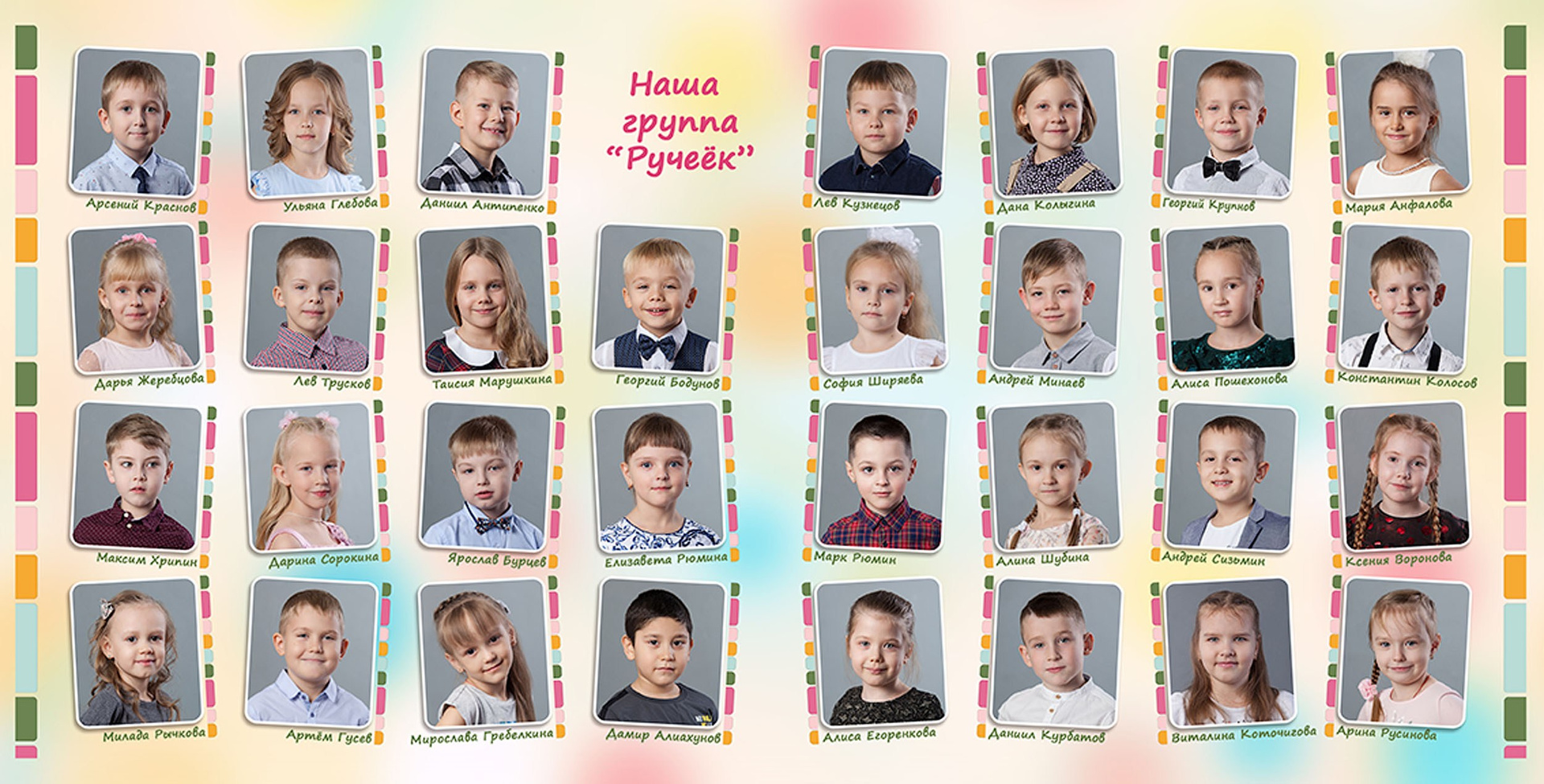 - виньетка с друзьями и воспитателями 20*40 см