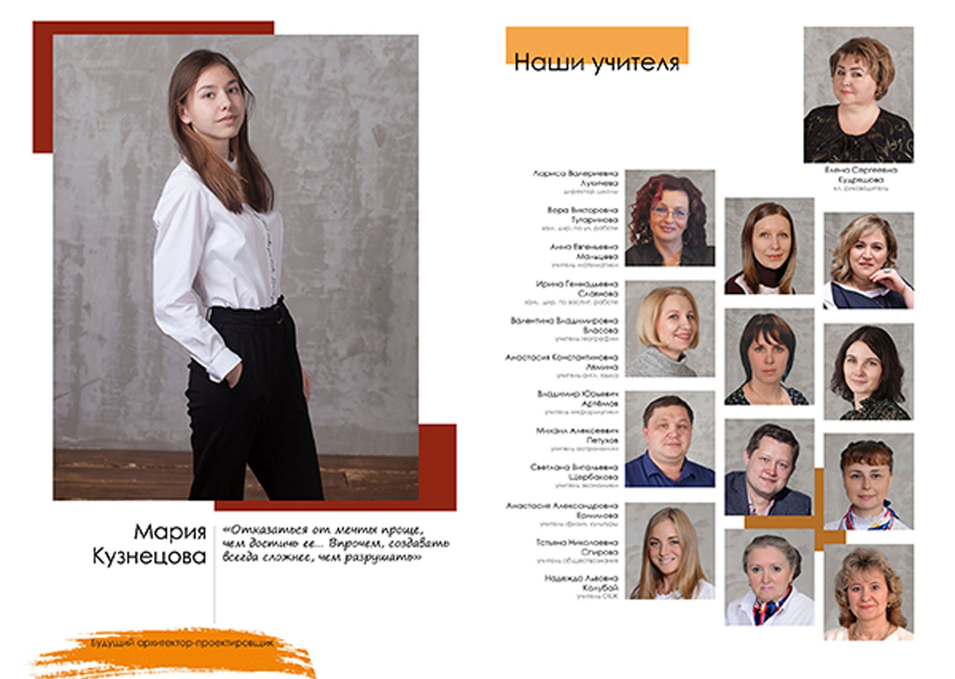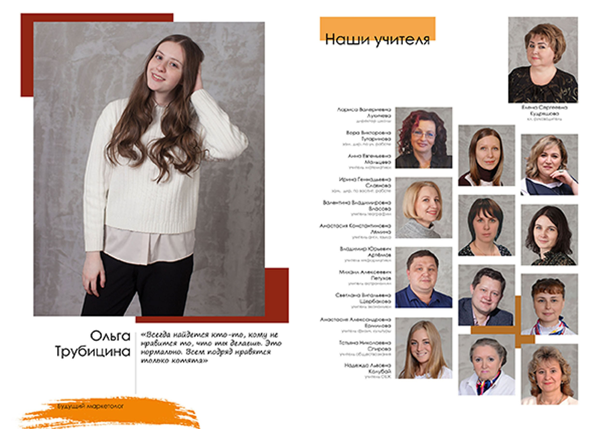 - индивидуальный разворот с личной цитатой