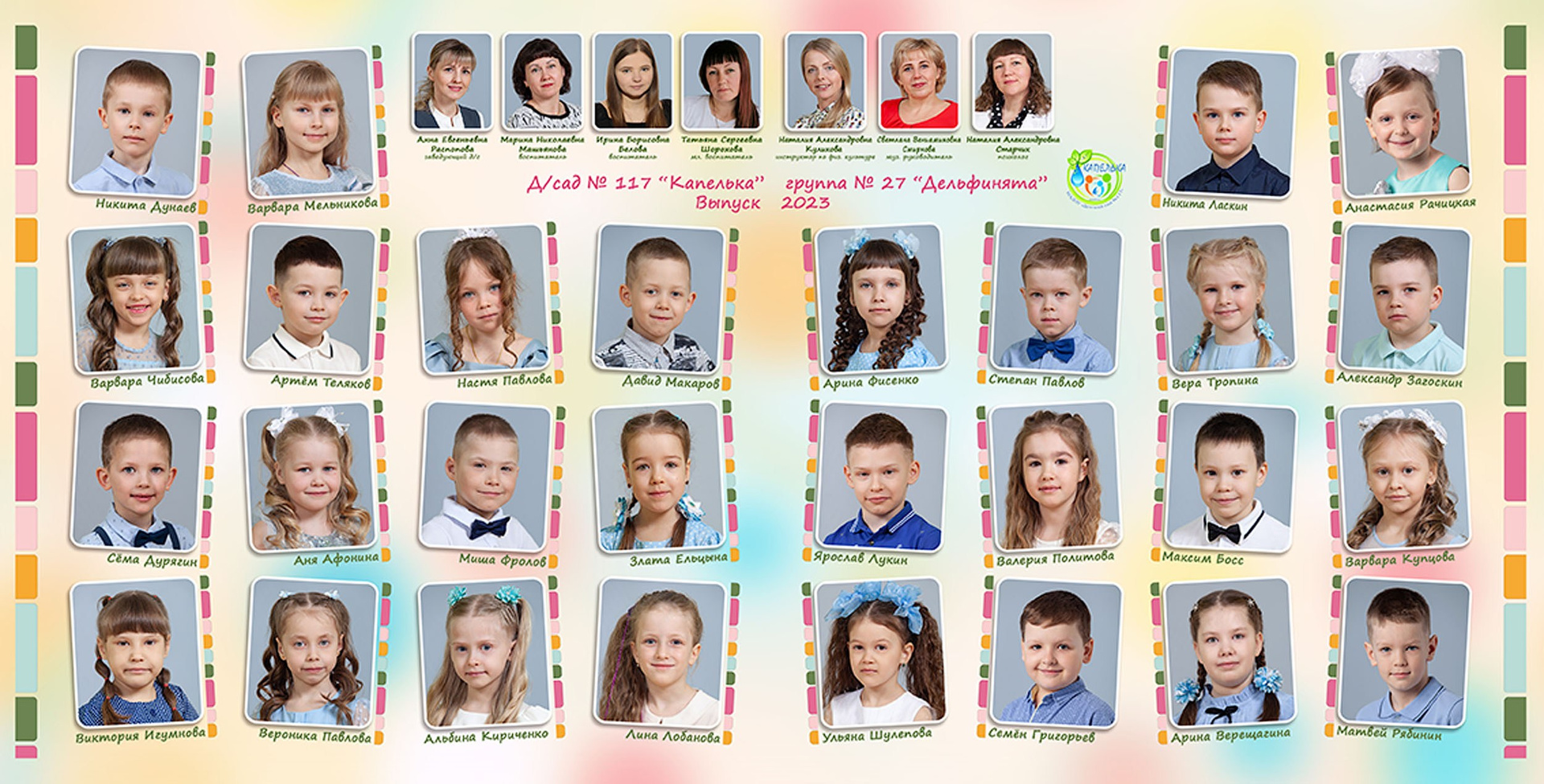 - виньетка с друзьями и воспитателями 20*40 см