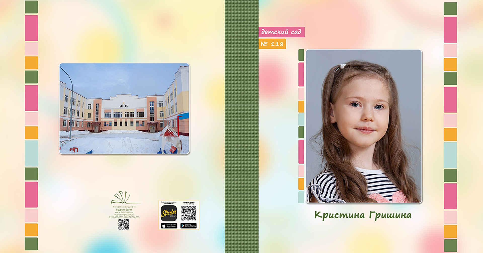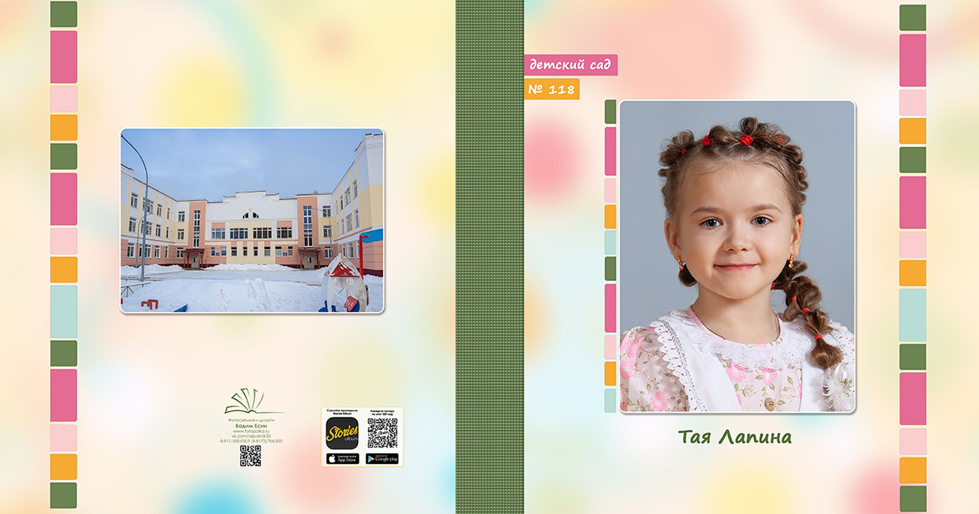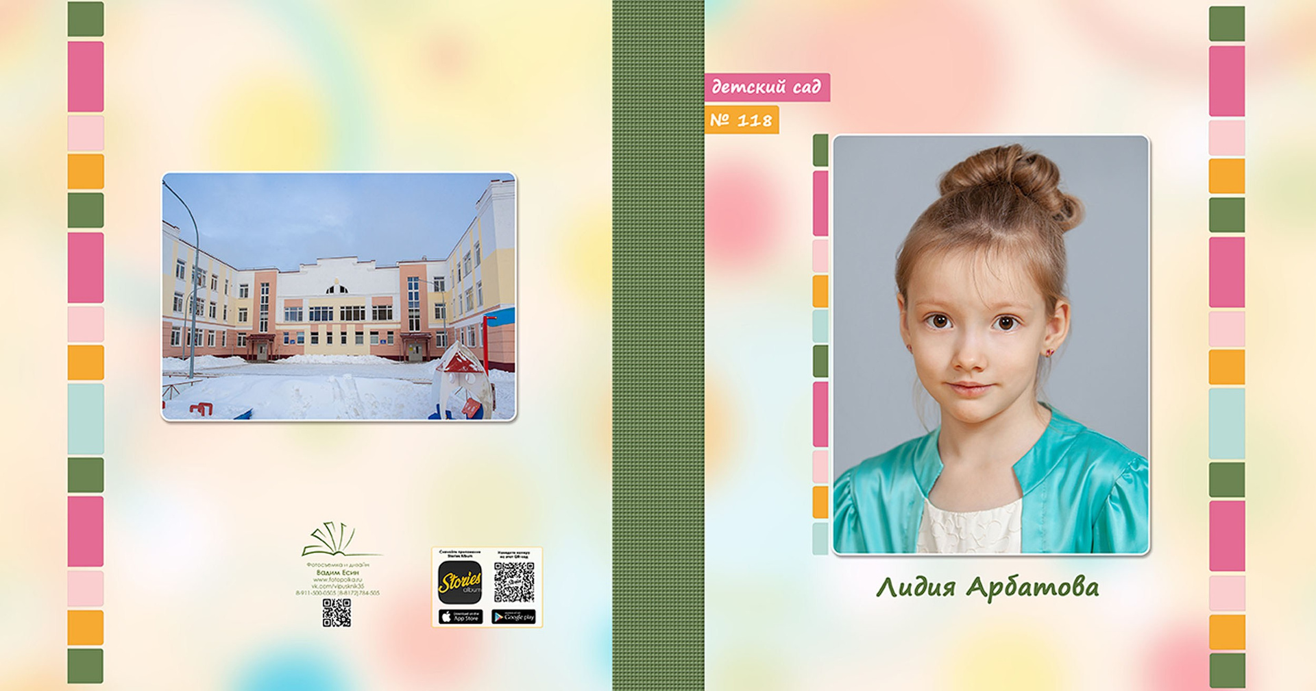 Выпускная фотокнига «Радуга». Формат 20*20 см с глянцевой ламинированной обложкой.