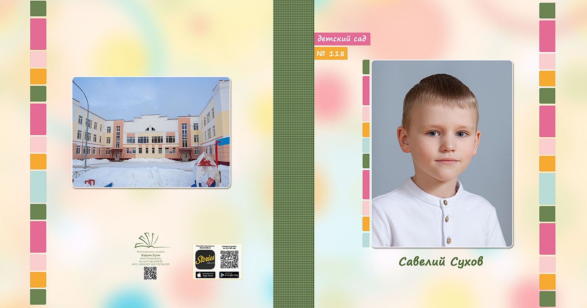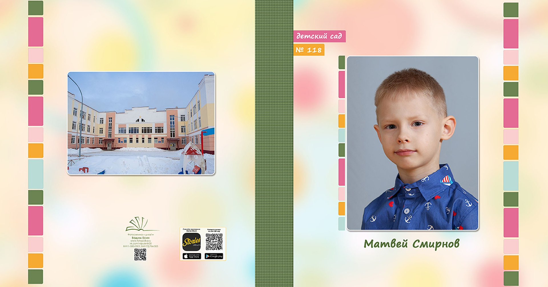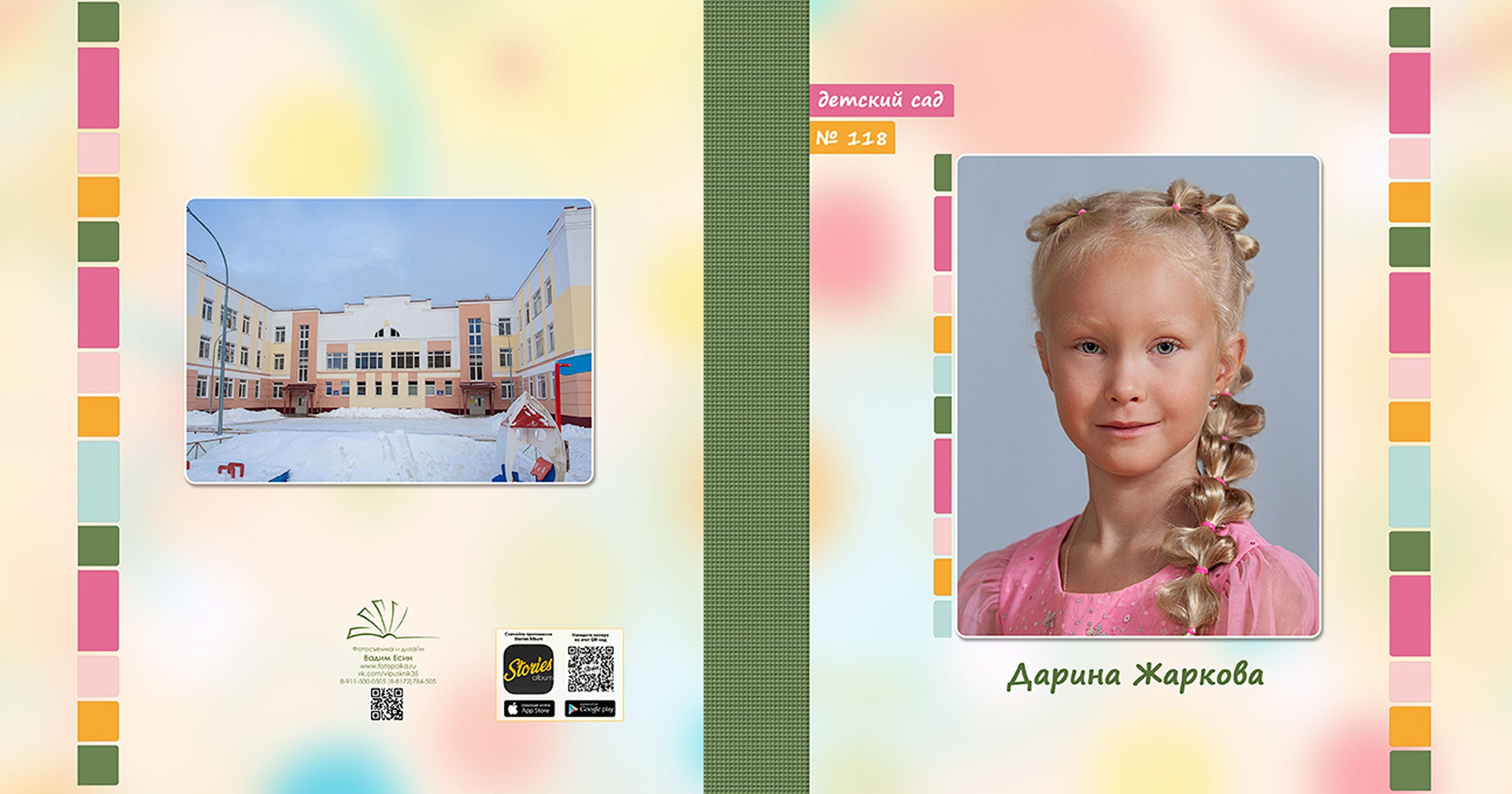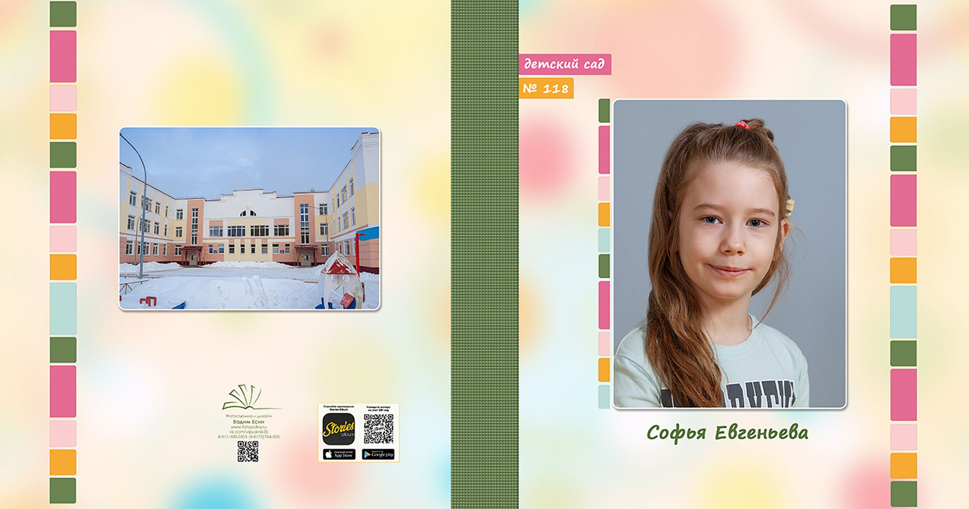 Выпускная фотокнига «Радуга». Формат 20*20 см с глянцевой ламинированной обложкой.