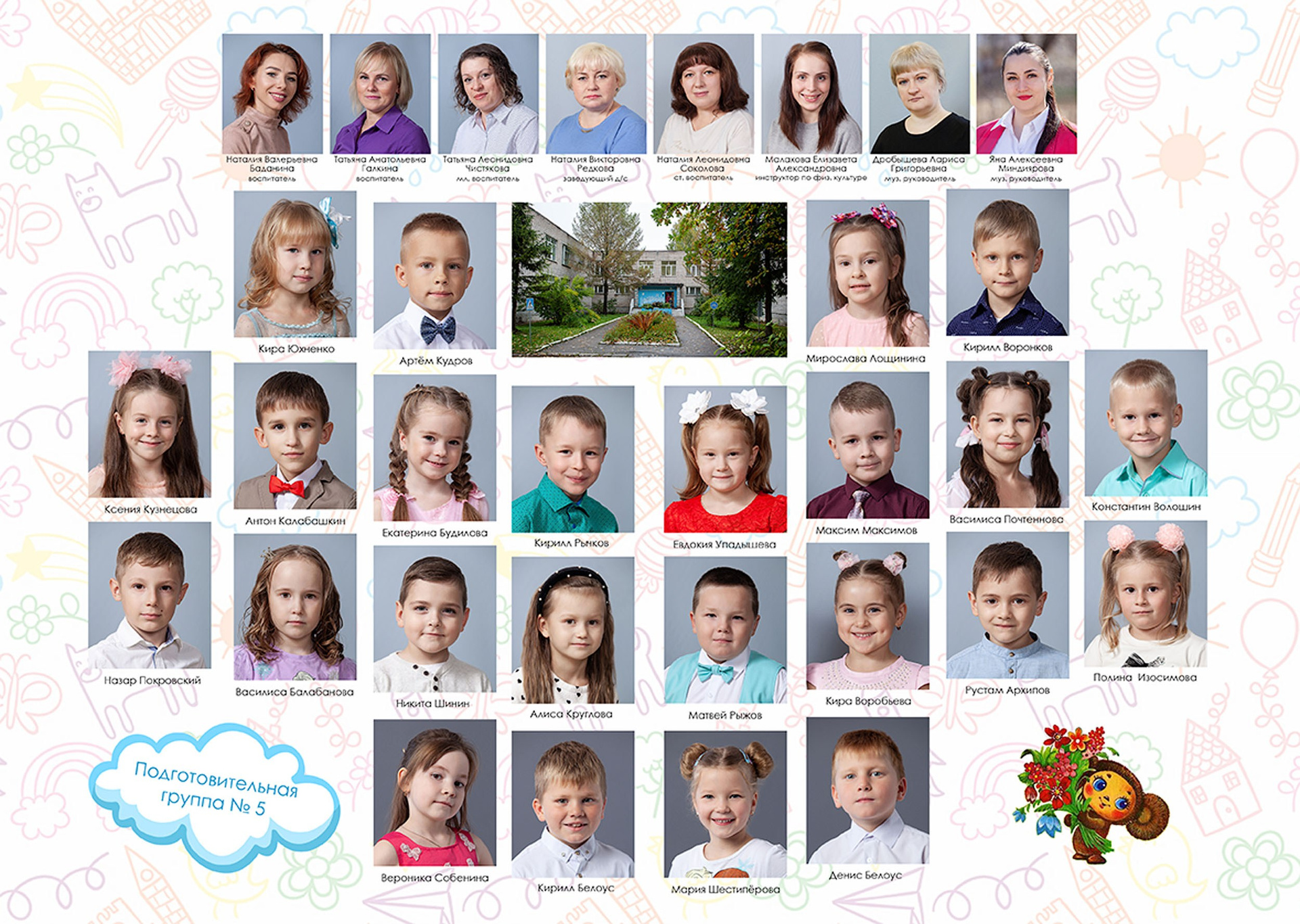 - виньетка с друзьями и воспитателями 30*40 см с текстурной ламинацией