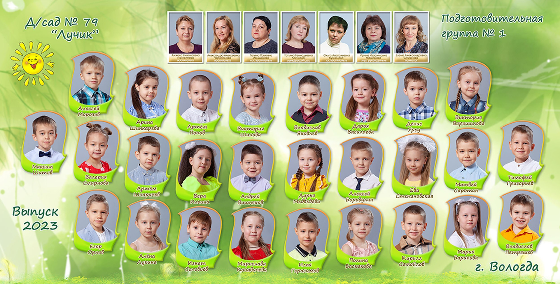 - виньетка с друзьями и воспитателями 20*40 см