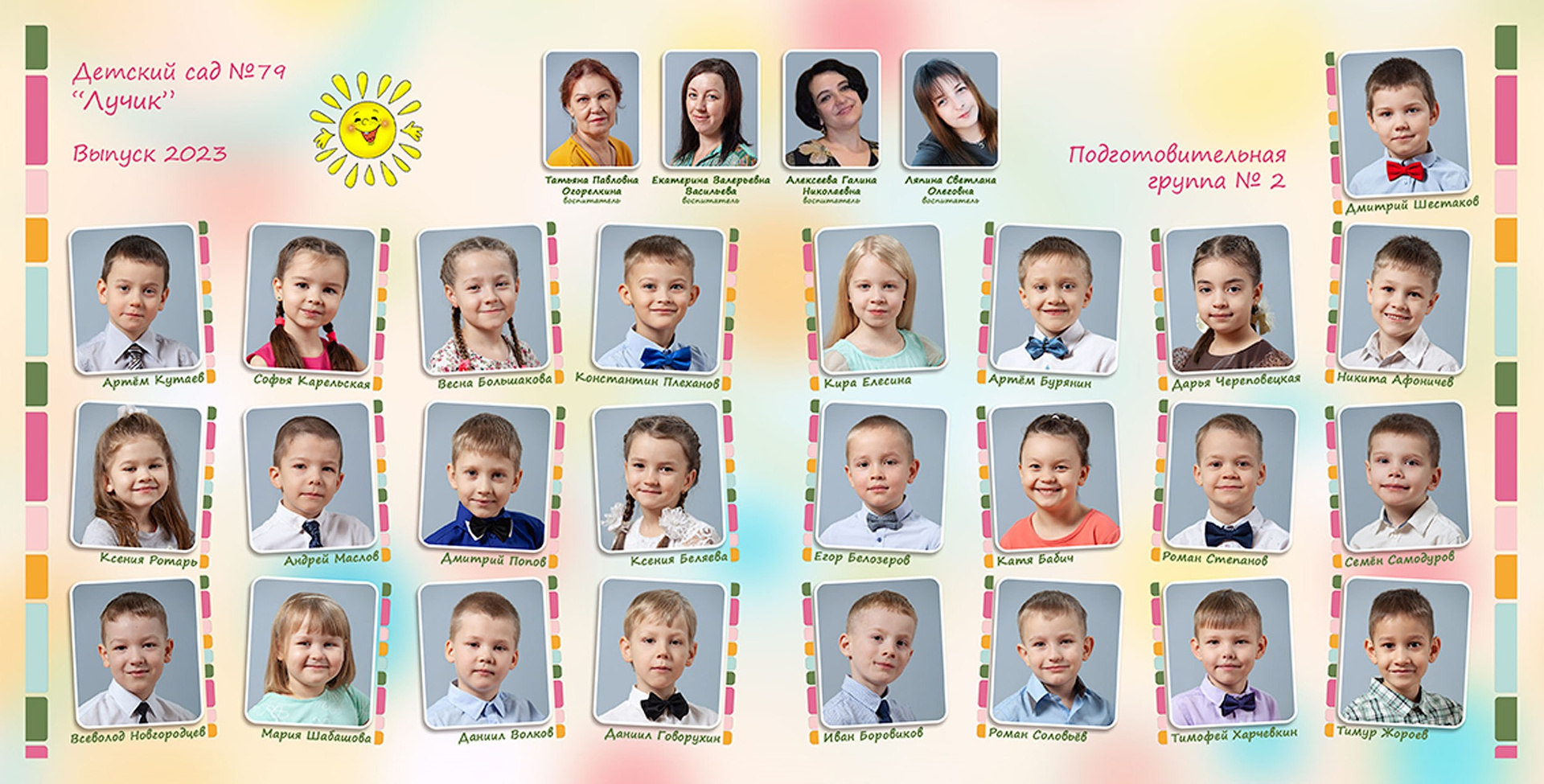 - виньетка с друзьями и воспитателями 20*40 см