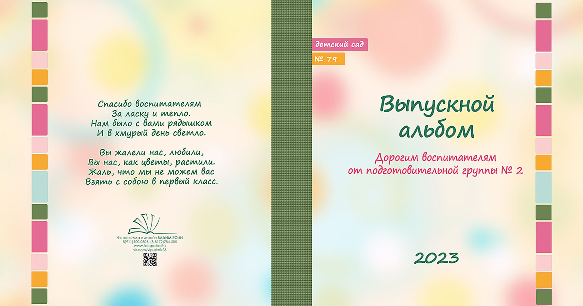 Выпускная фотокнига «Радуга». Формат 20*20 см с глянцевой ламинированной обложкой.
