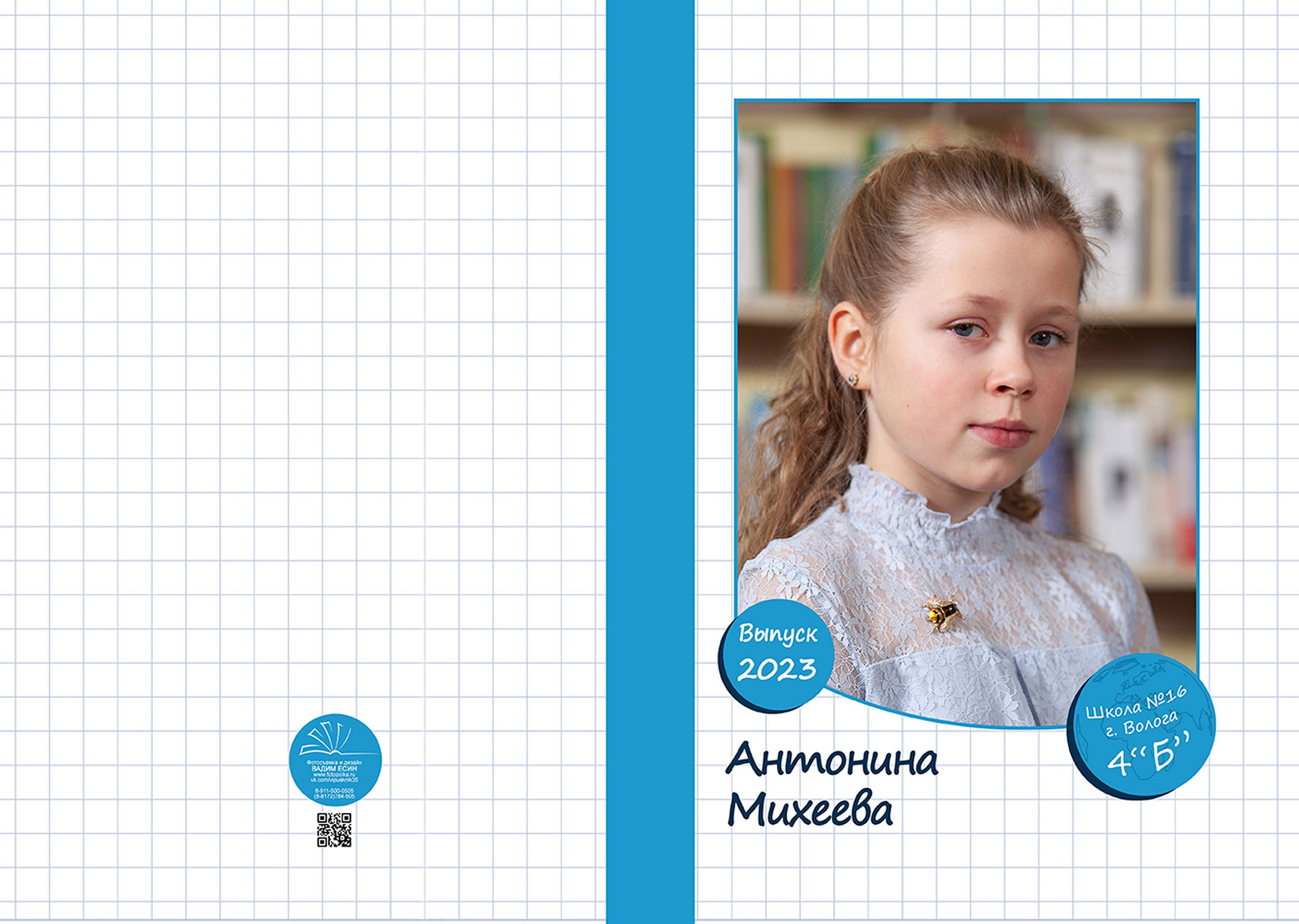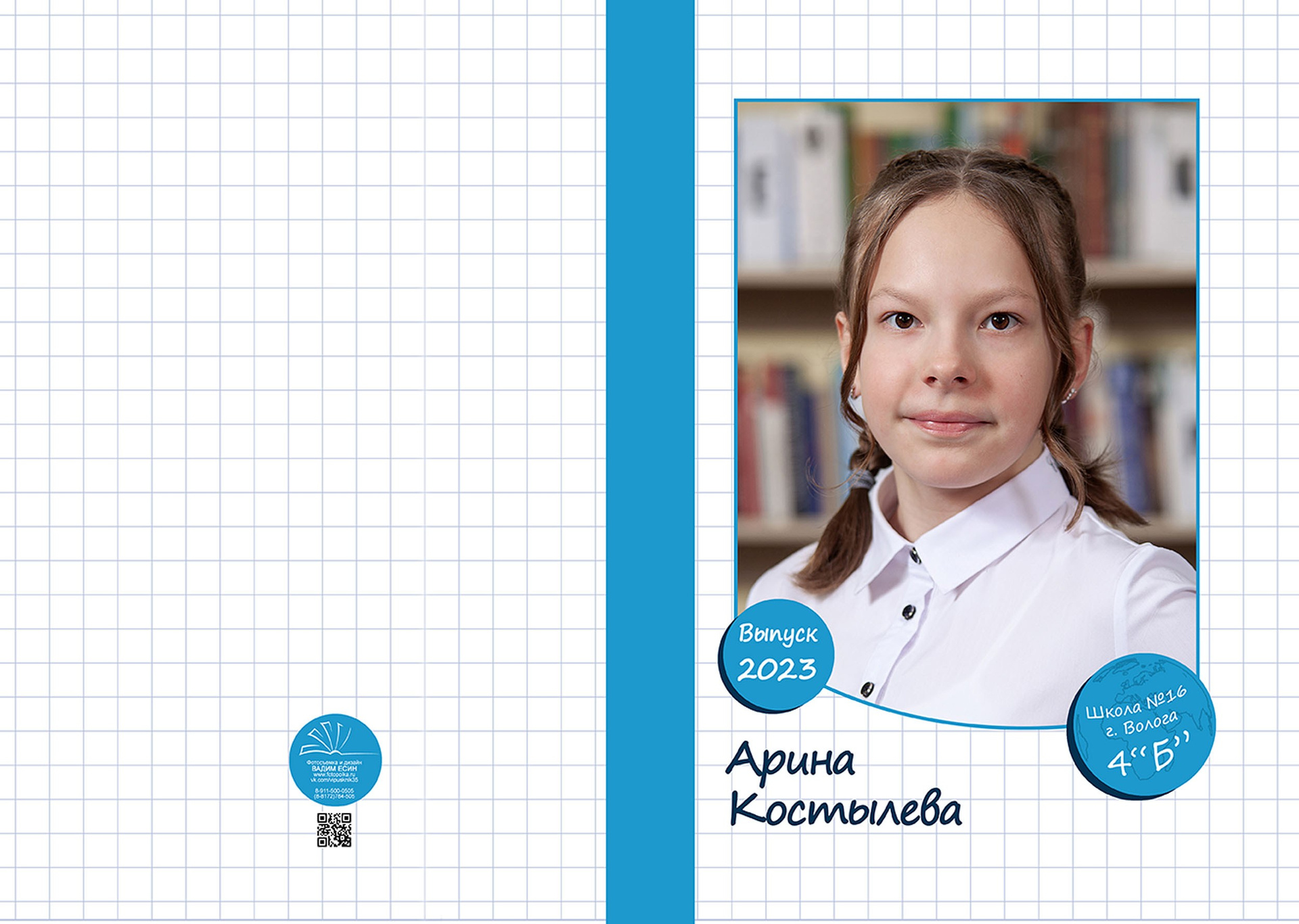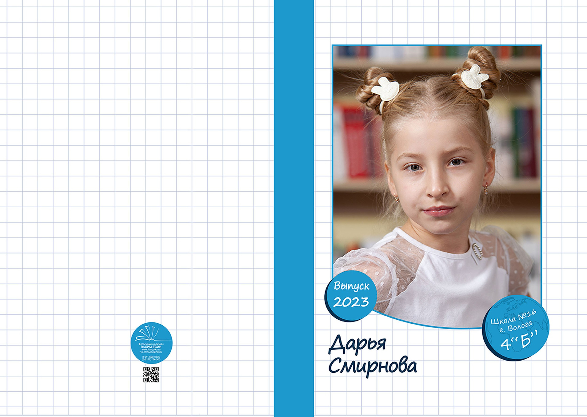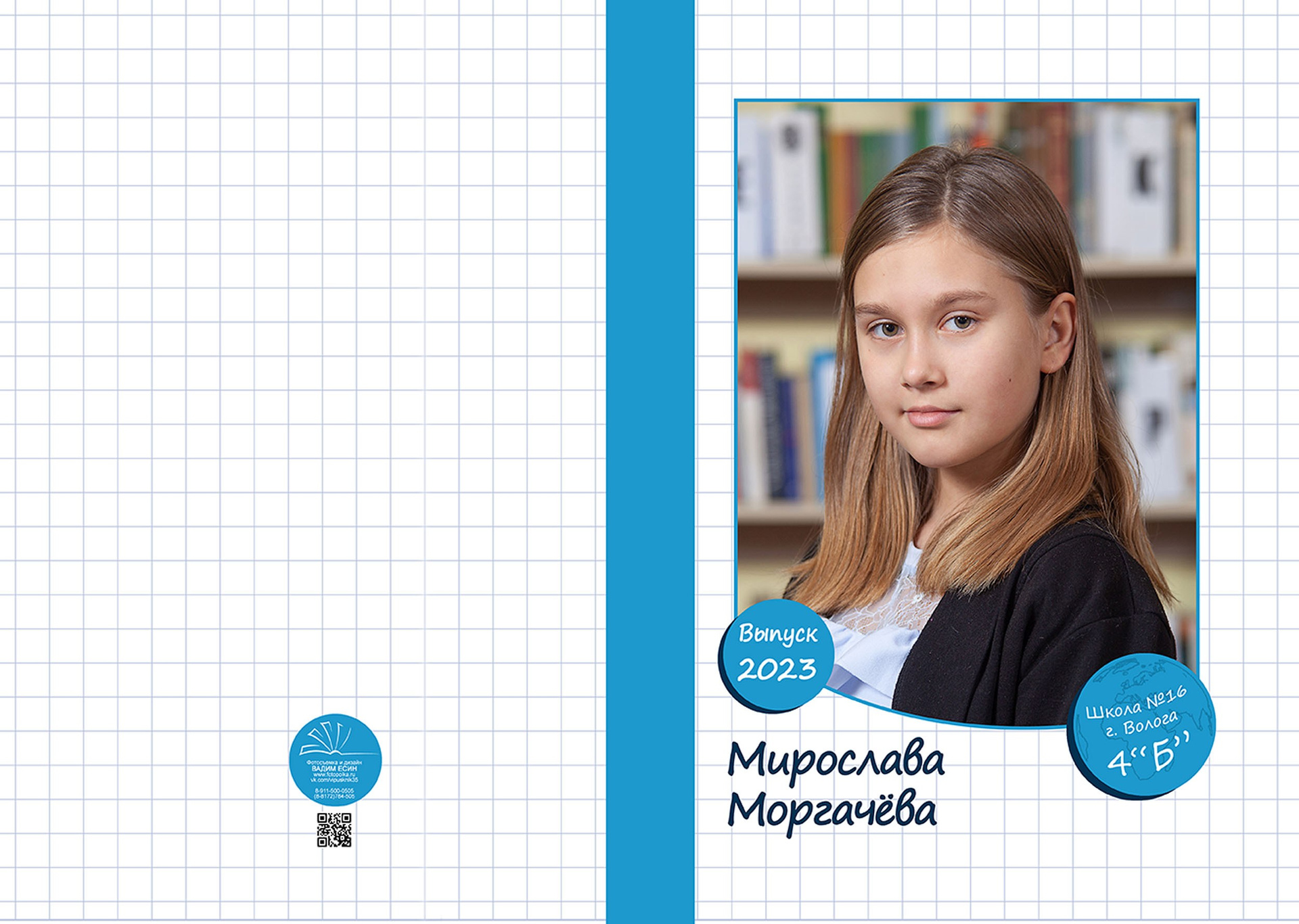 Три разворота (6 страниц)+индив. фотообложка с портретом.