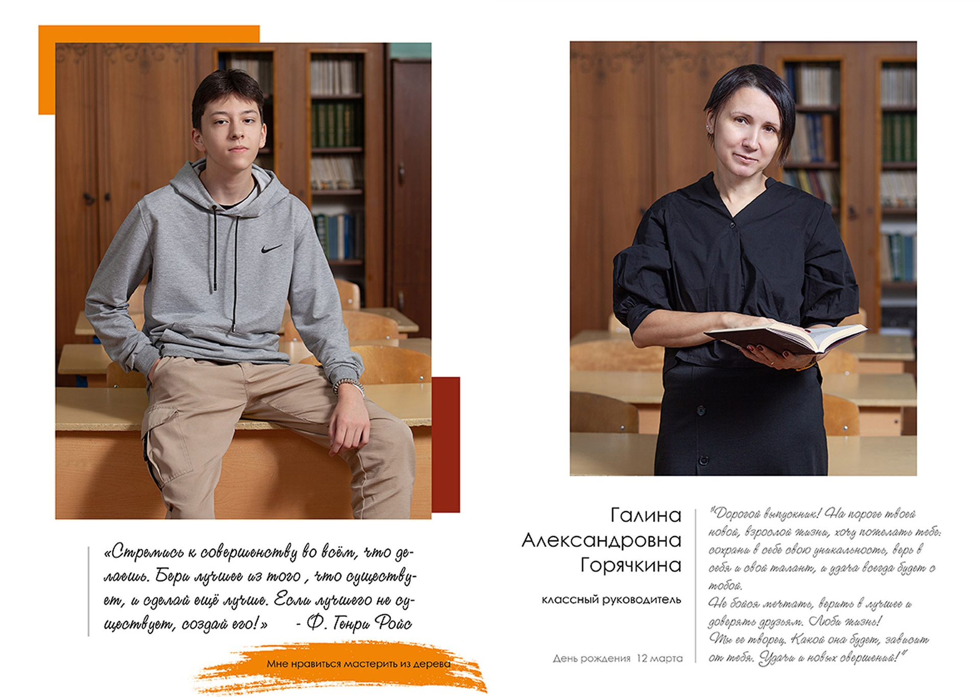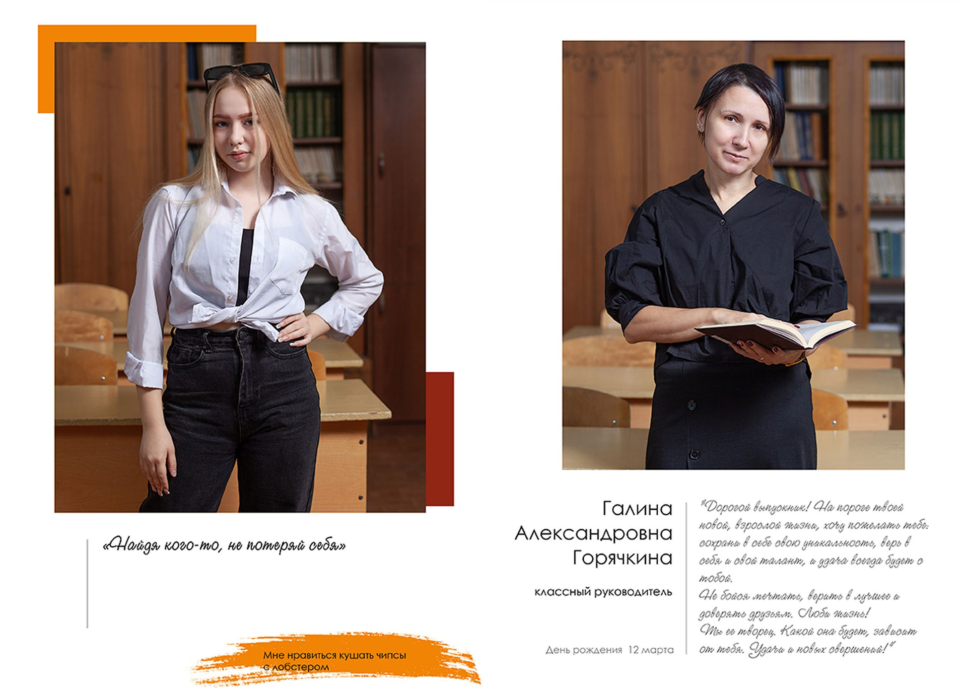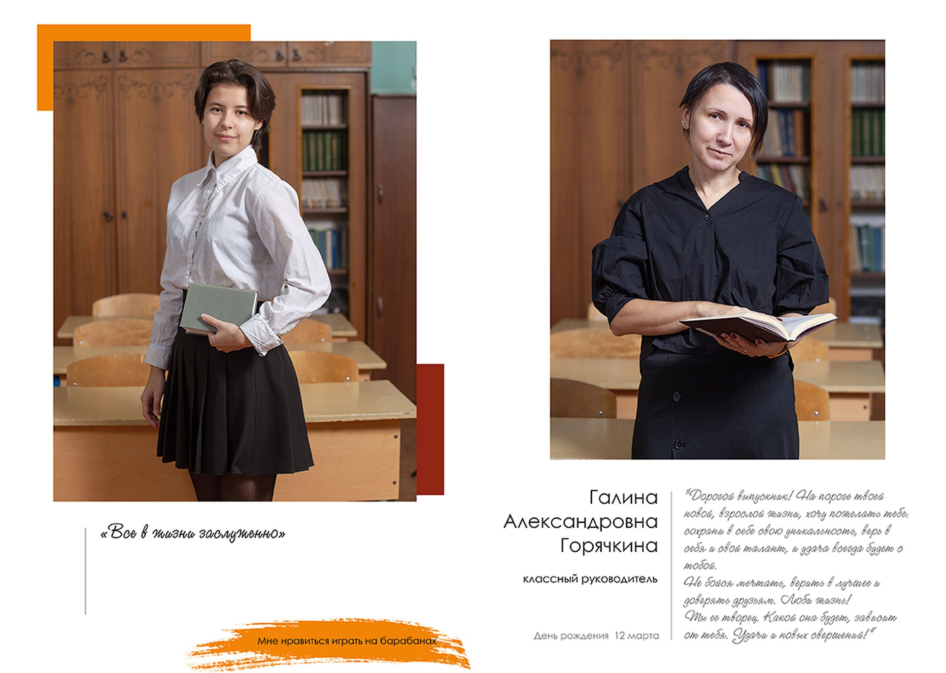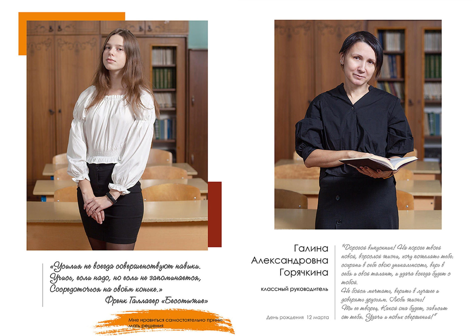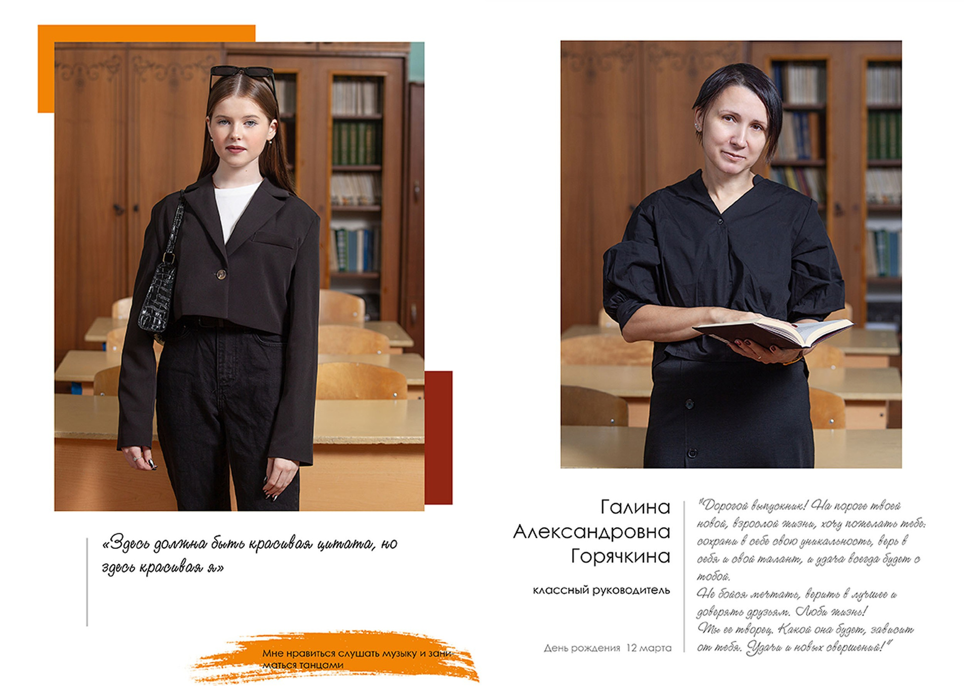 - индивидуальный разворот с личной цитатой
