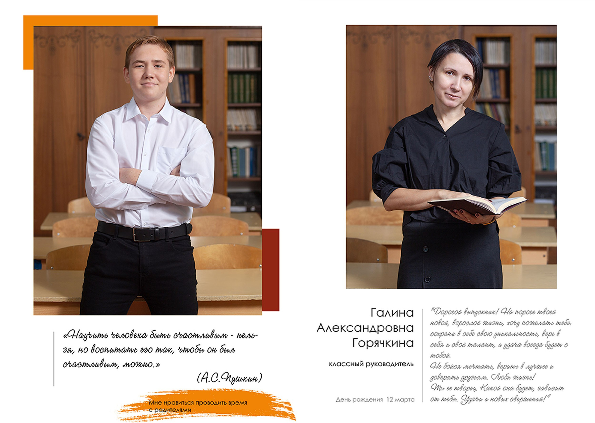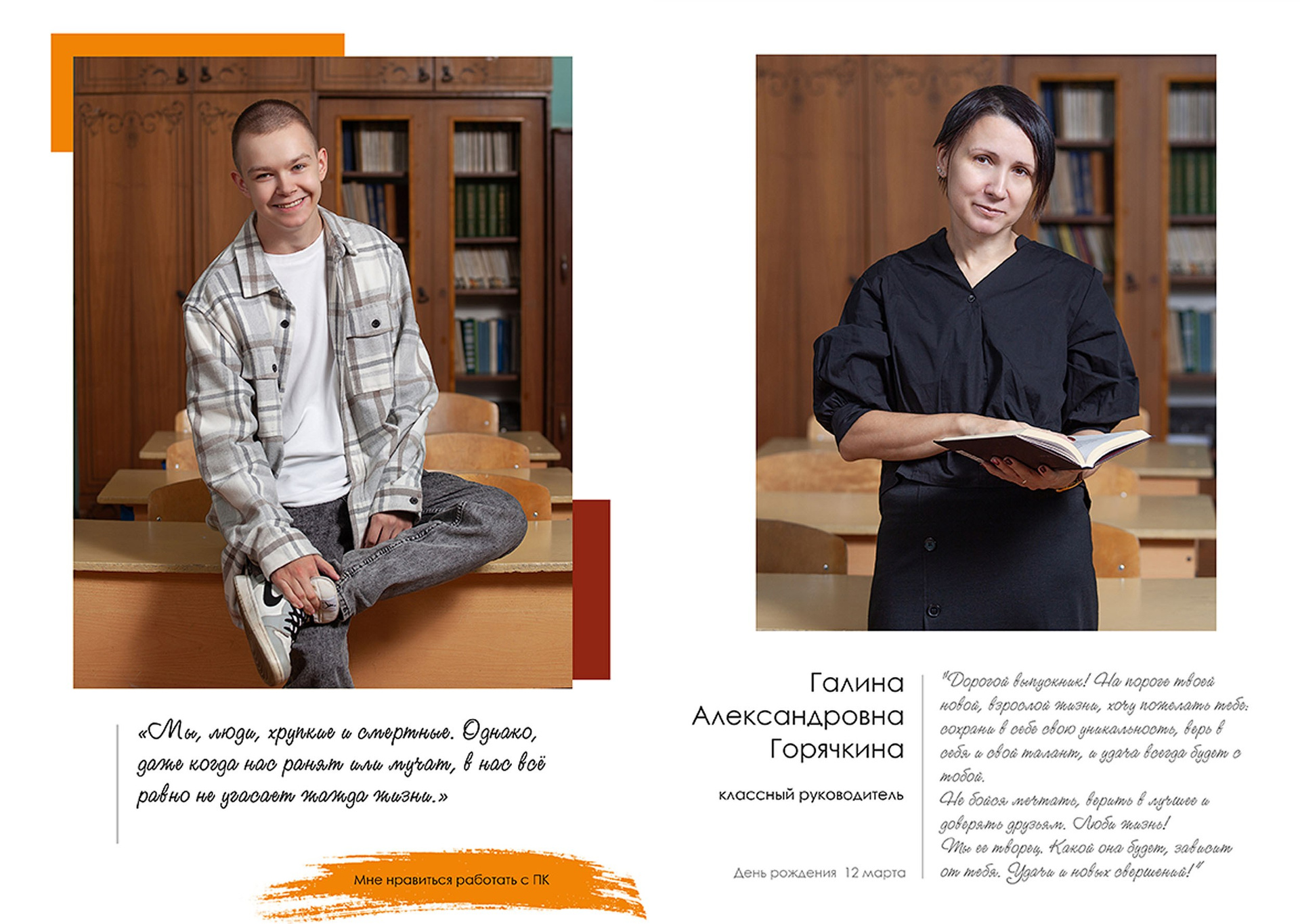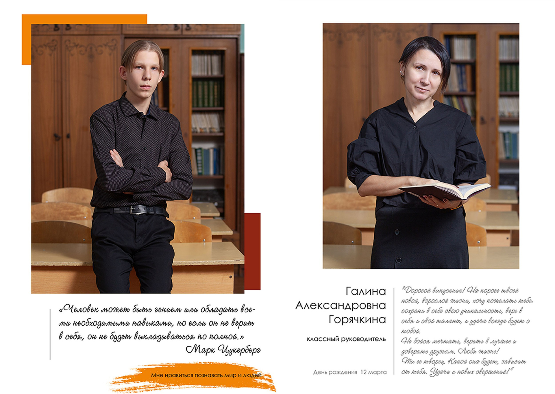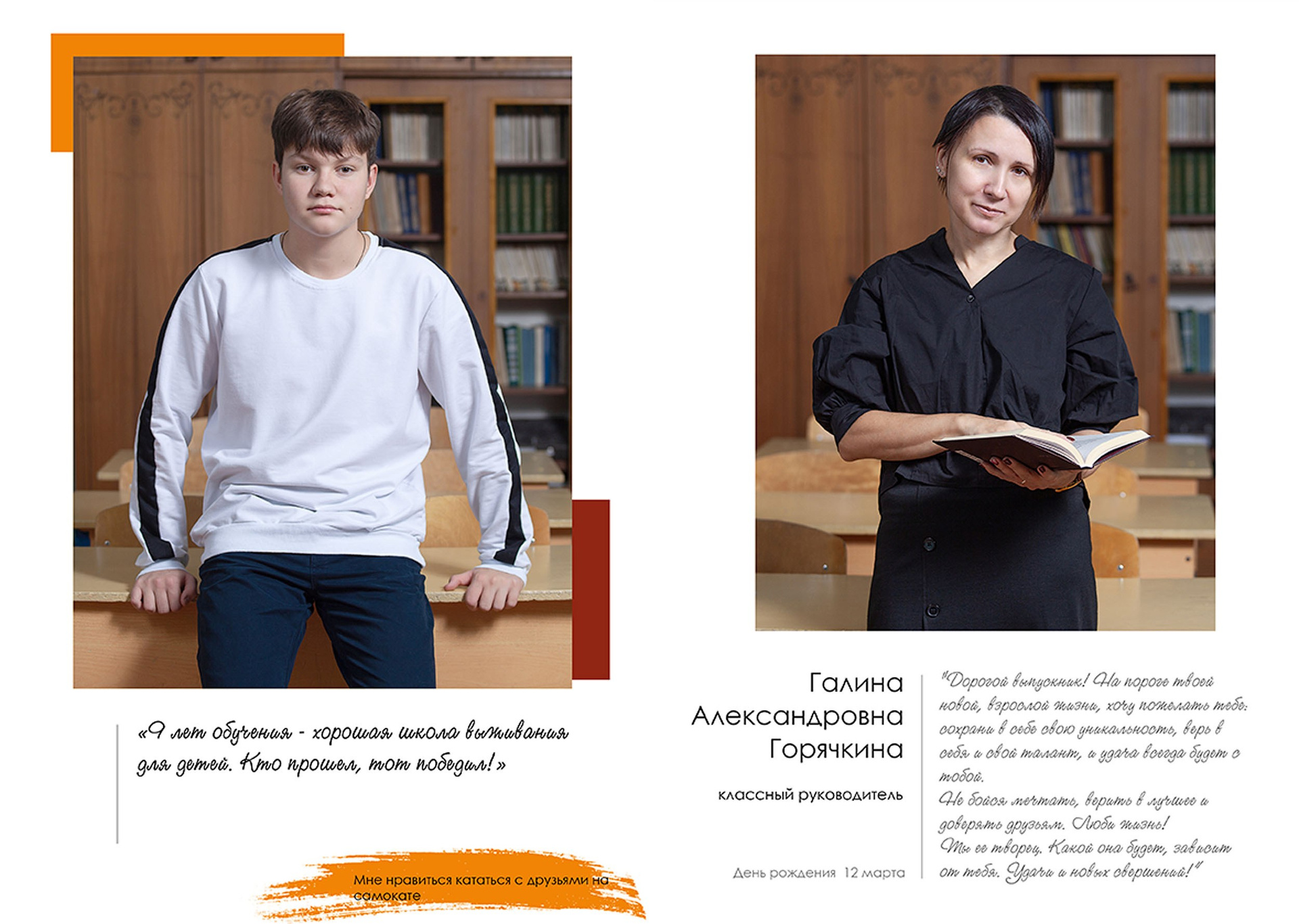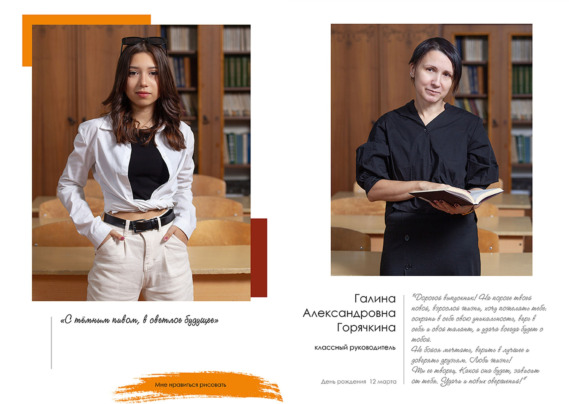 - индивидуальный разворот с личной цитатой