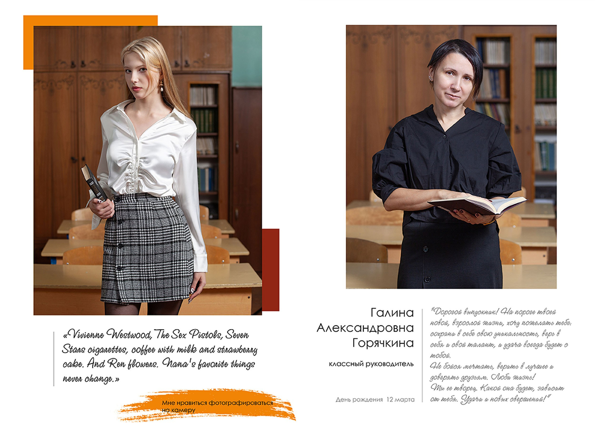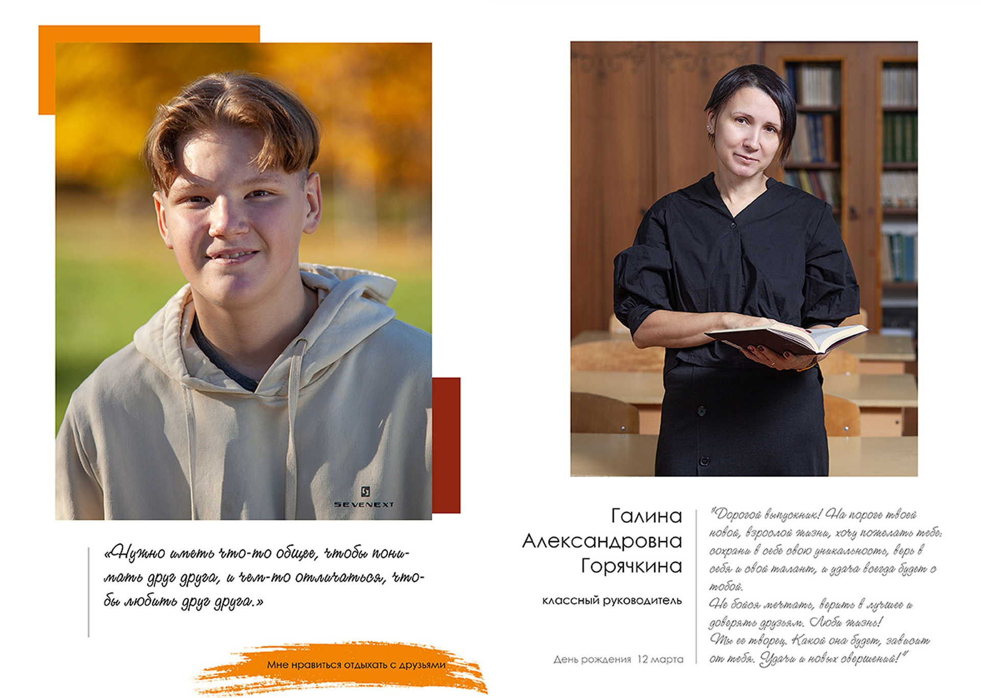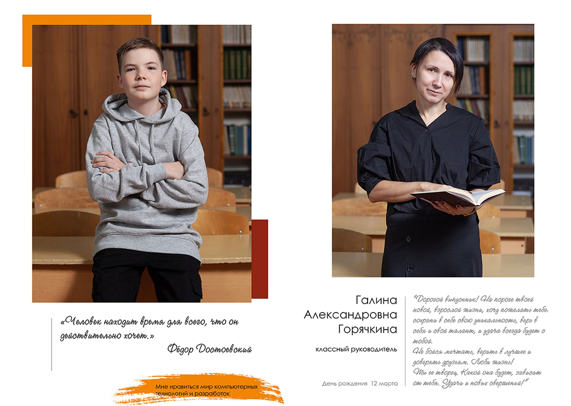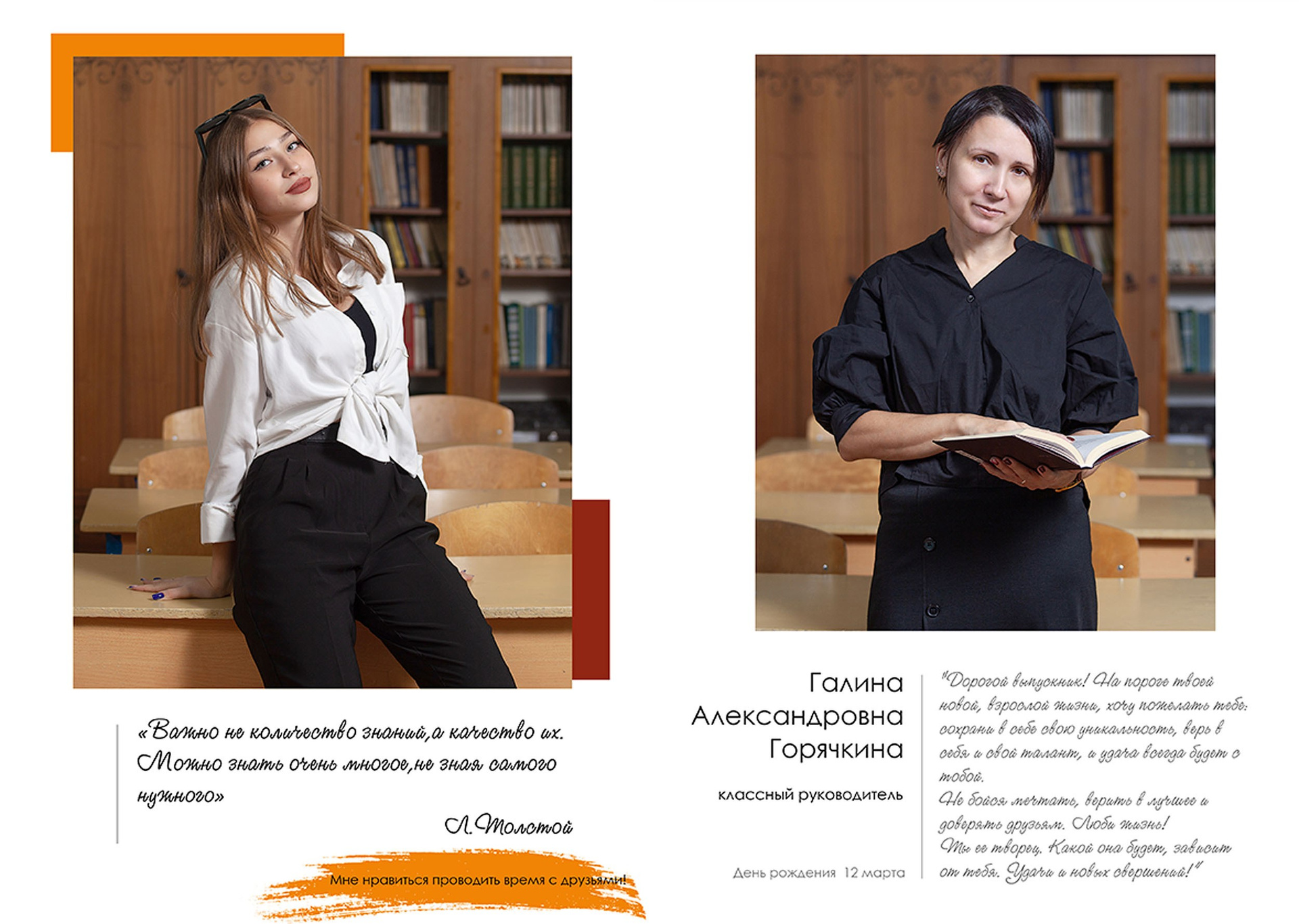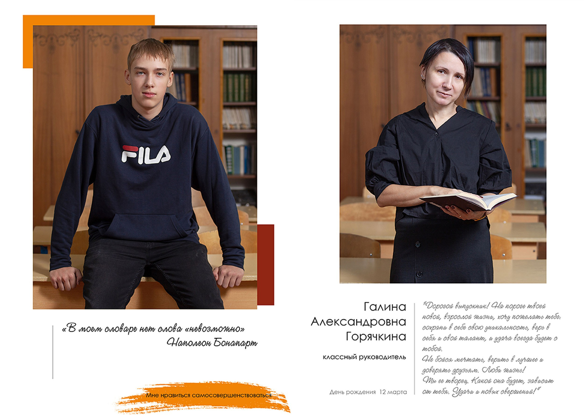 - индивидуальный разворот с личной цитатой