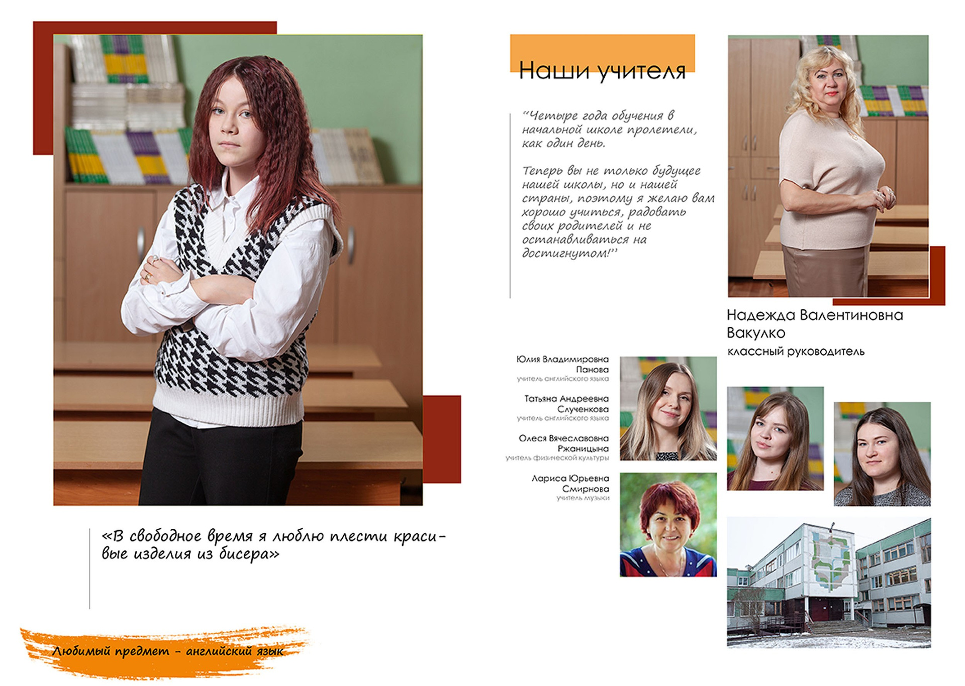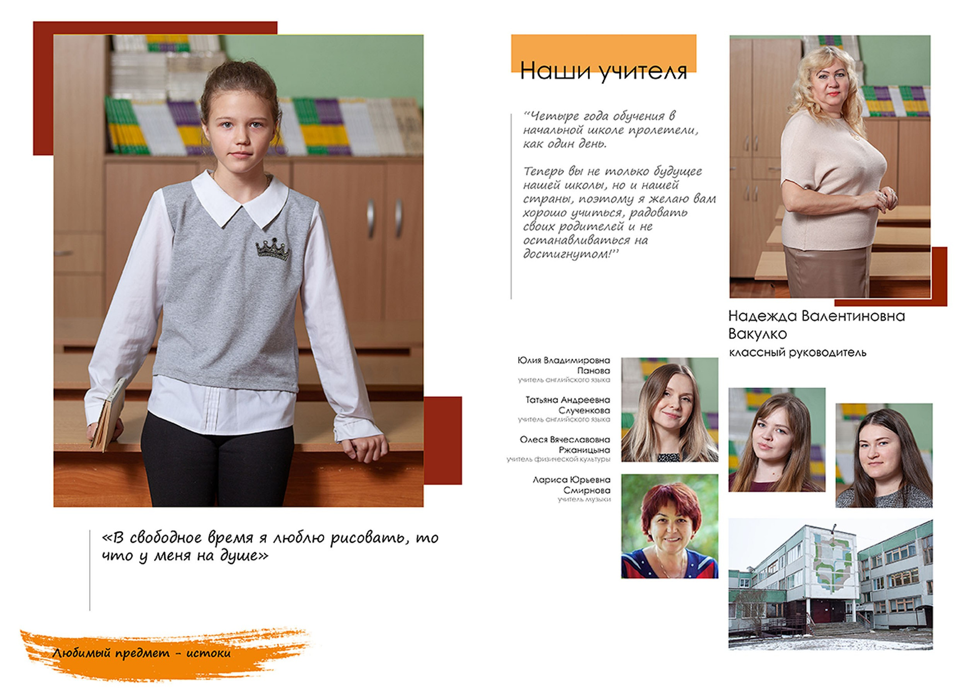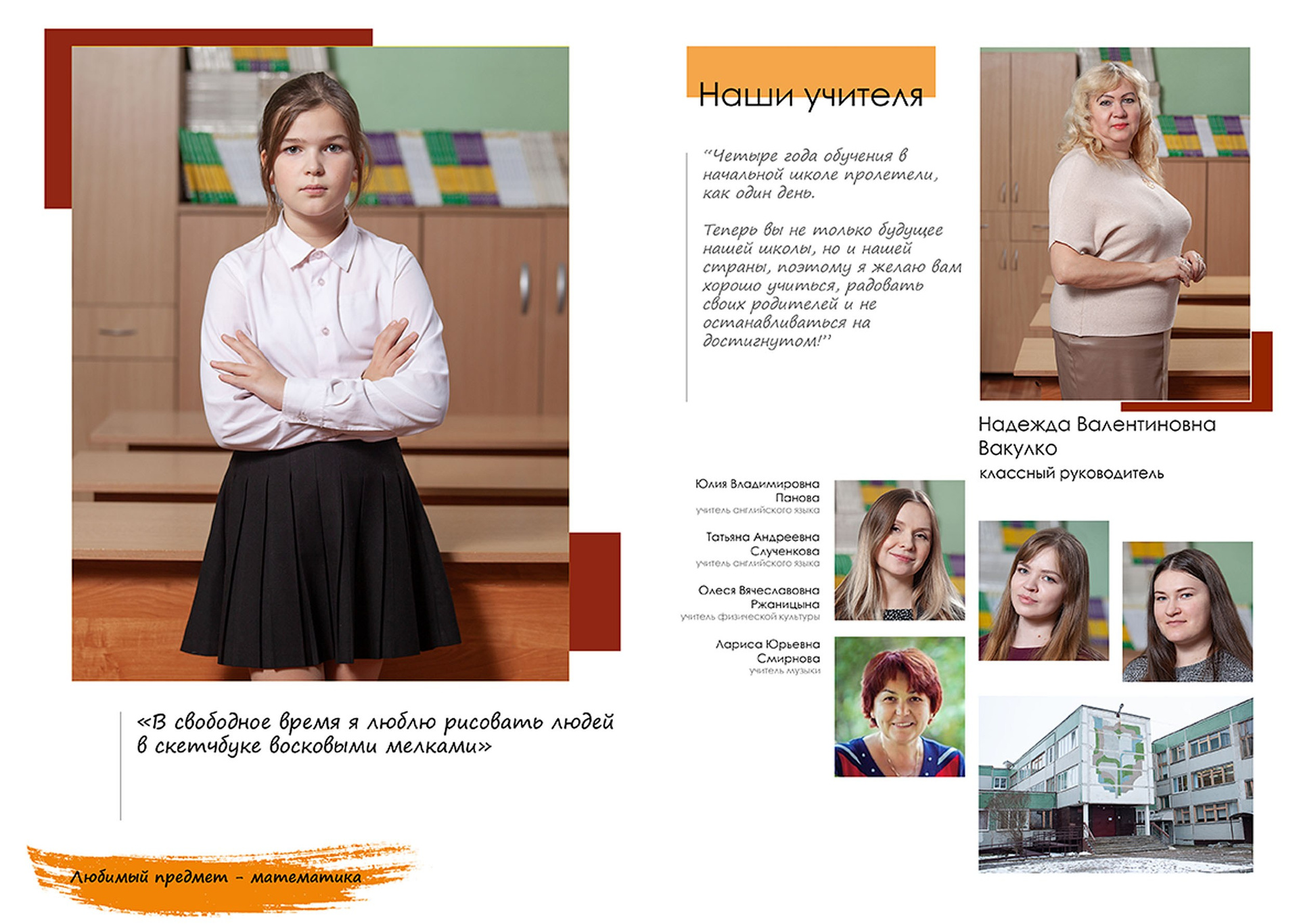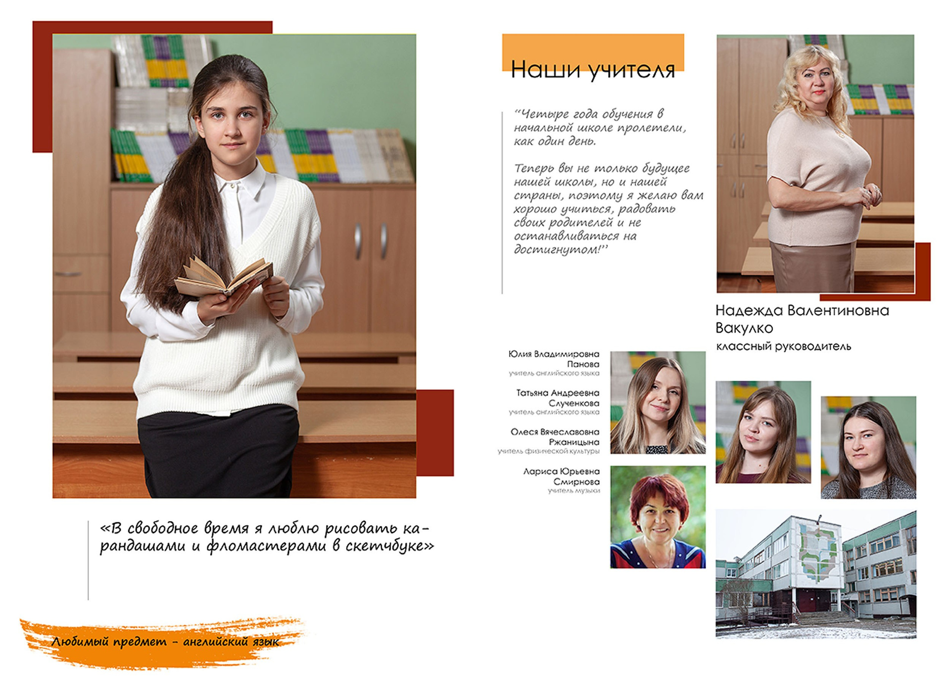 Три разворота (6 страниц), в том числе индив. разворот с цитатой.
