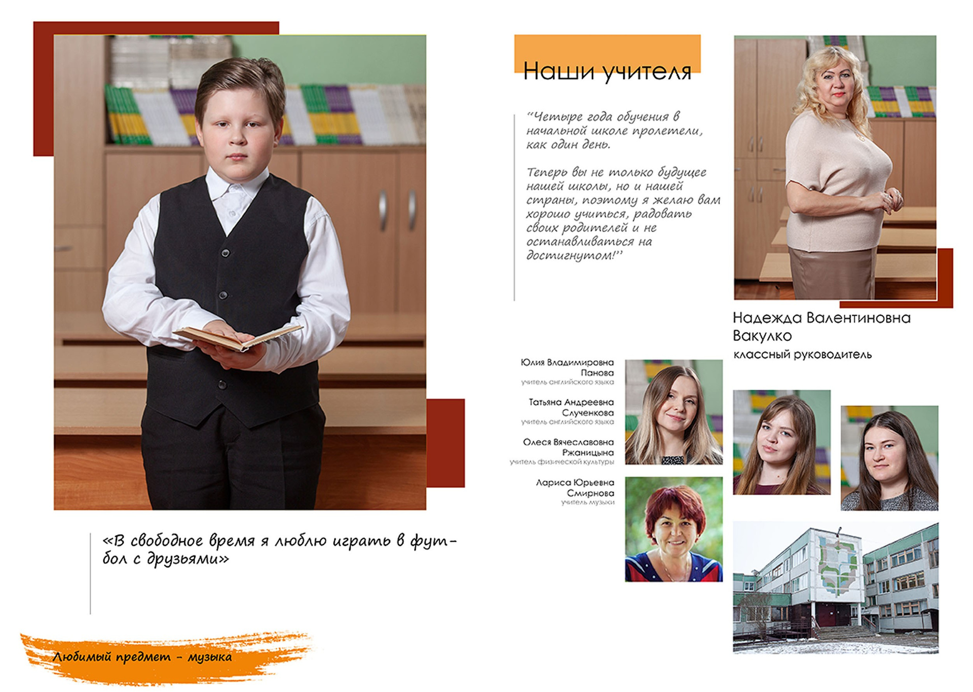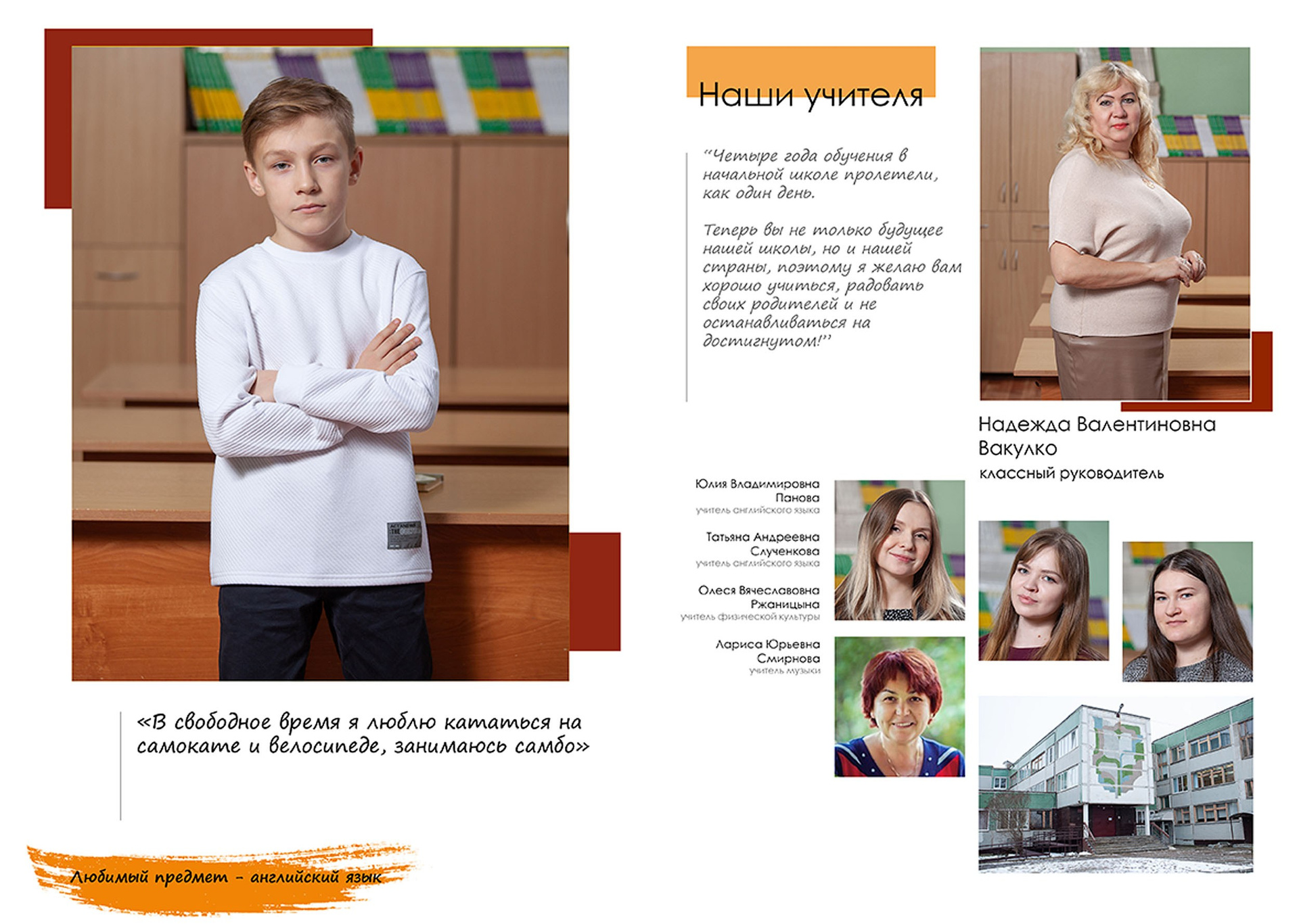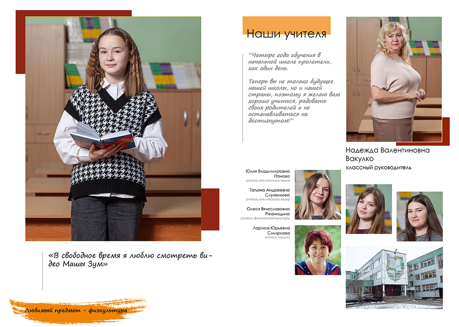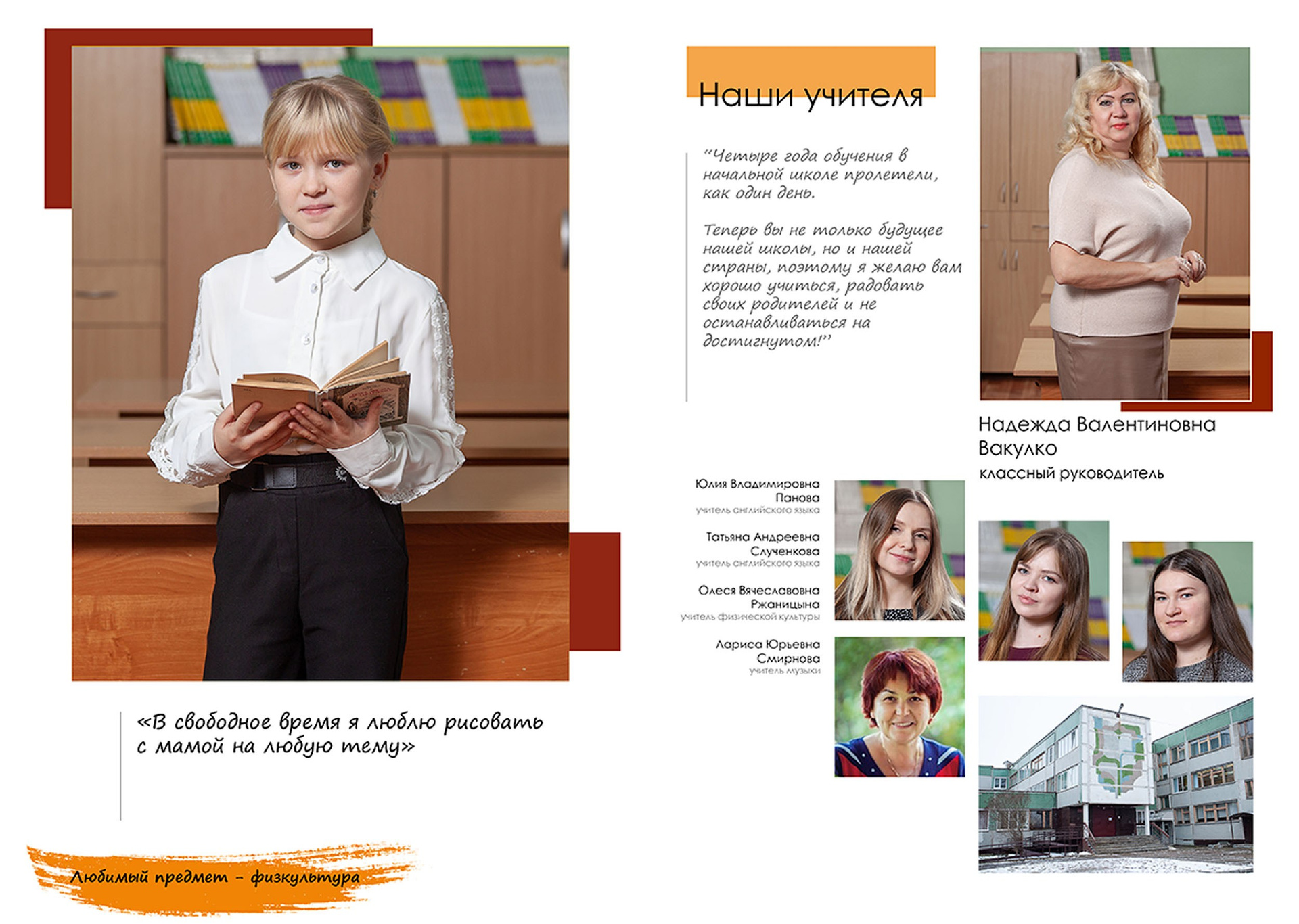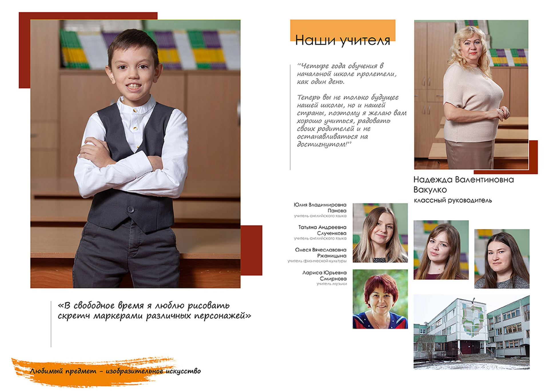 Три разворота (6 страниц), в том числе индив. разворот с цитатой.