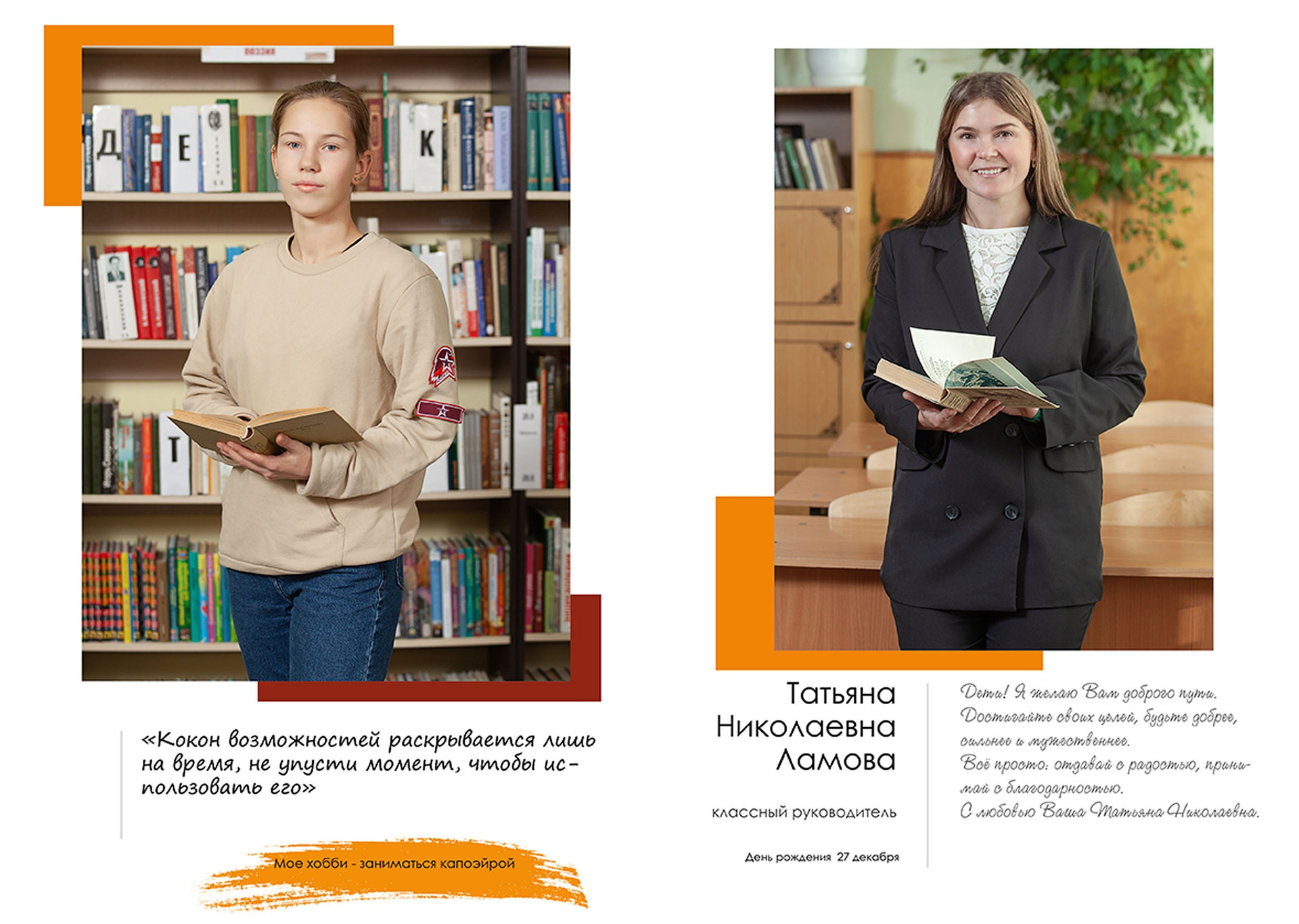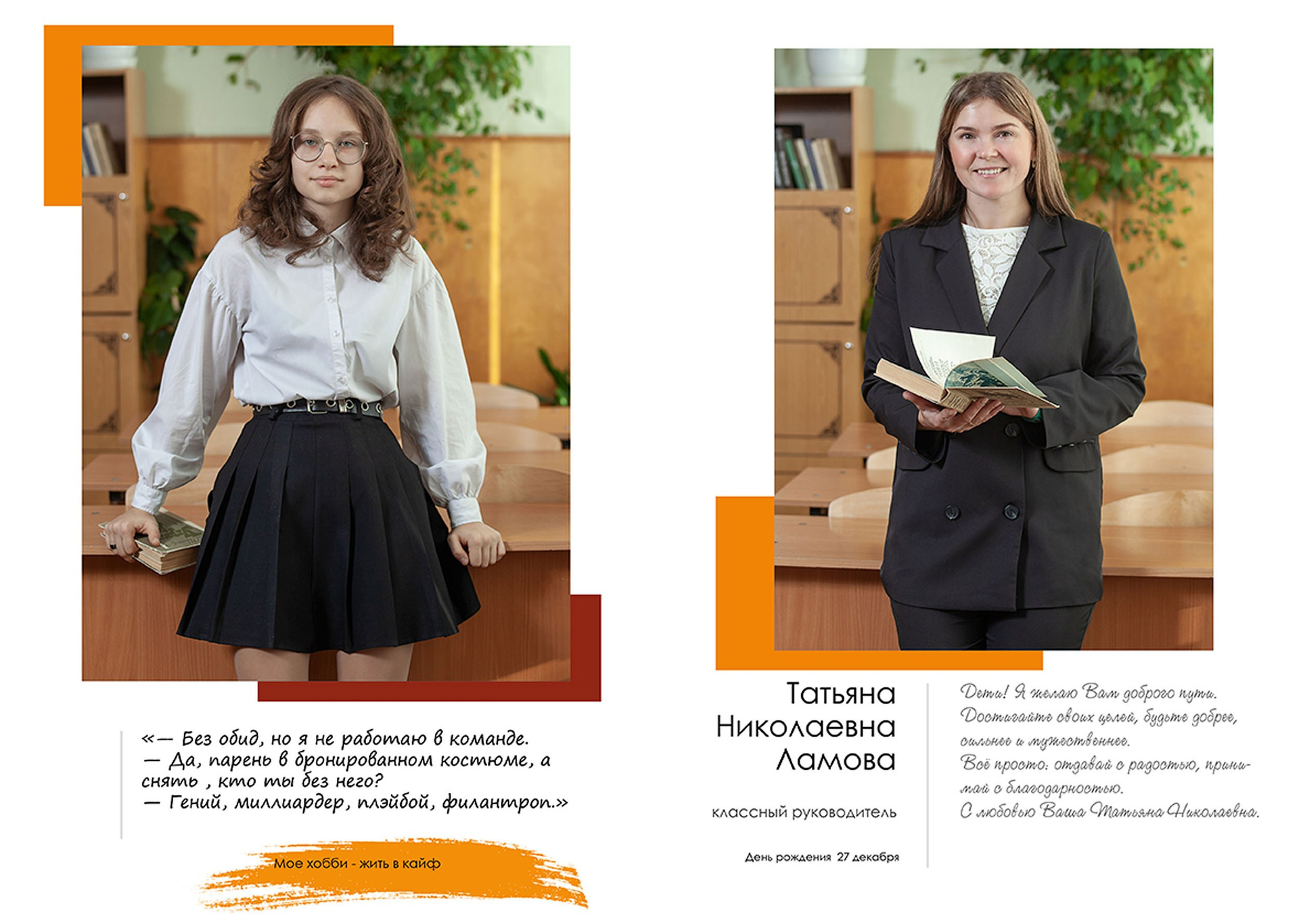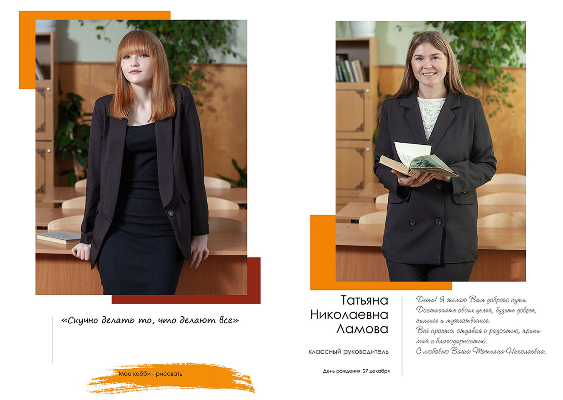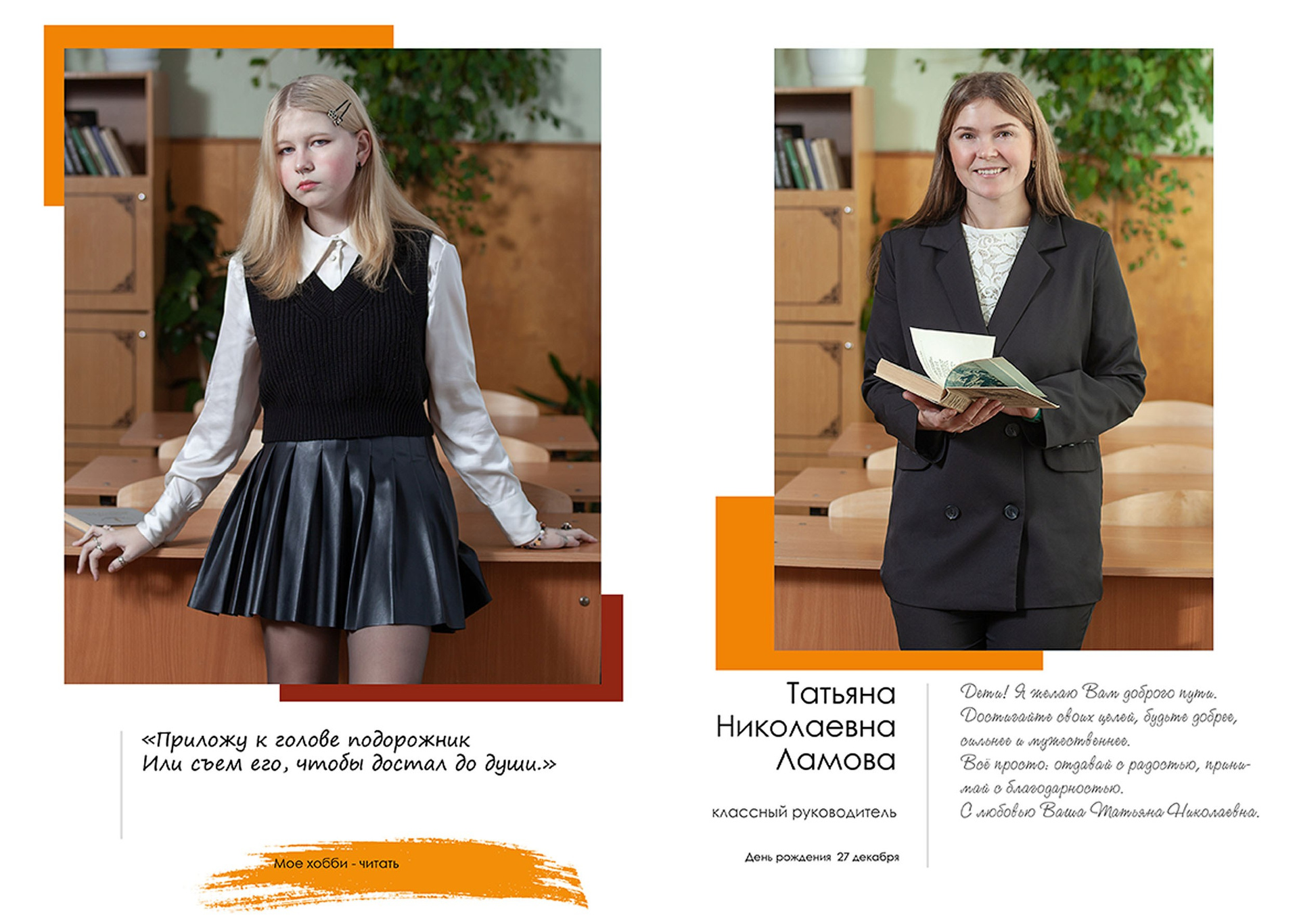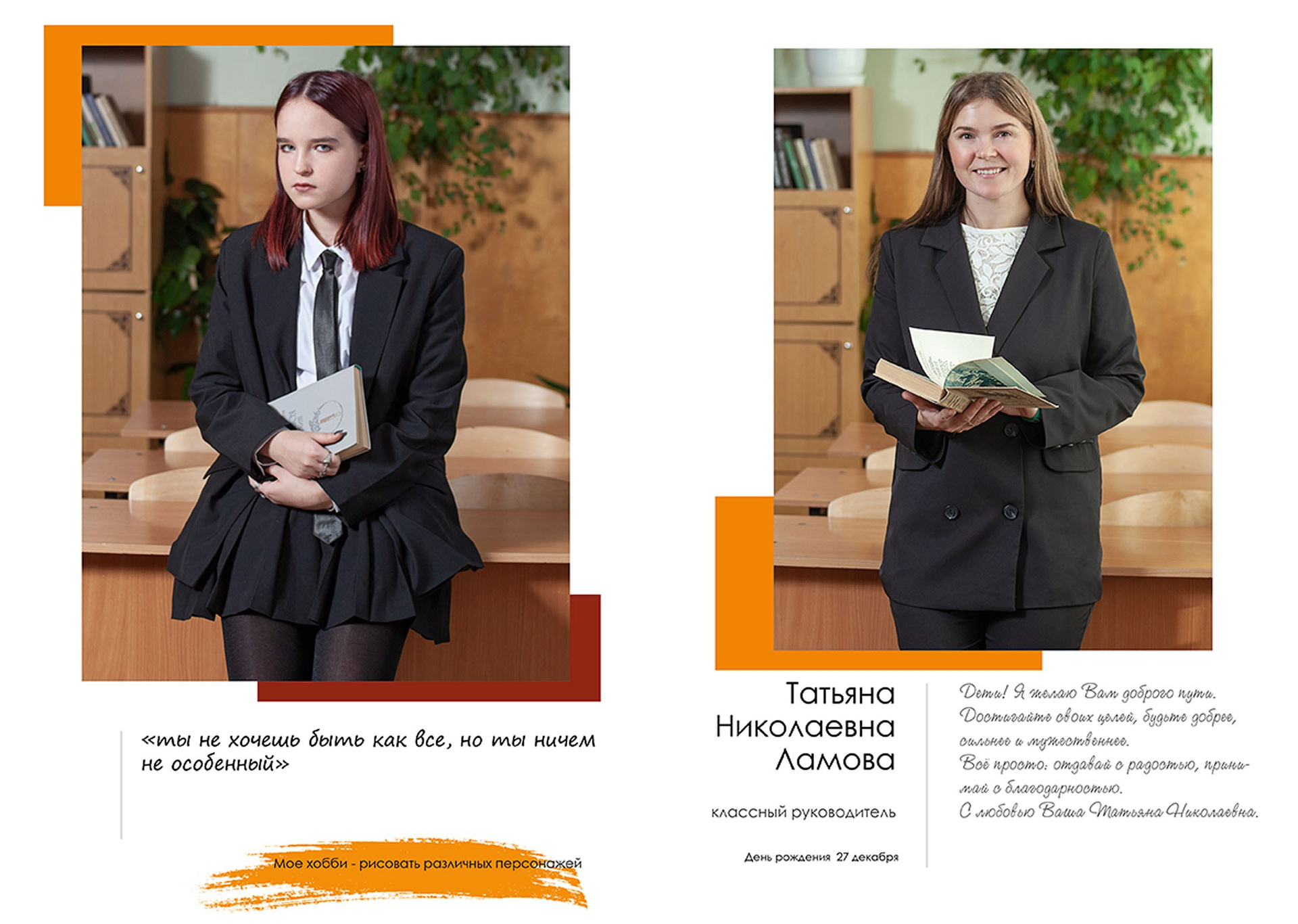 - индивидуальный разворот с личной цитатой