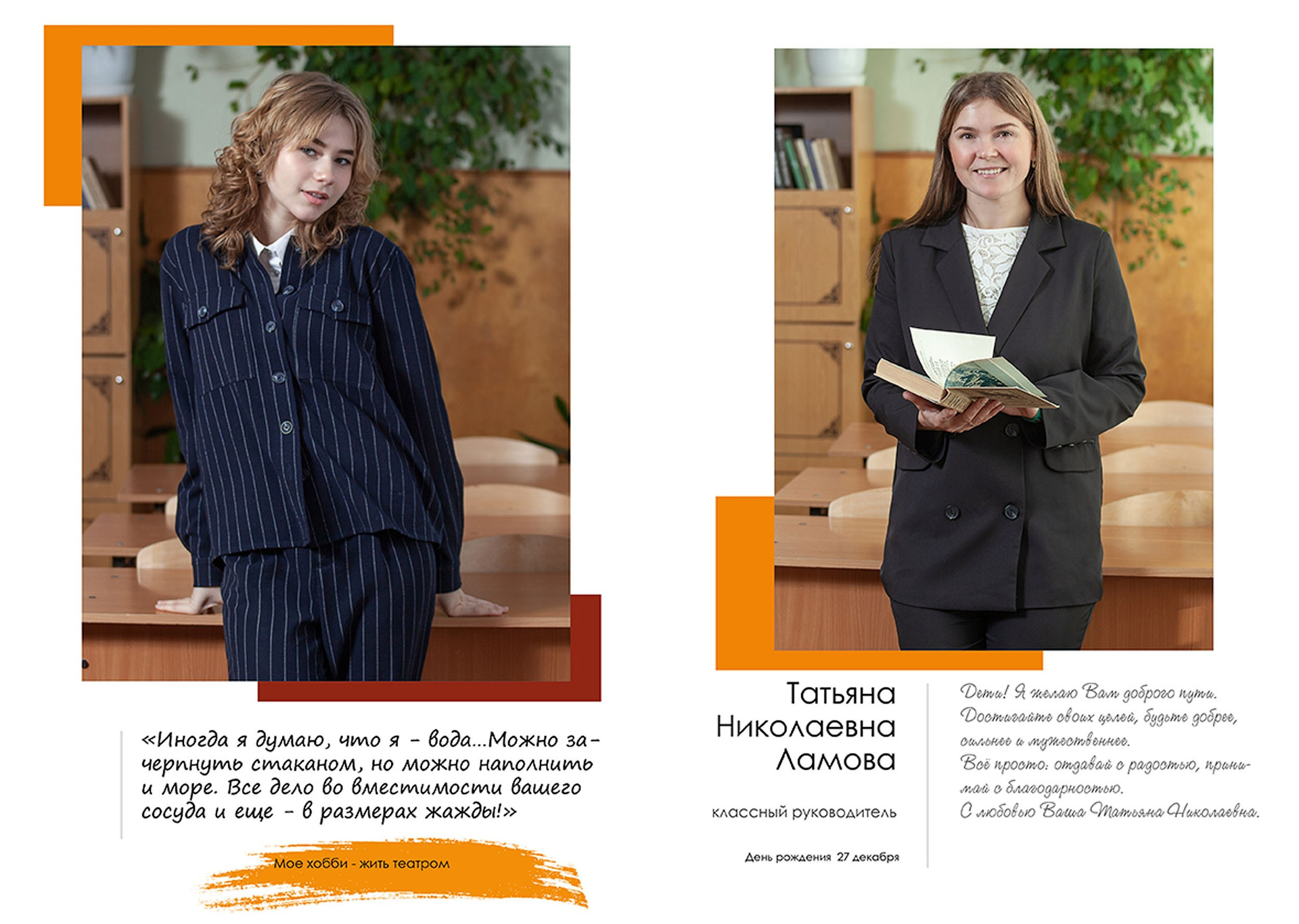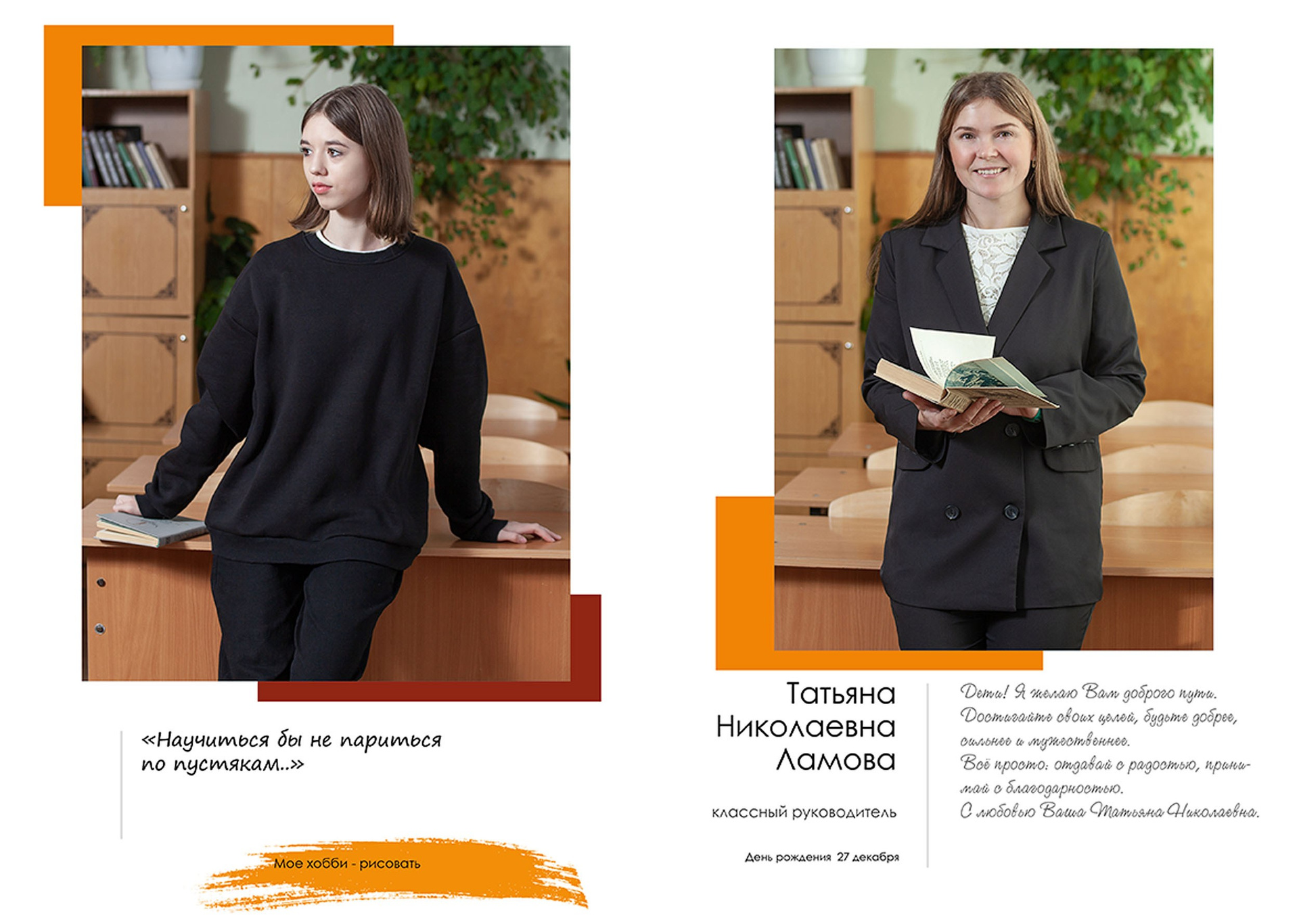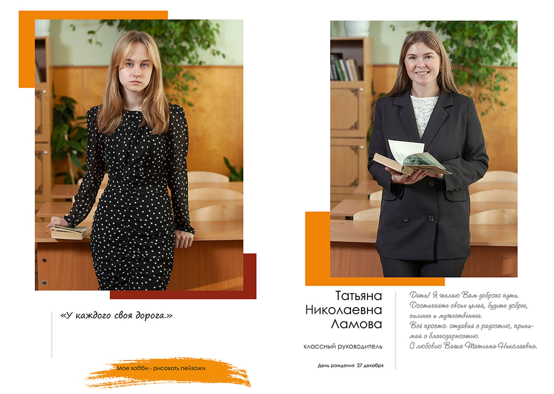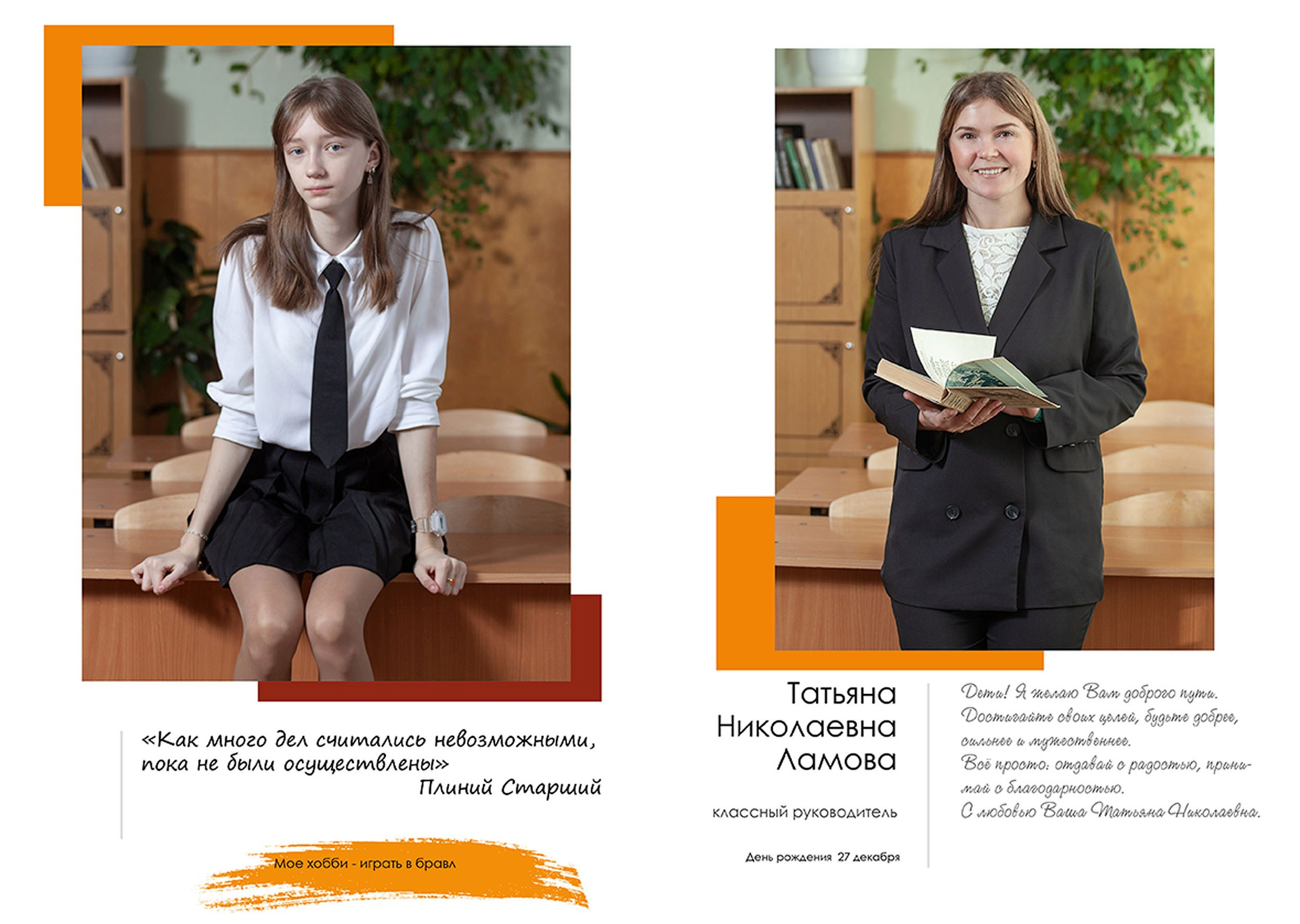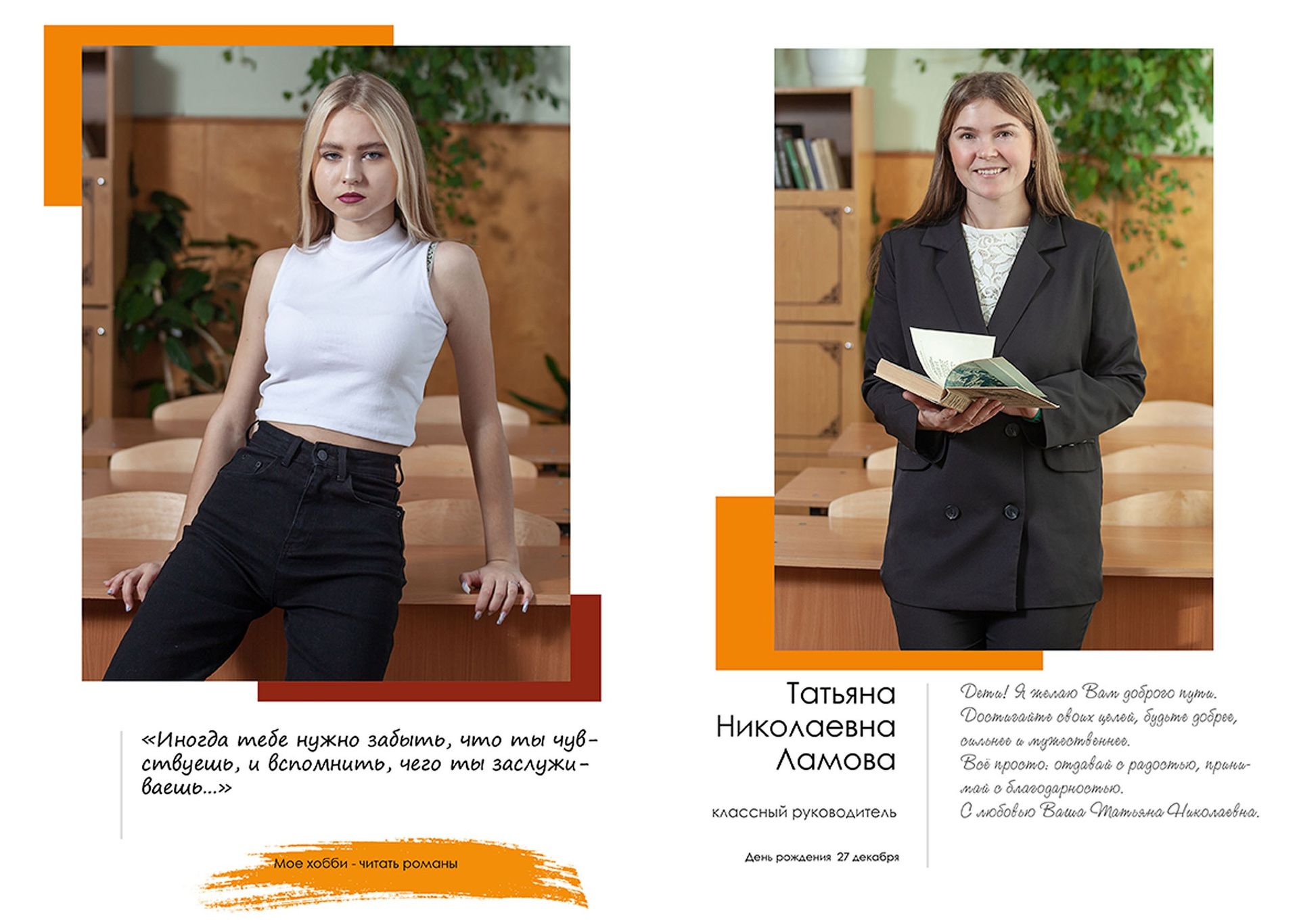 - индивидуальный разворот с личной цитатой