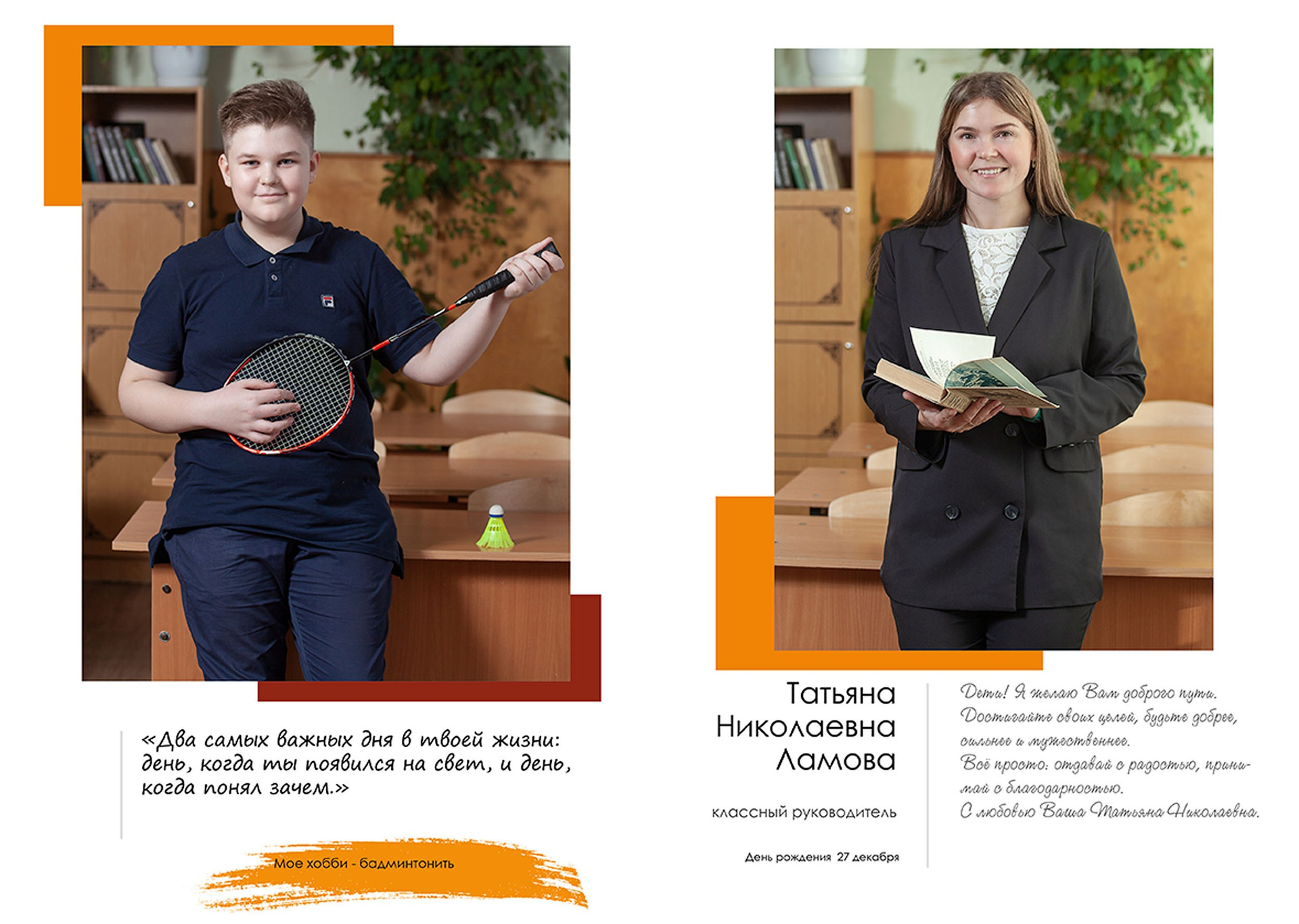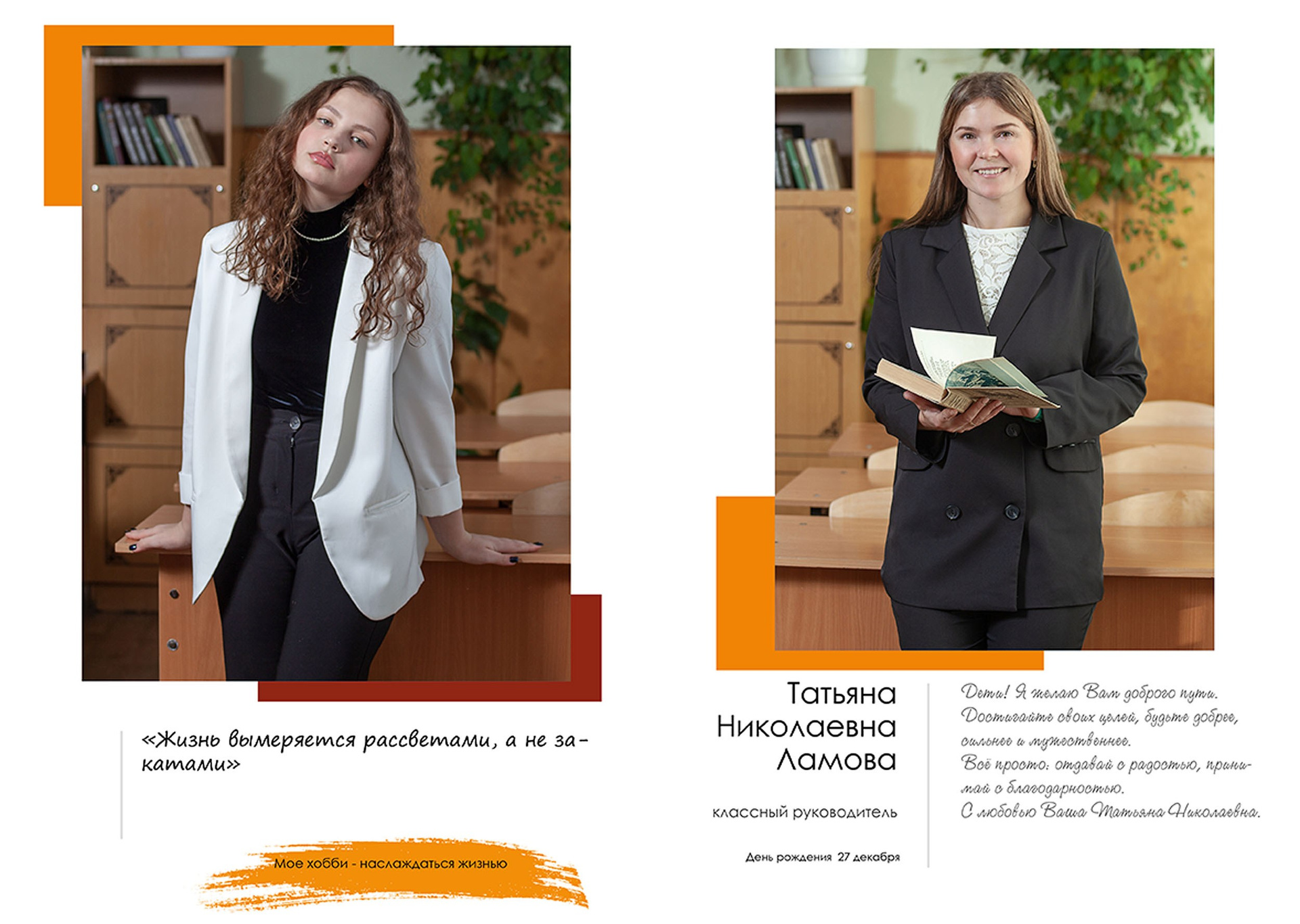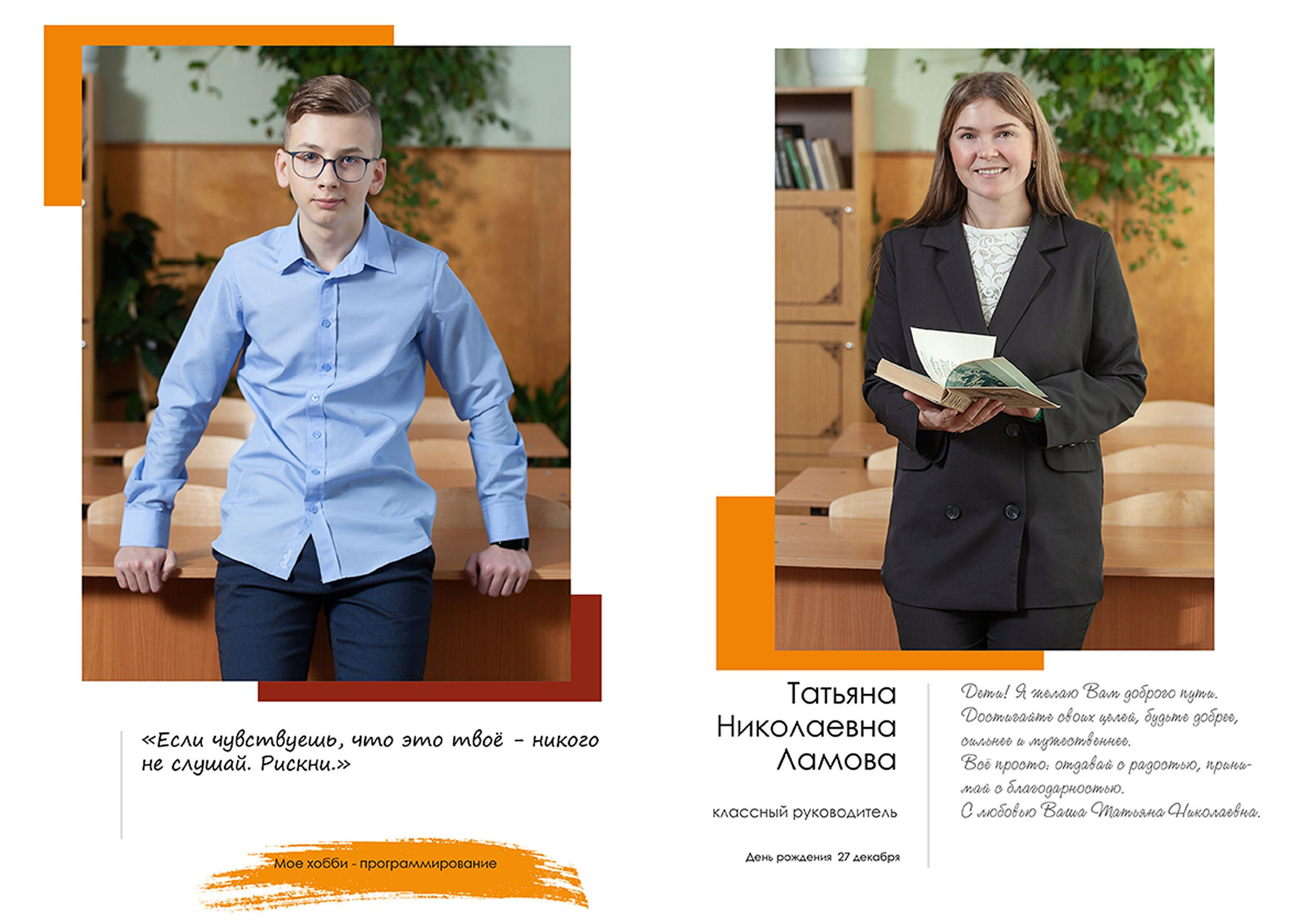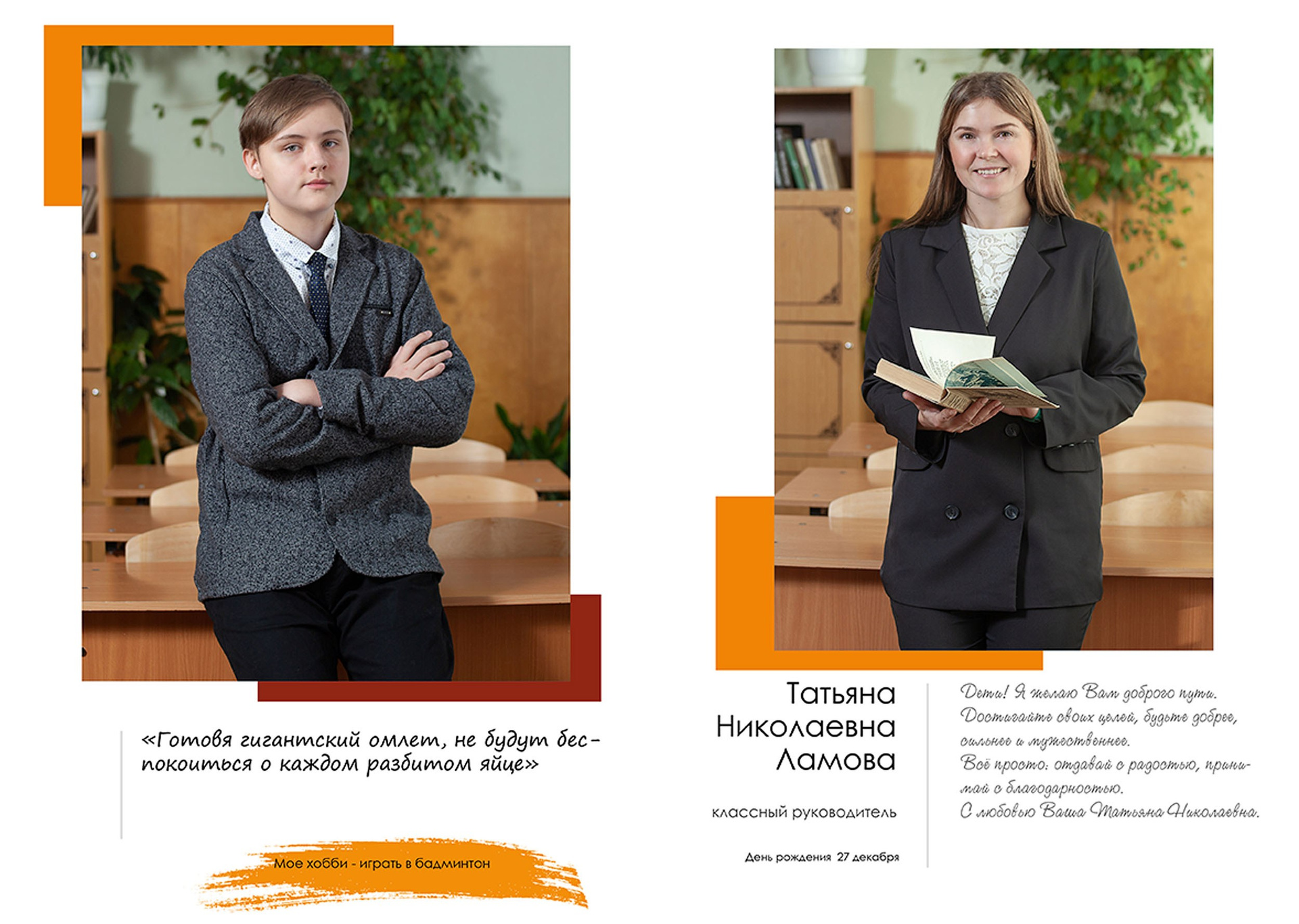 - индивидуальный разворот с личной цитатой
