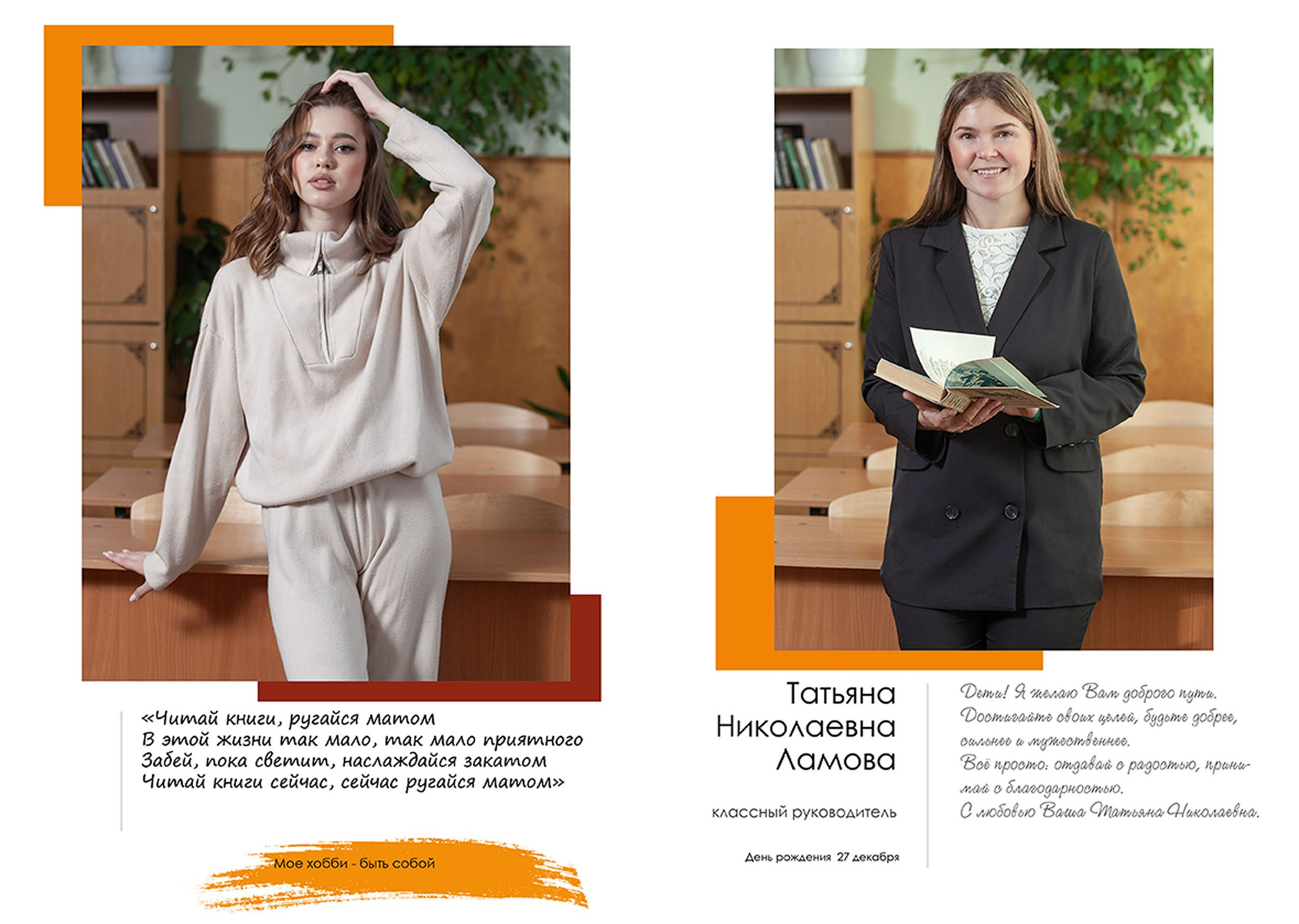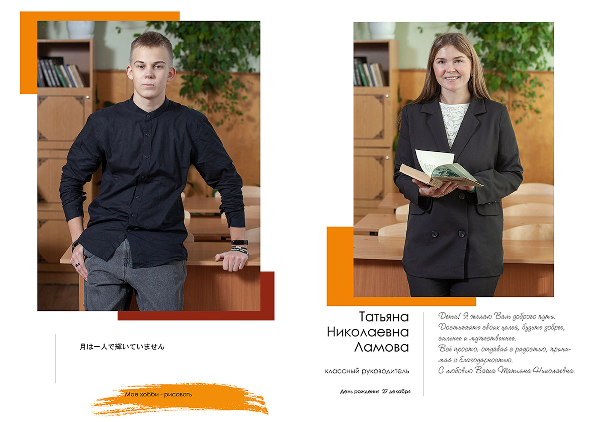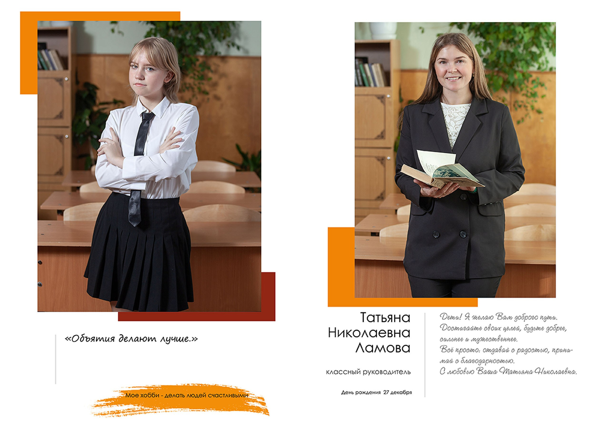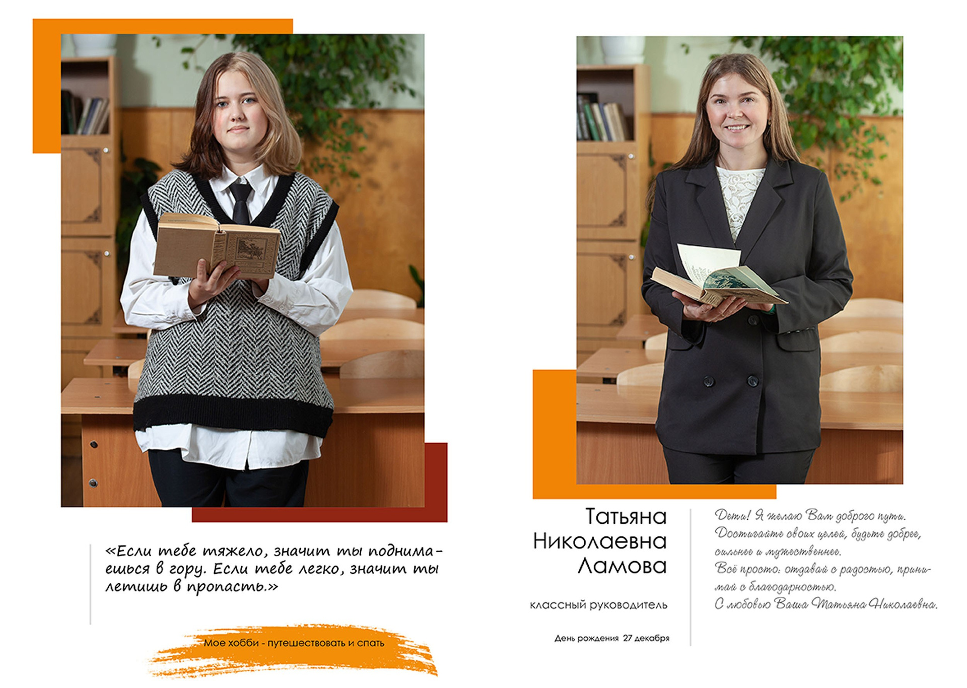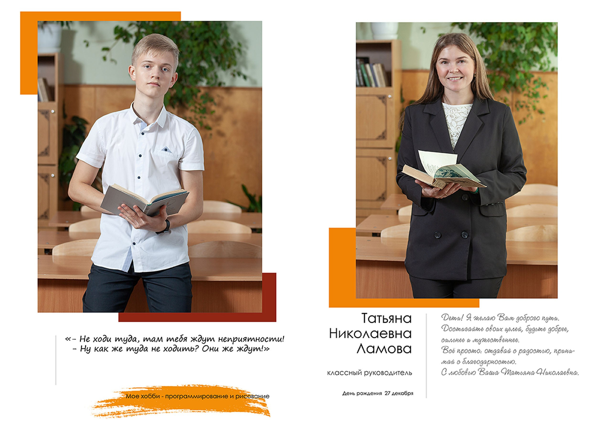 - индивидуальный разворот с личной цитатой
