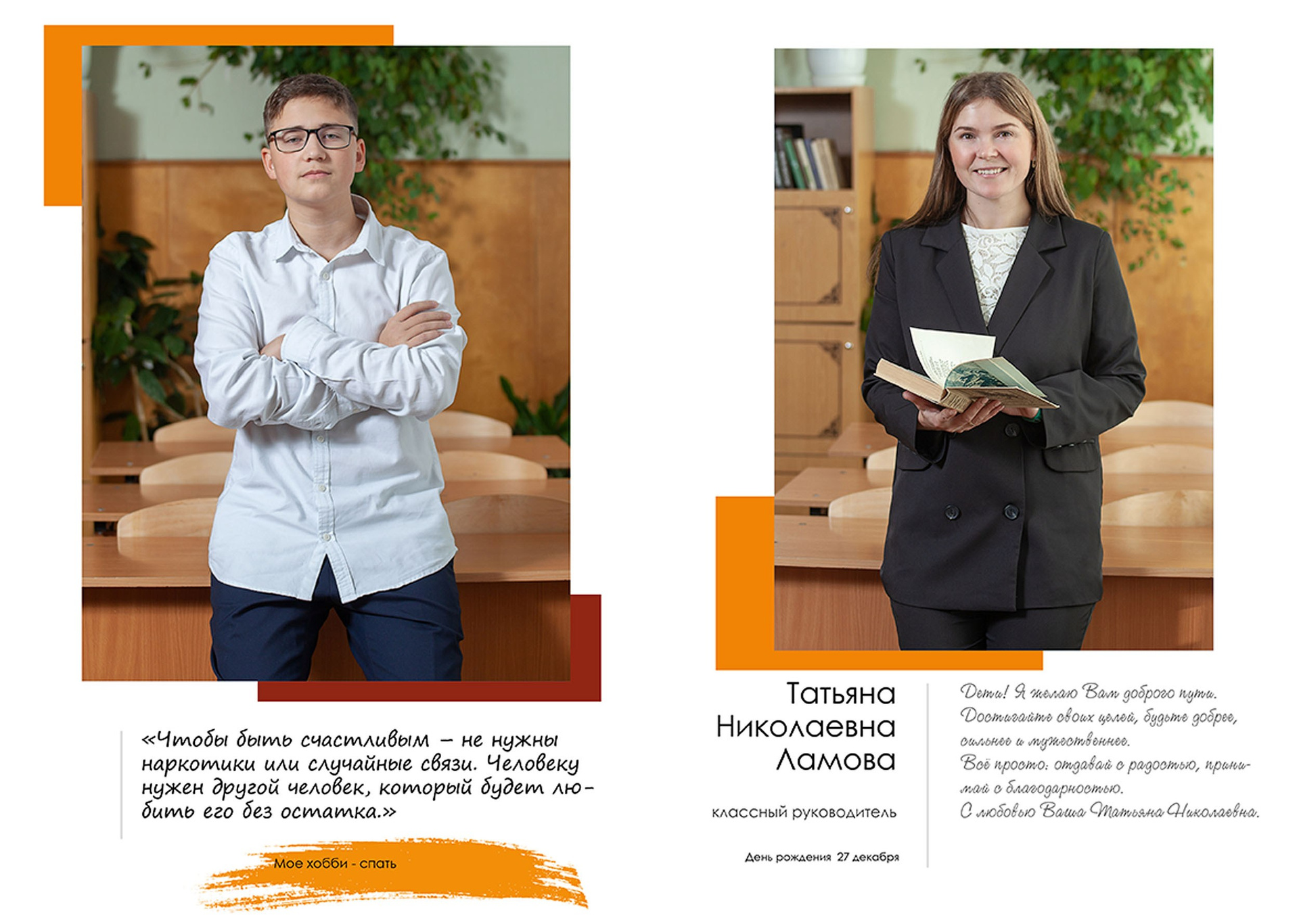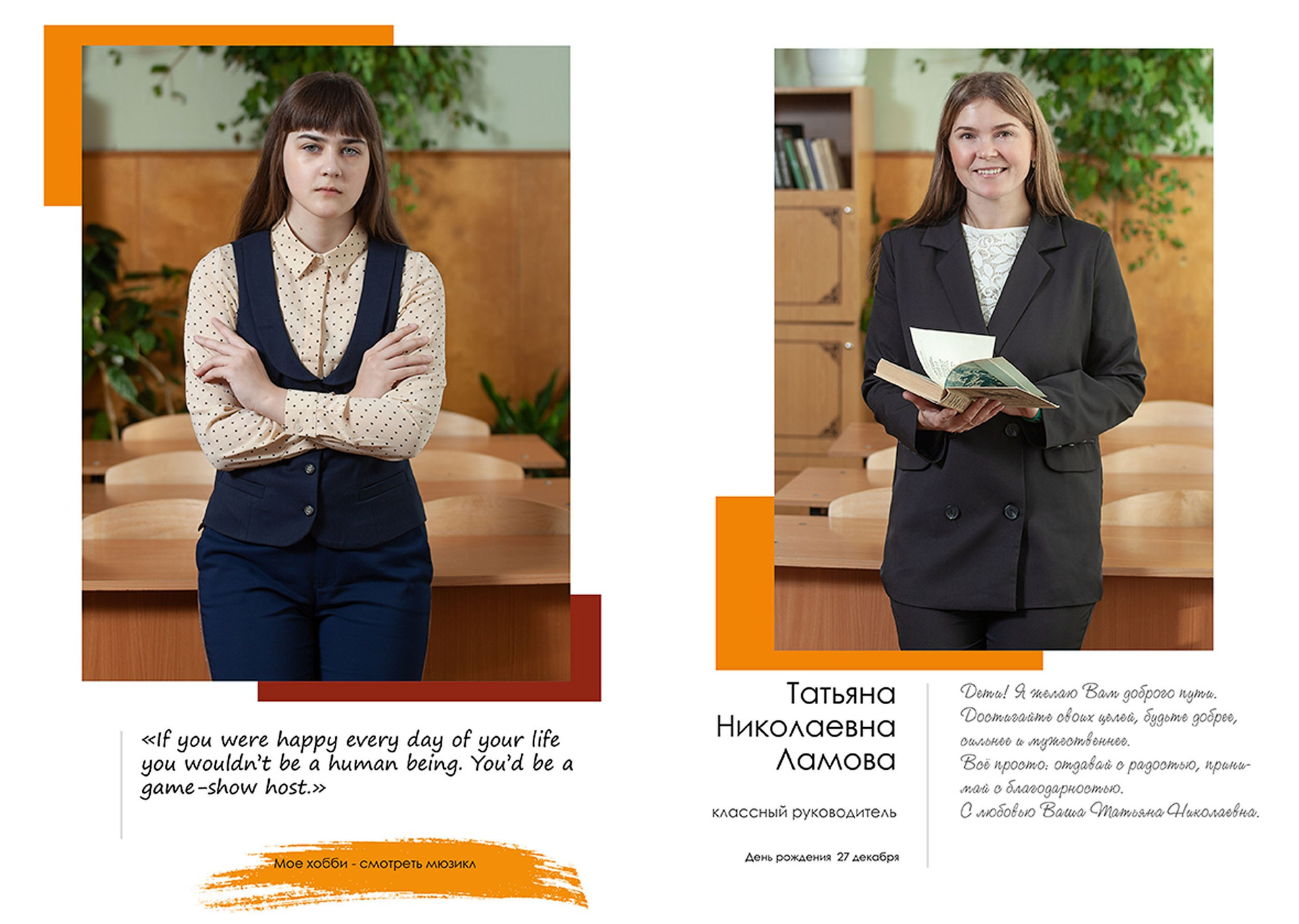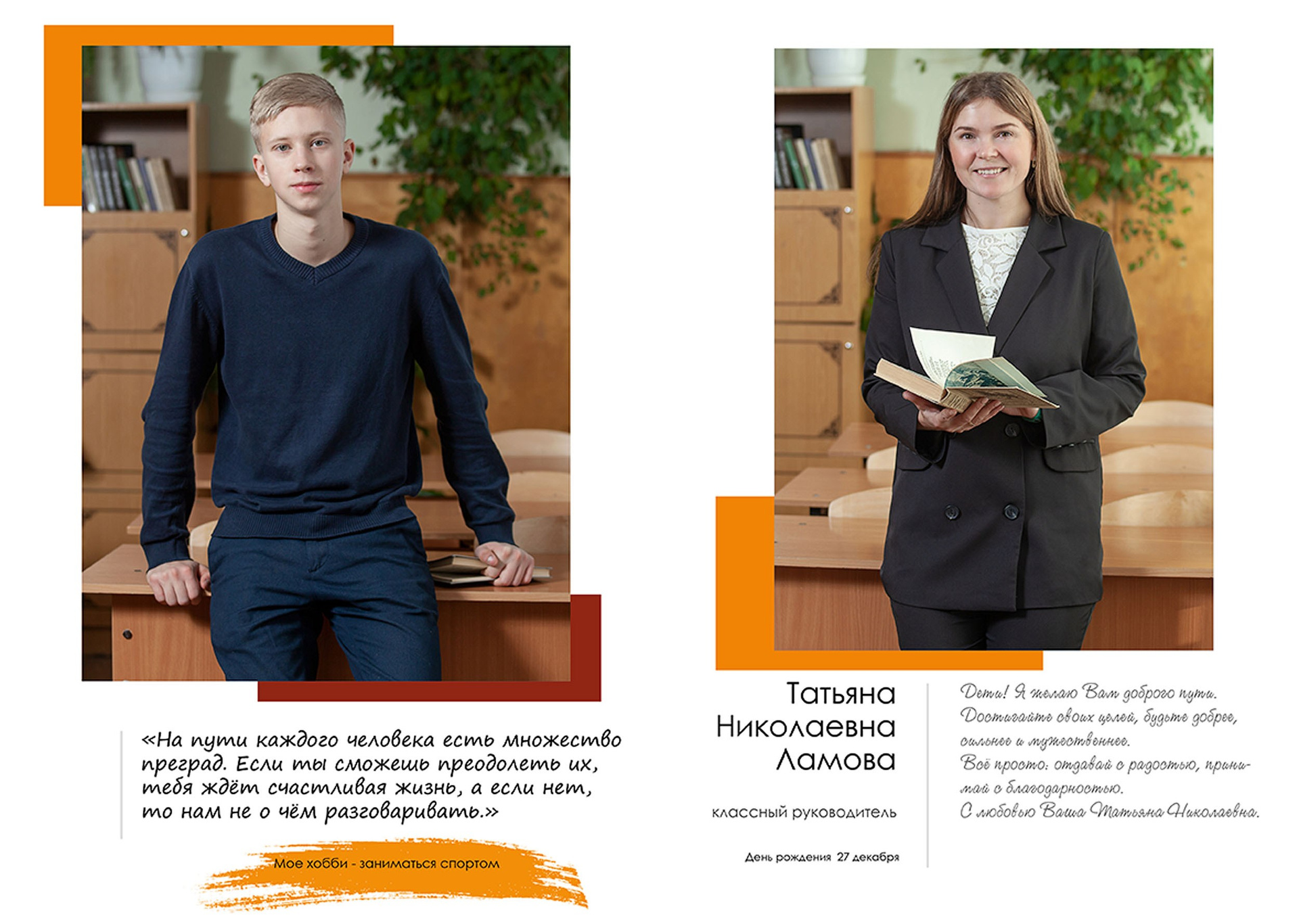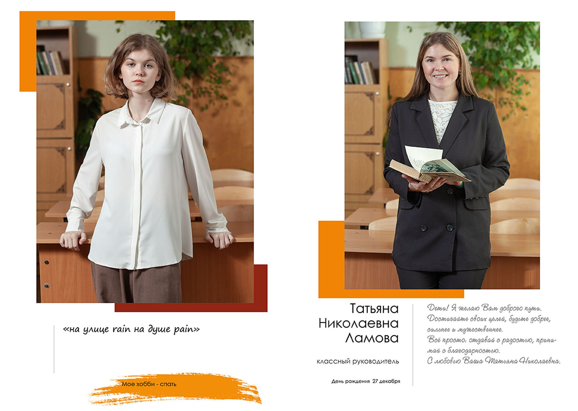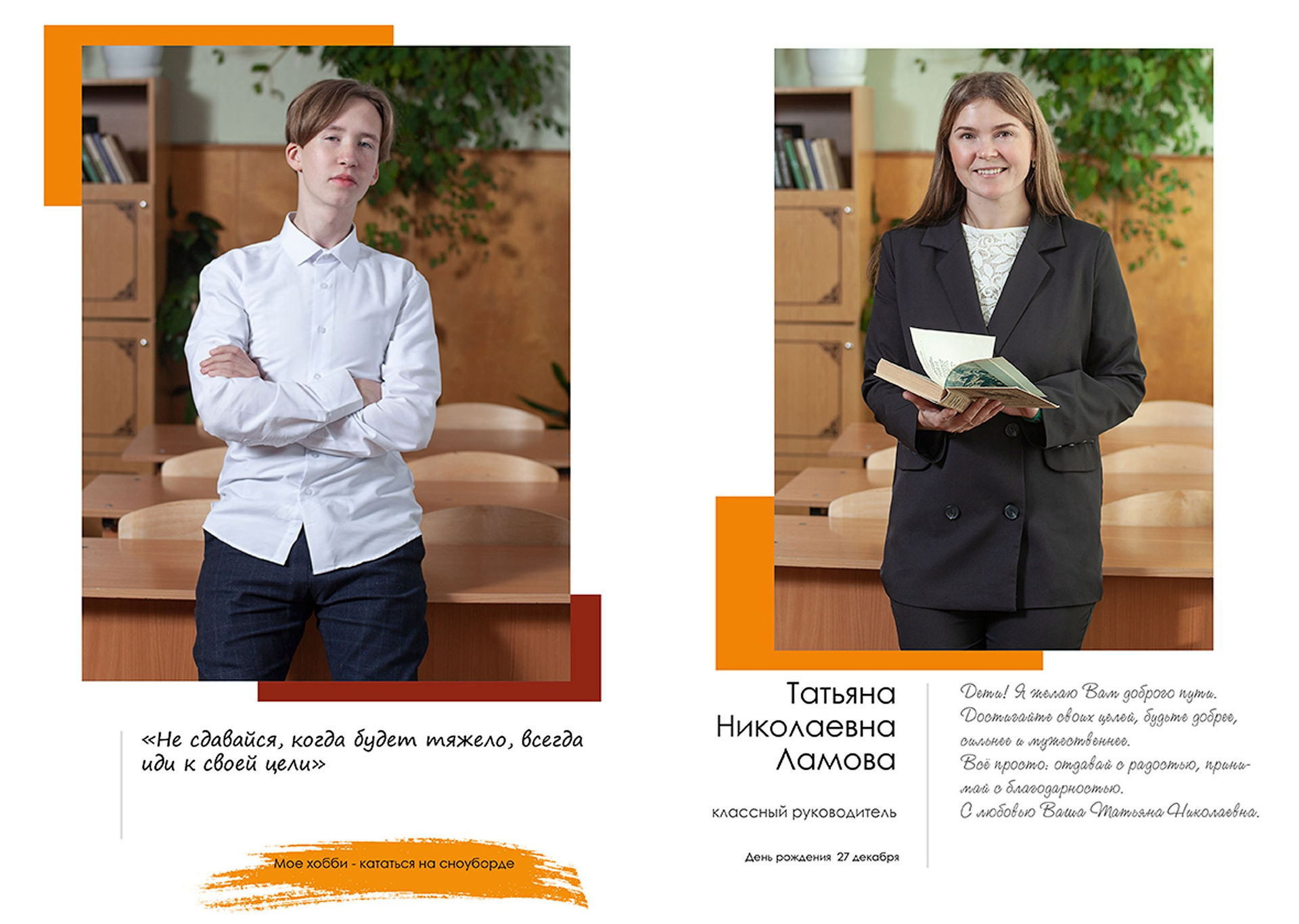 - индивидуальный разворот с личной цитатой