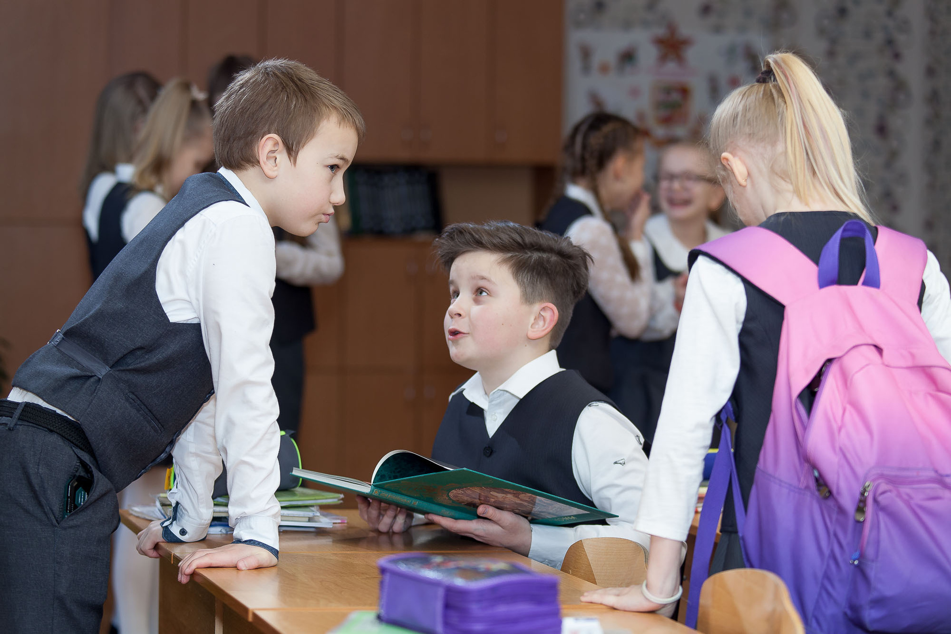 Класс: Сам класс, в идеале, должен быть без плакатов на стенах и цветов на шкафах. Чем меньше будет всяких деталей на заднем плане, тем лучше.