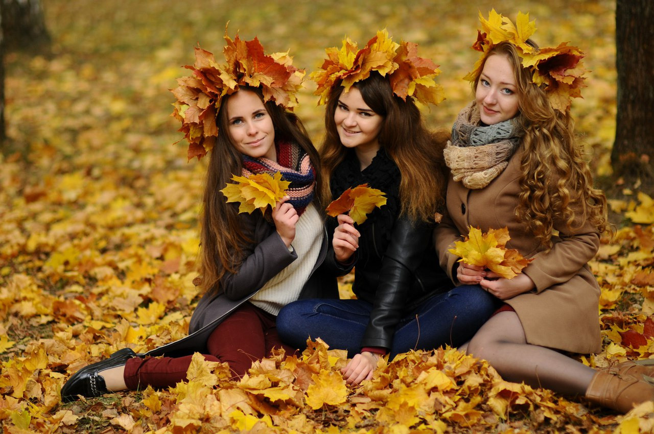 Атрибутика — возьмите с собой плед, термос с горячим чаем (пригодится по прямому назначению). Может кто-то увлекается гитарой? Можно взять инструмент. Фото с книгами также имеет место быть. Если прихватите сумки, рюкзаки, то можно сымитировать ситуацию как-будто вы идете из школы по осеннему парку.