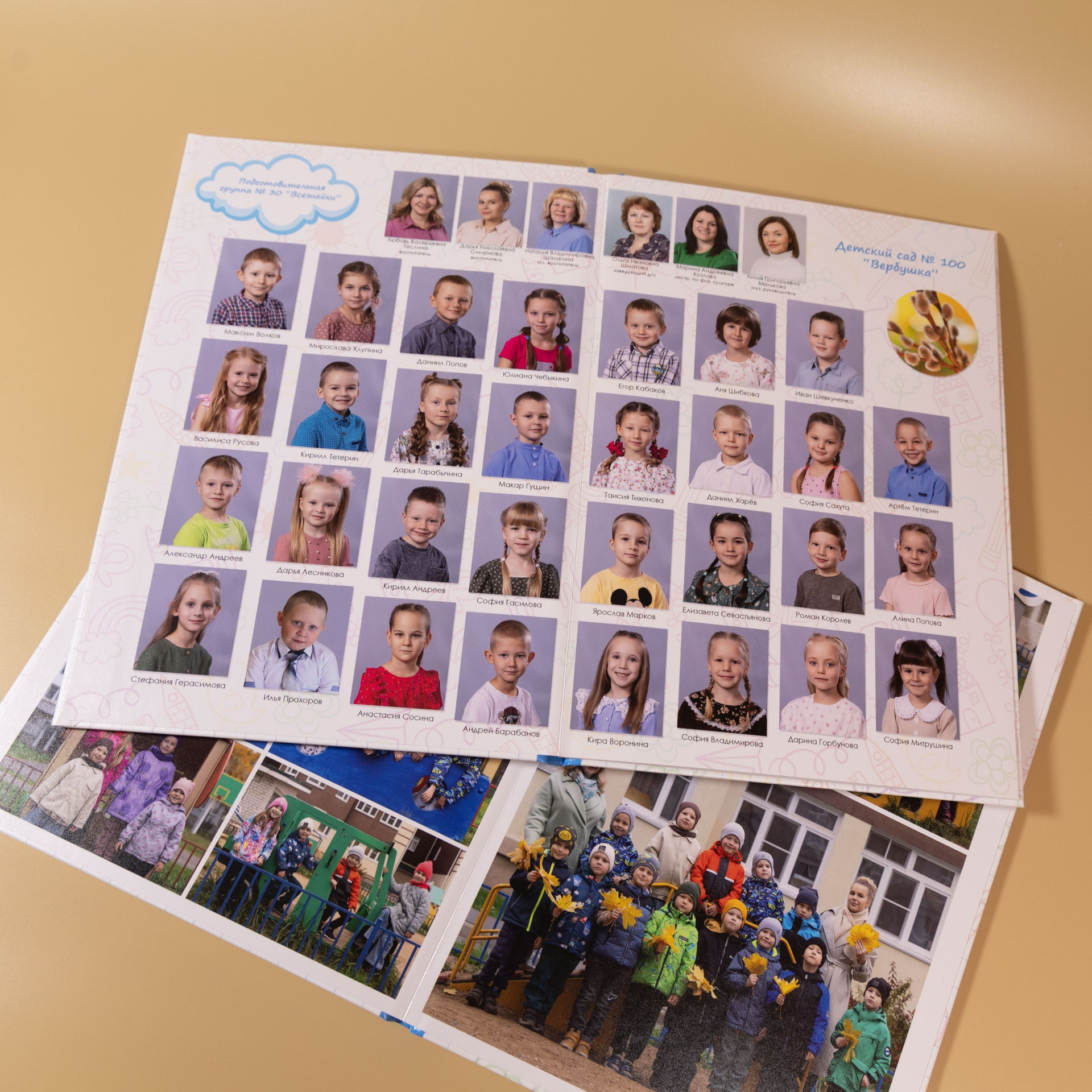 - разворот с групповыми фотографиями