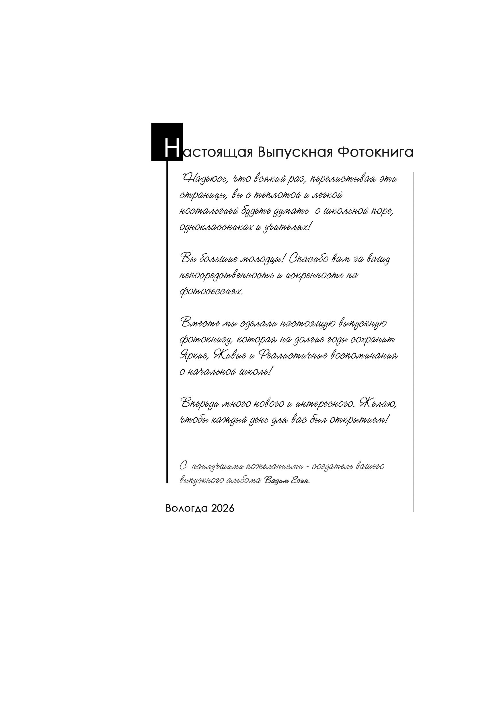 Выпускной альбом «Эссе». Формат 20*30 см с ламинированной текстовой обложкой.