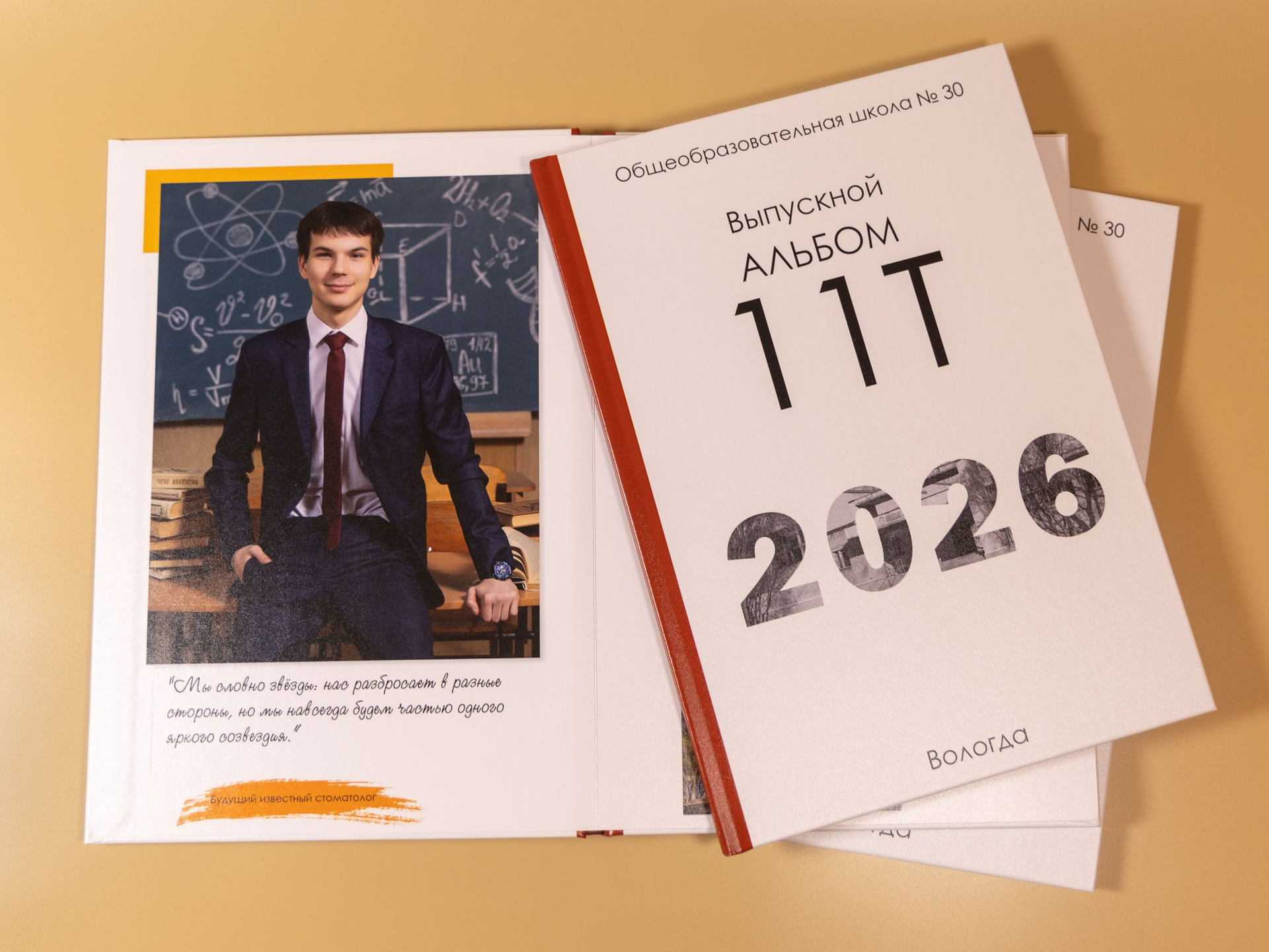 Выпускной альбом «Компромисс». Формат 20*30 см с зернистой ламинированной обложкой.
