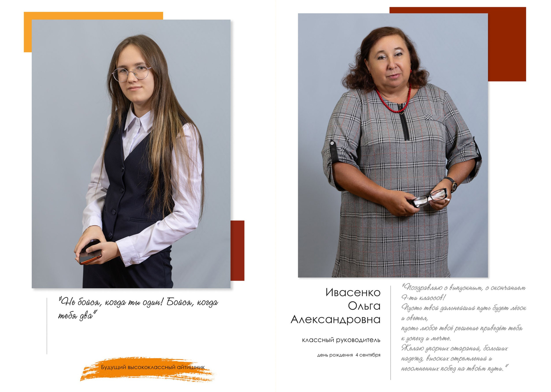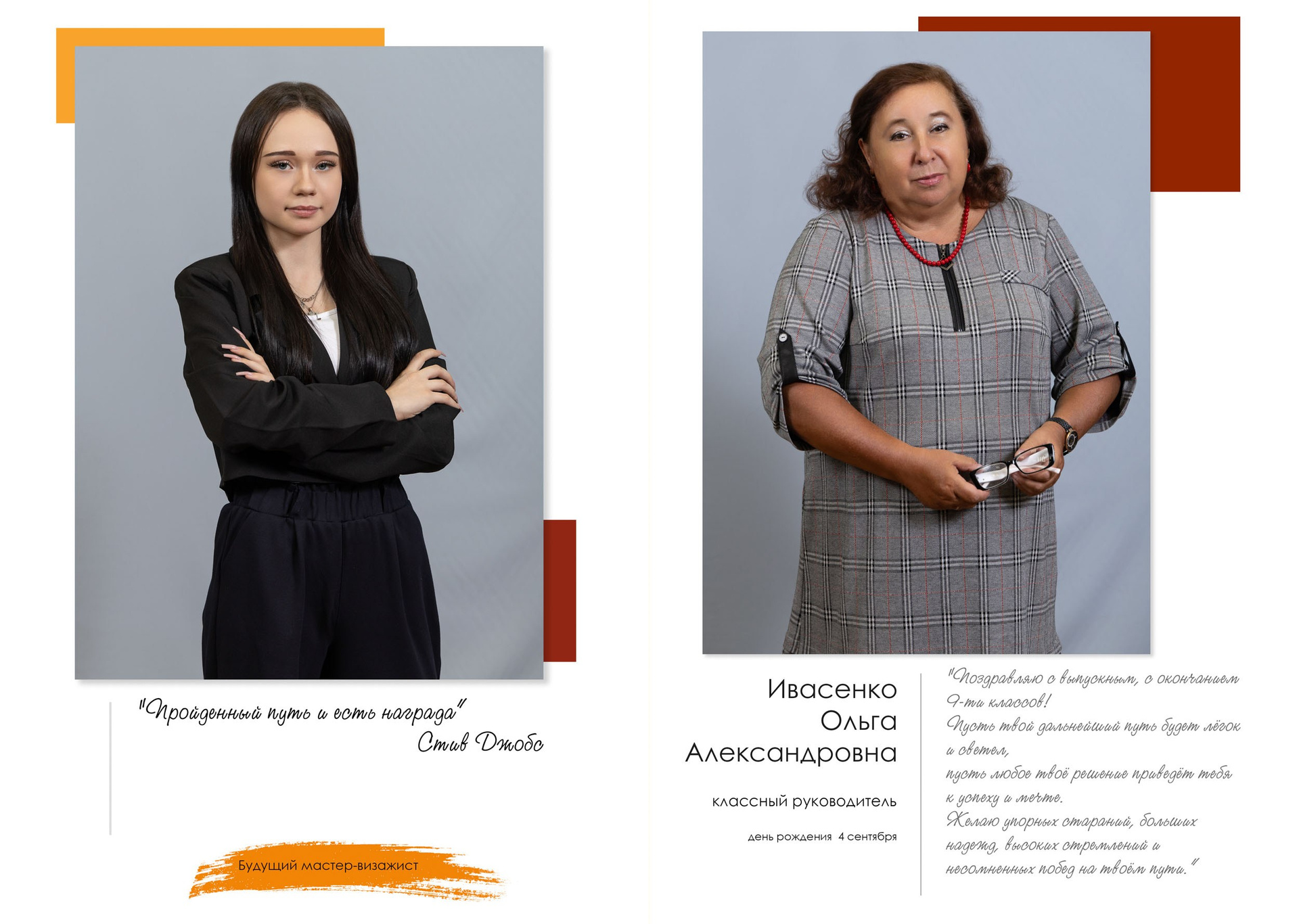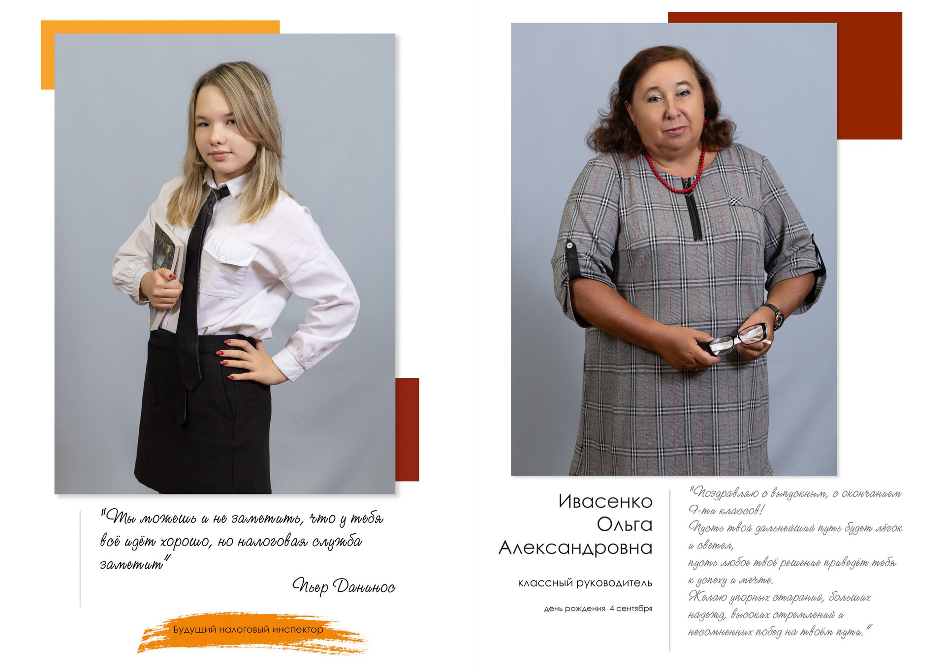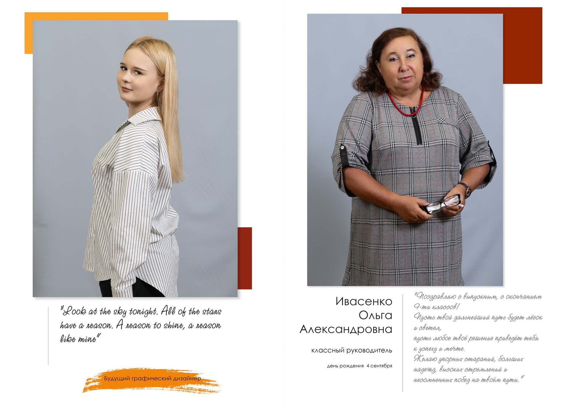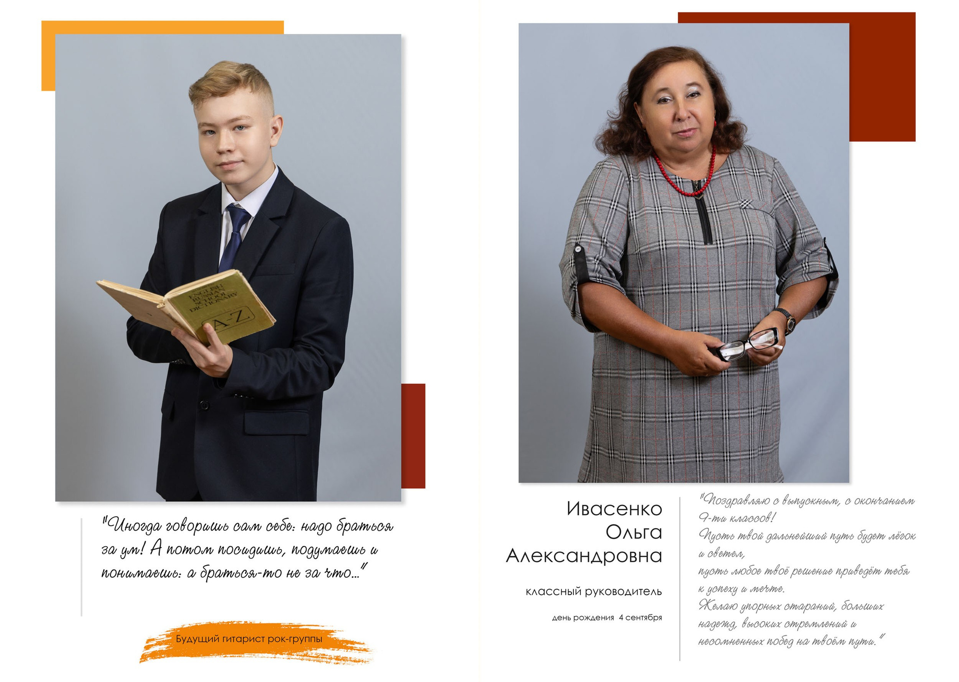 - индивидуальный разворот с личной цитатой