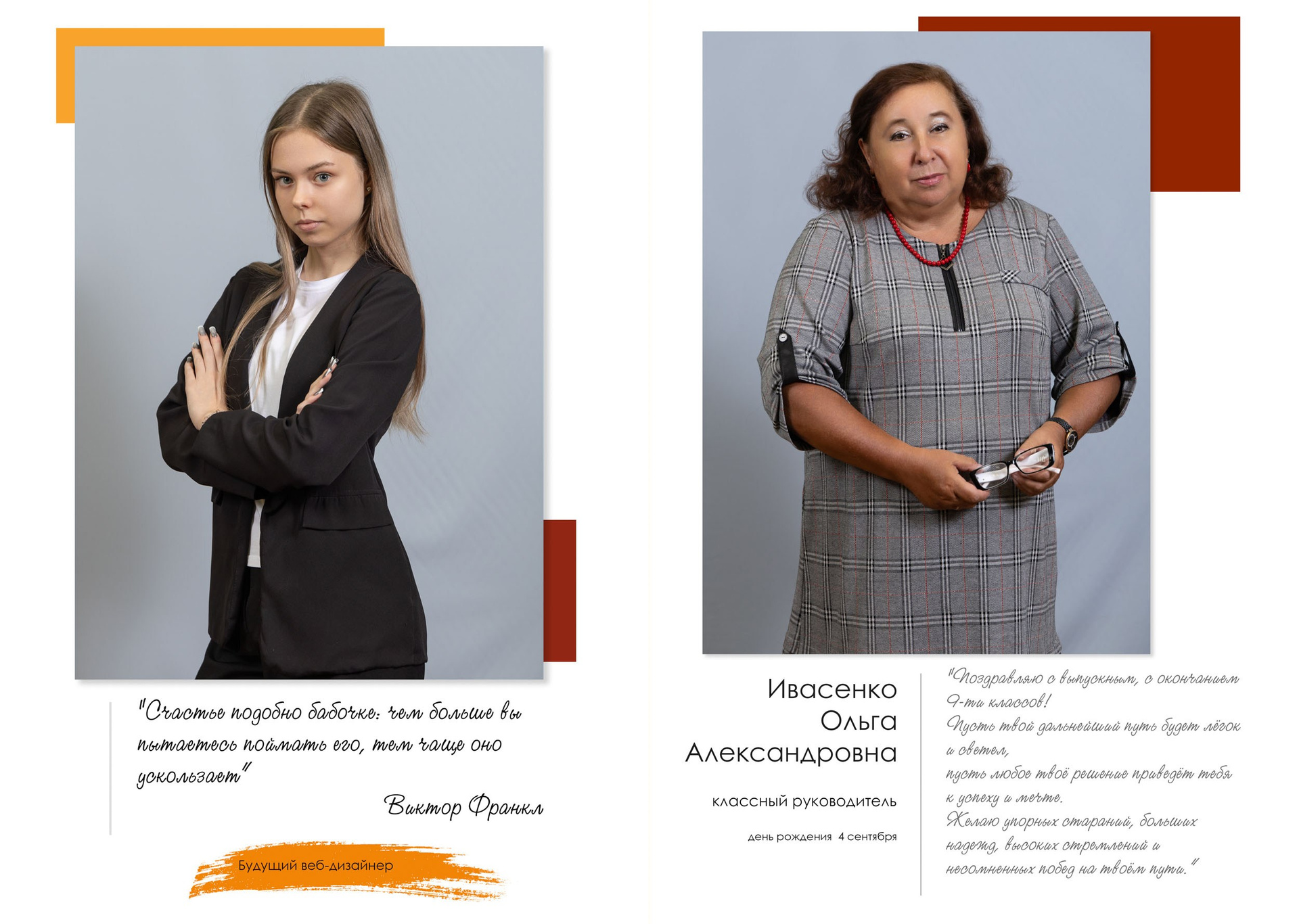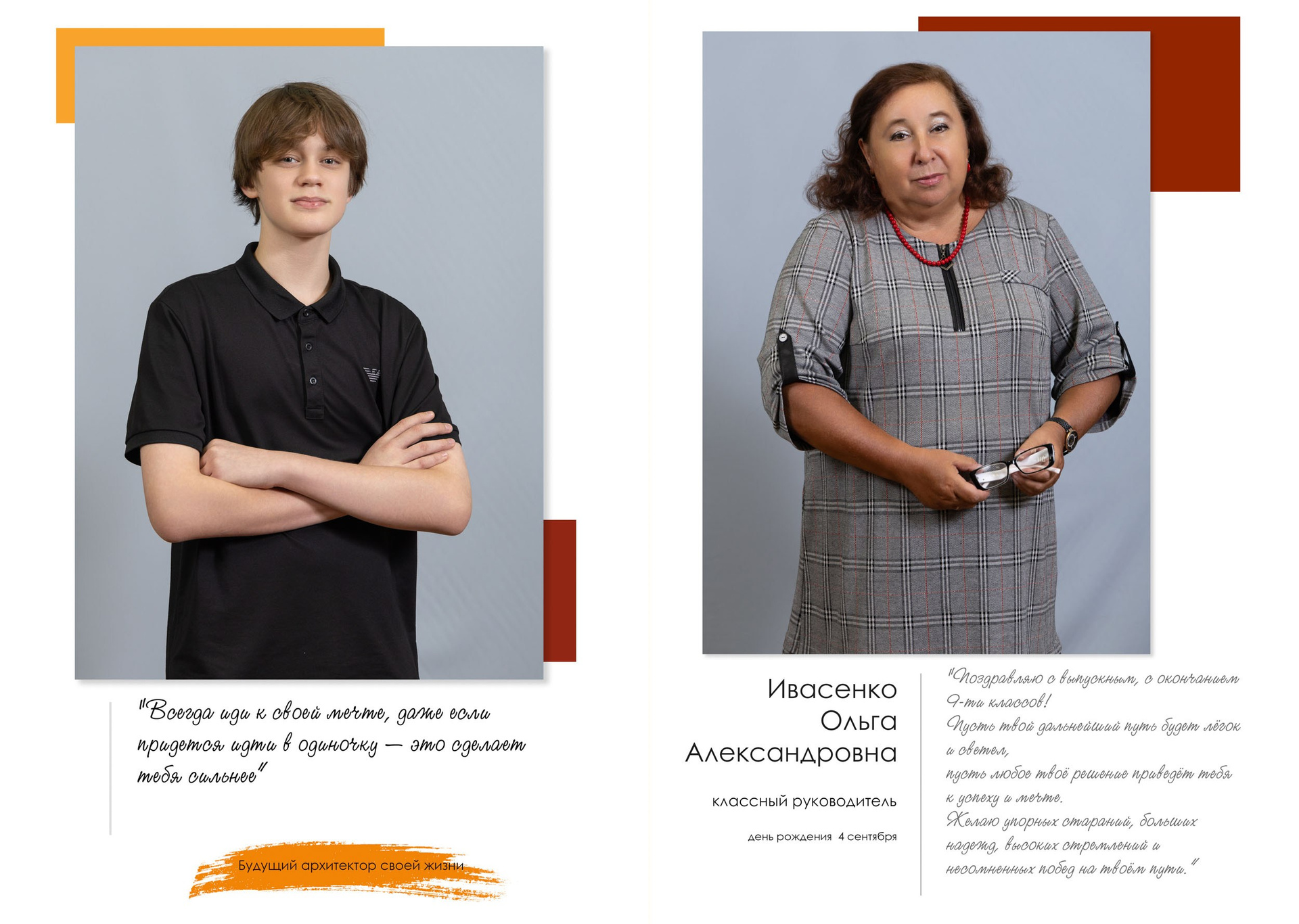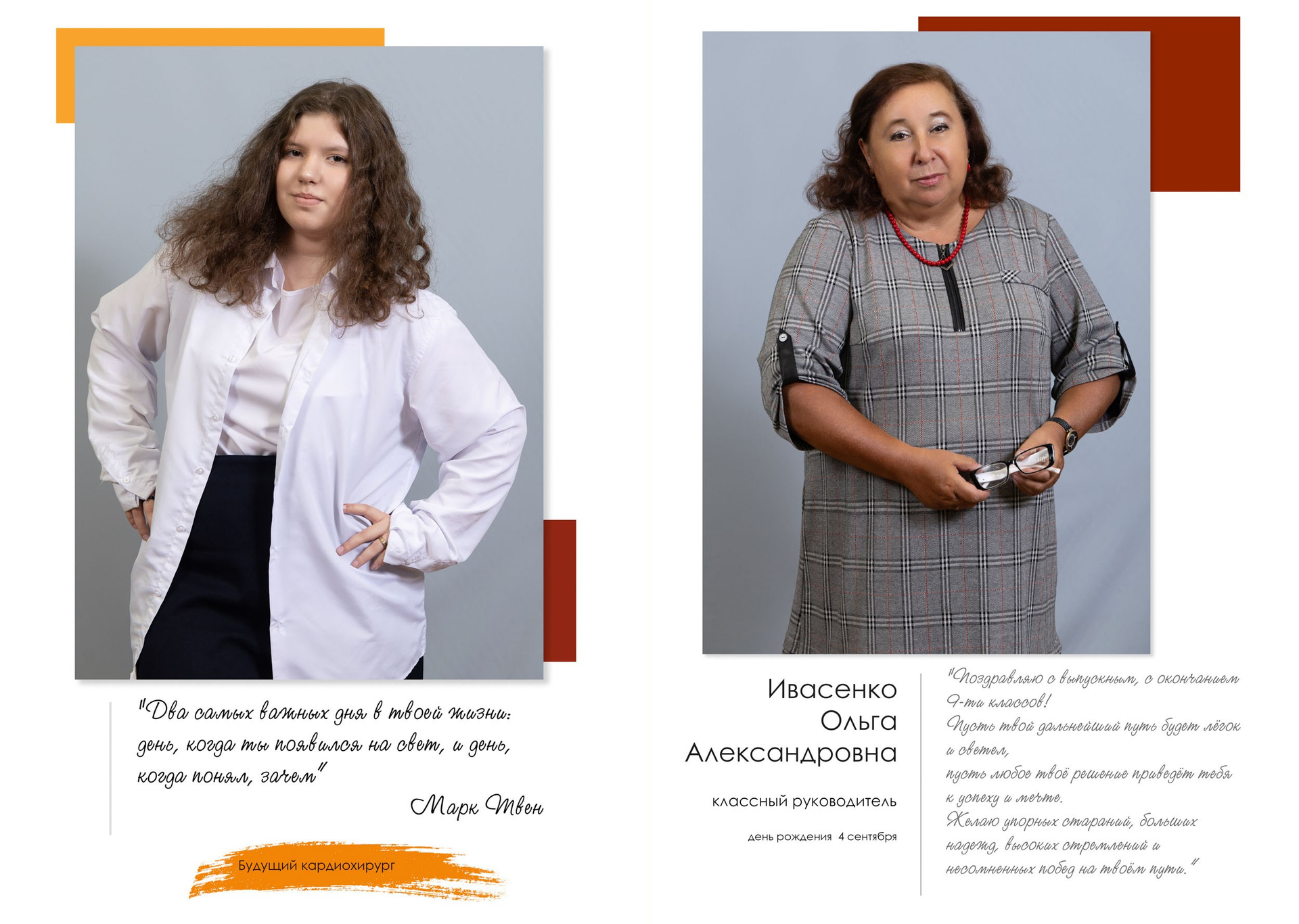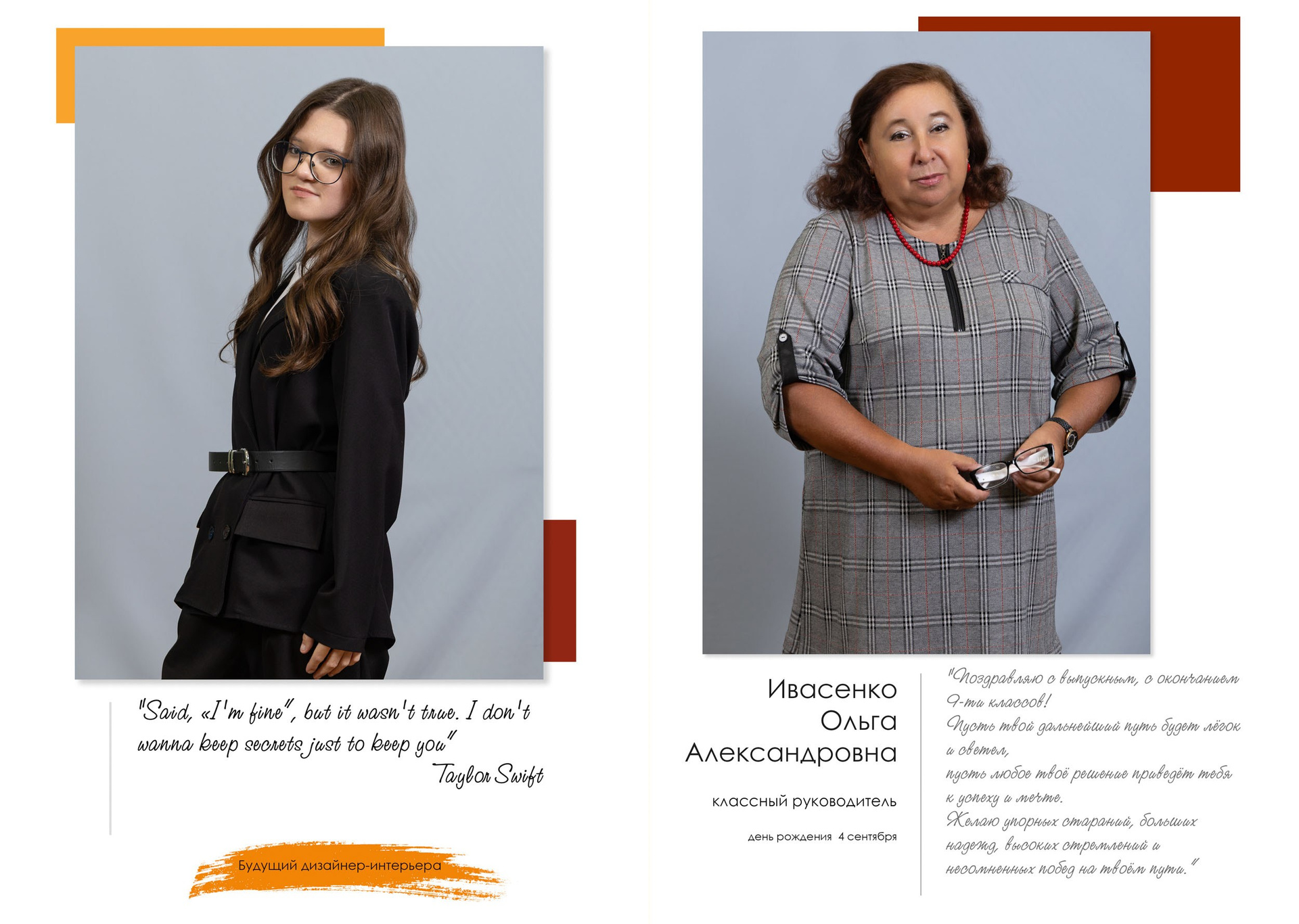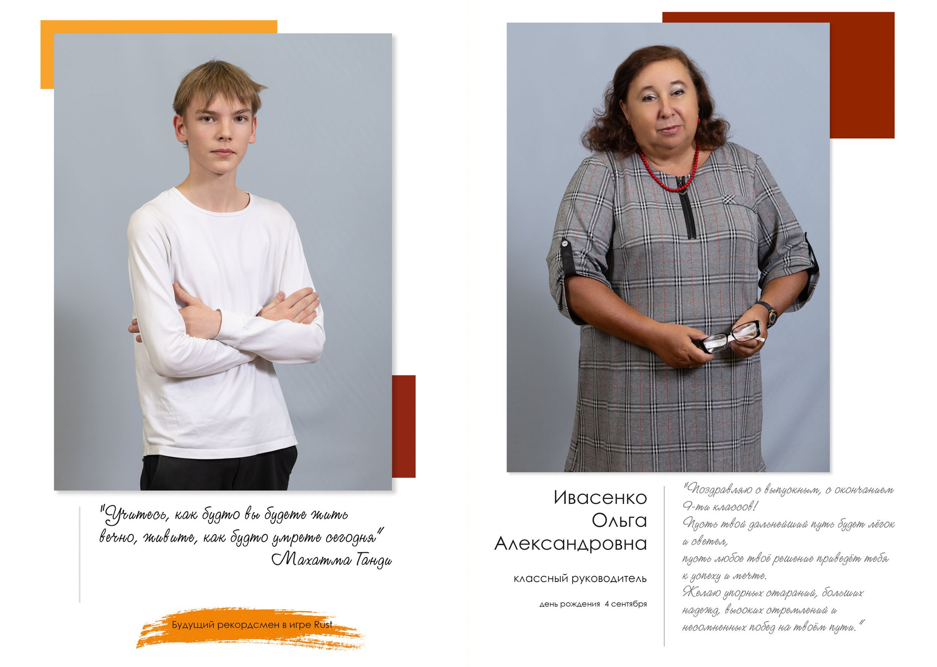 - индивидуальный разворот с личной цитатой