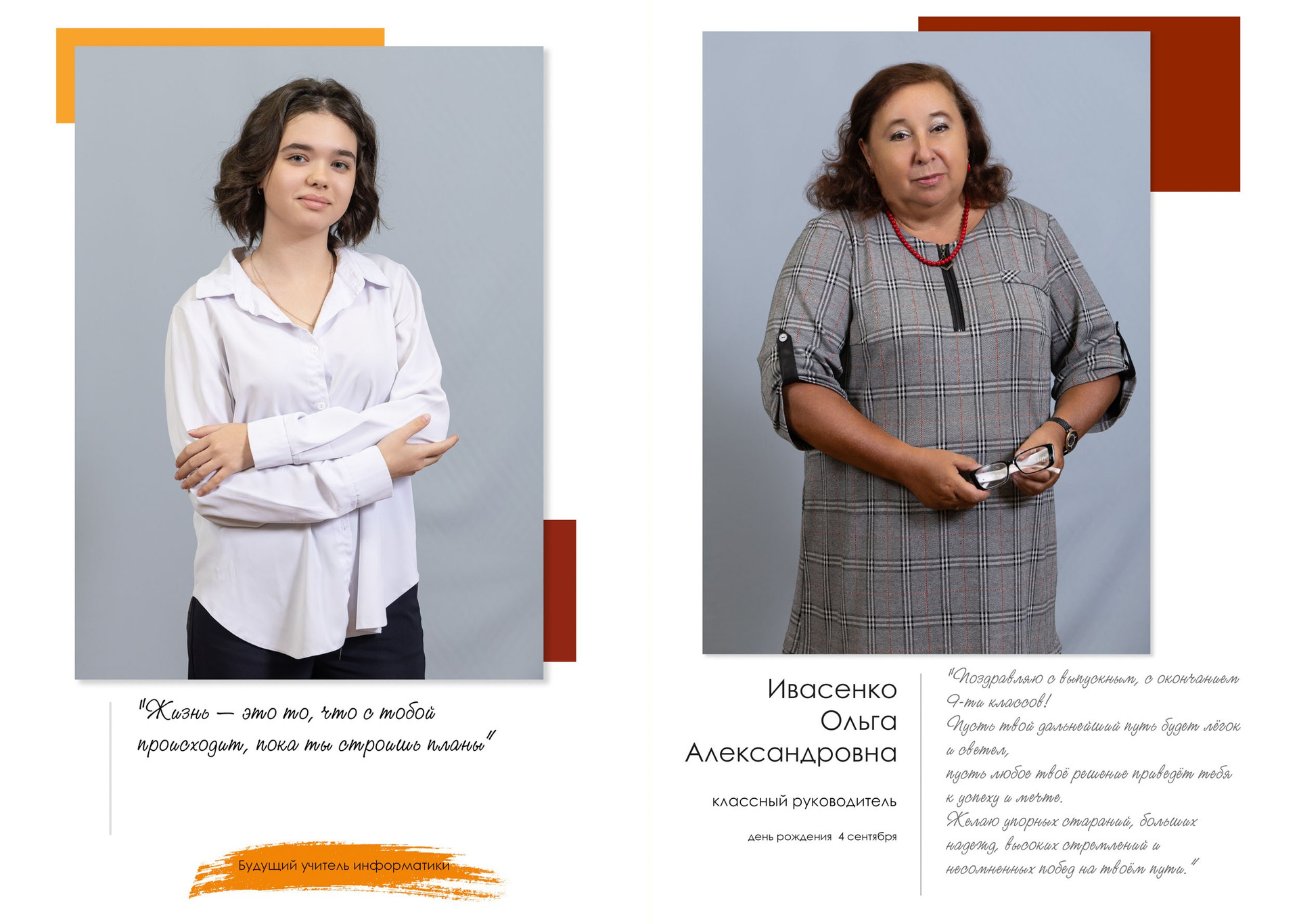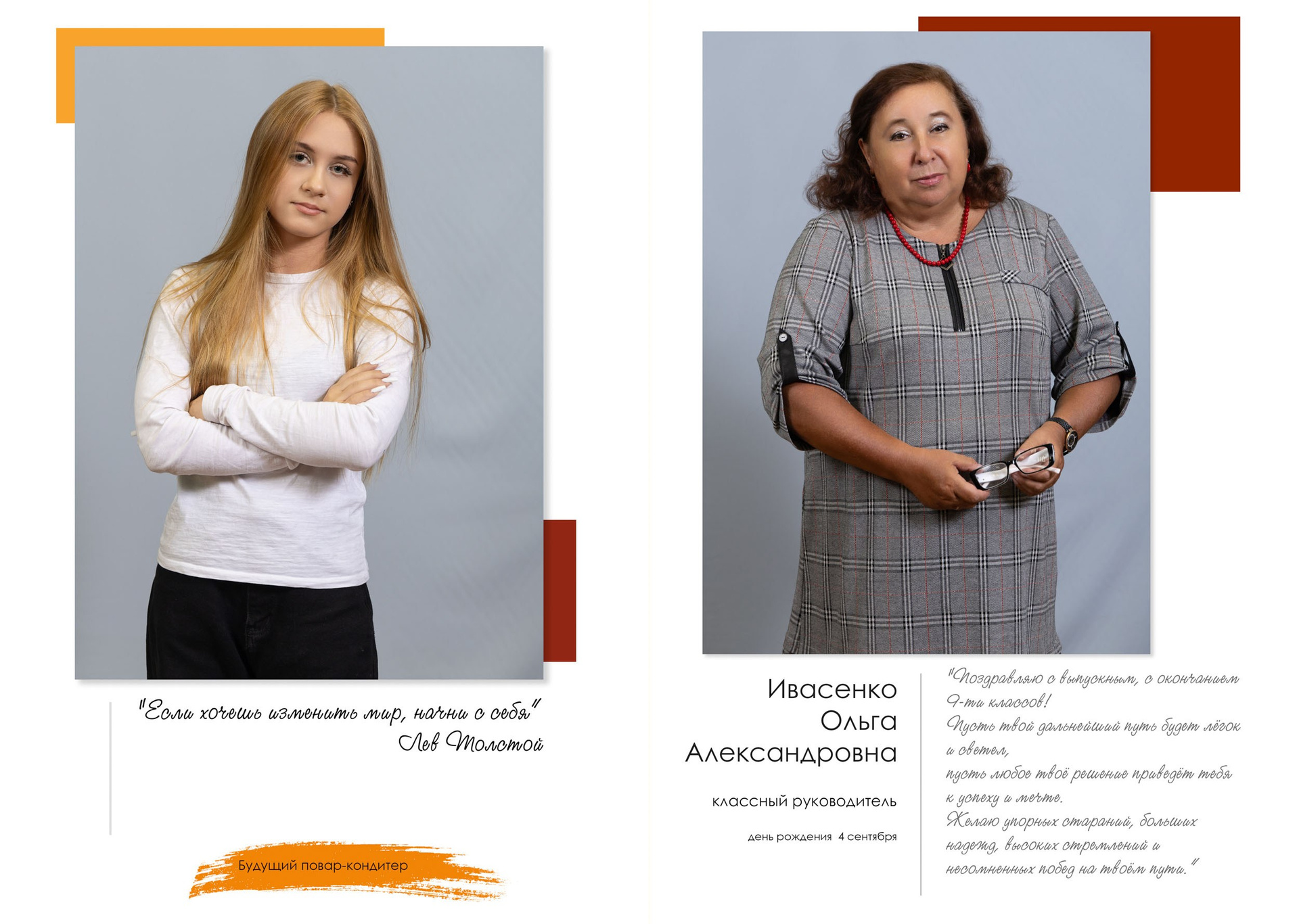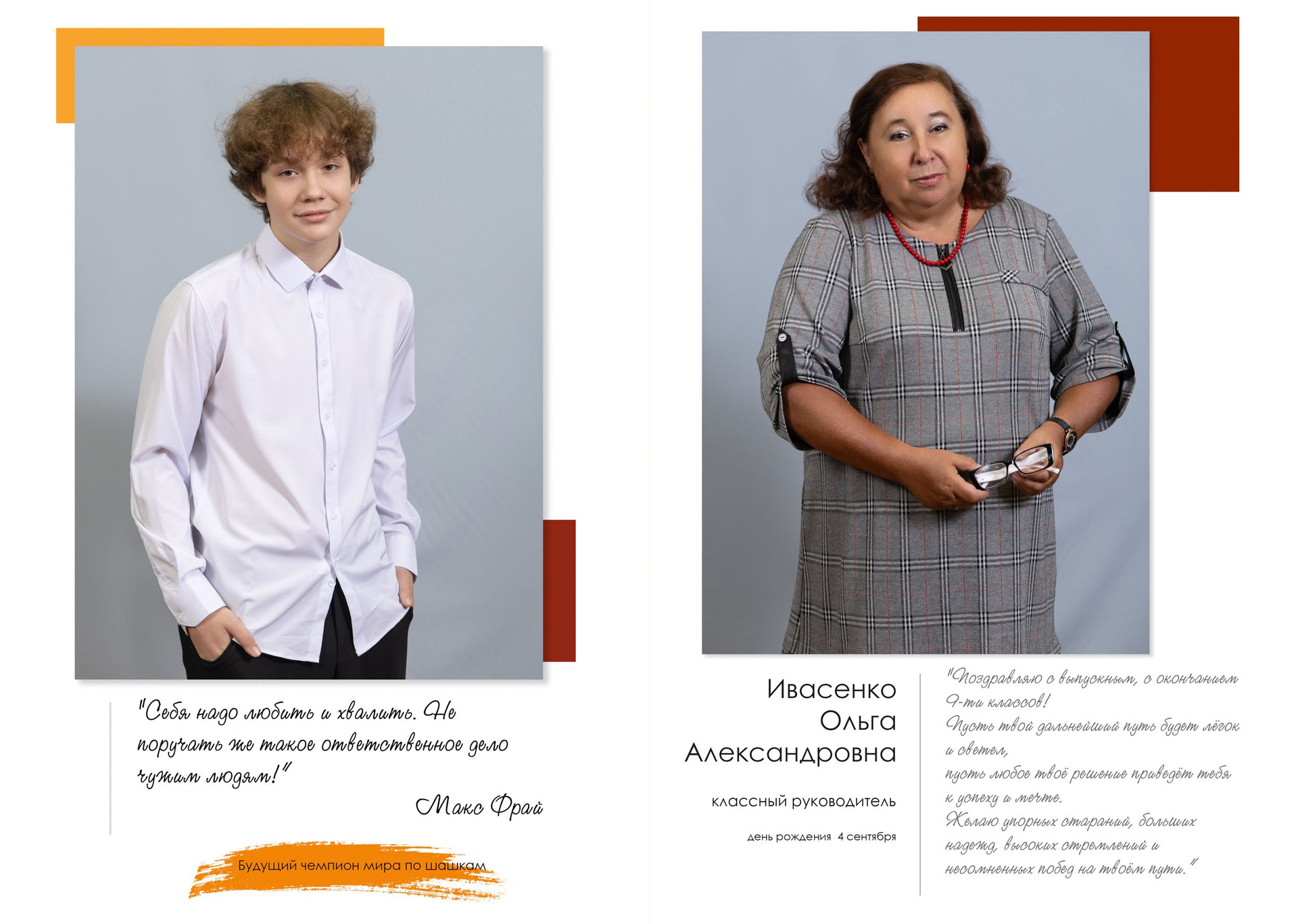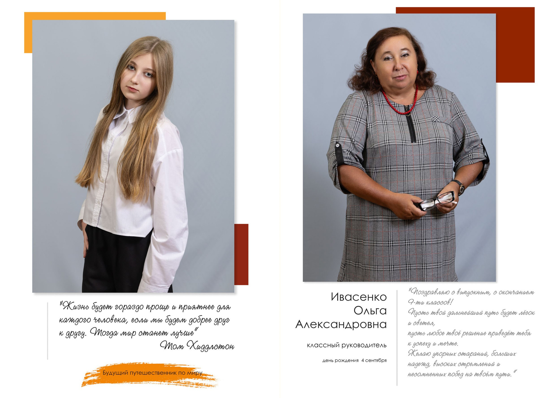 - индивидуальный разворот с личной цитатой