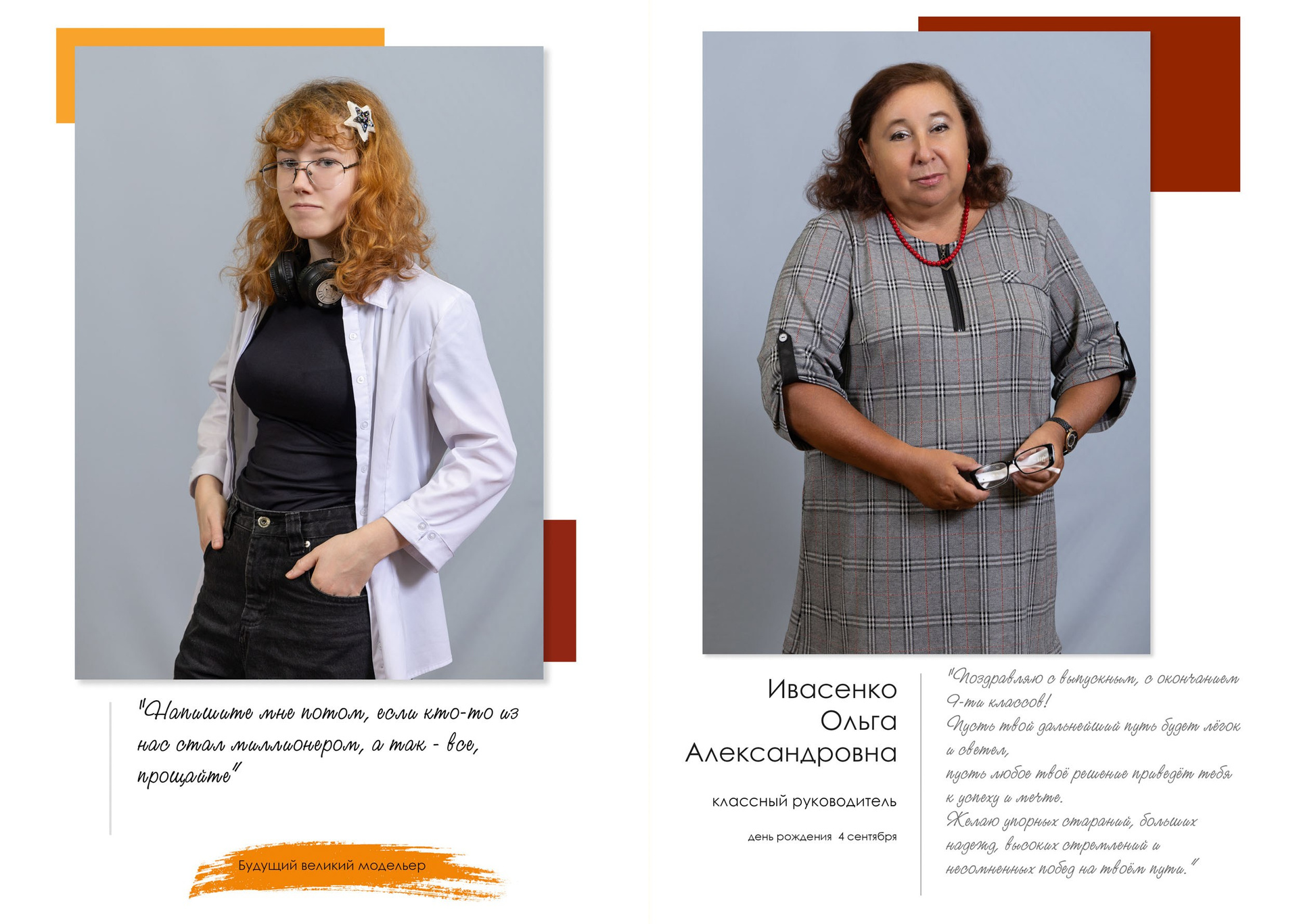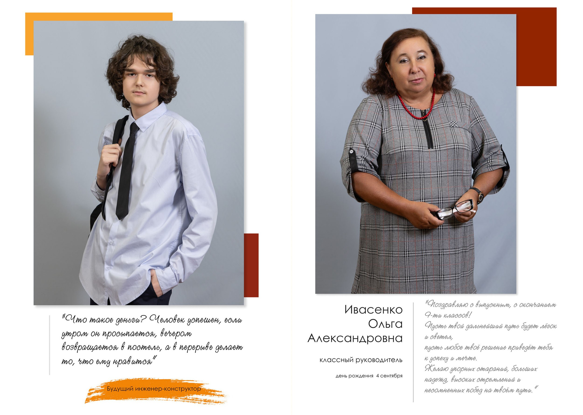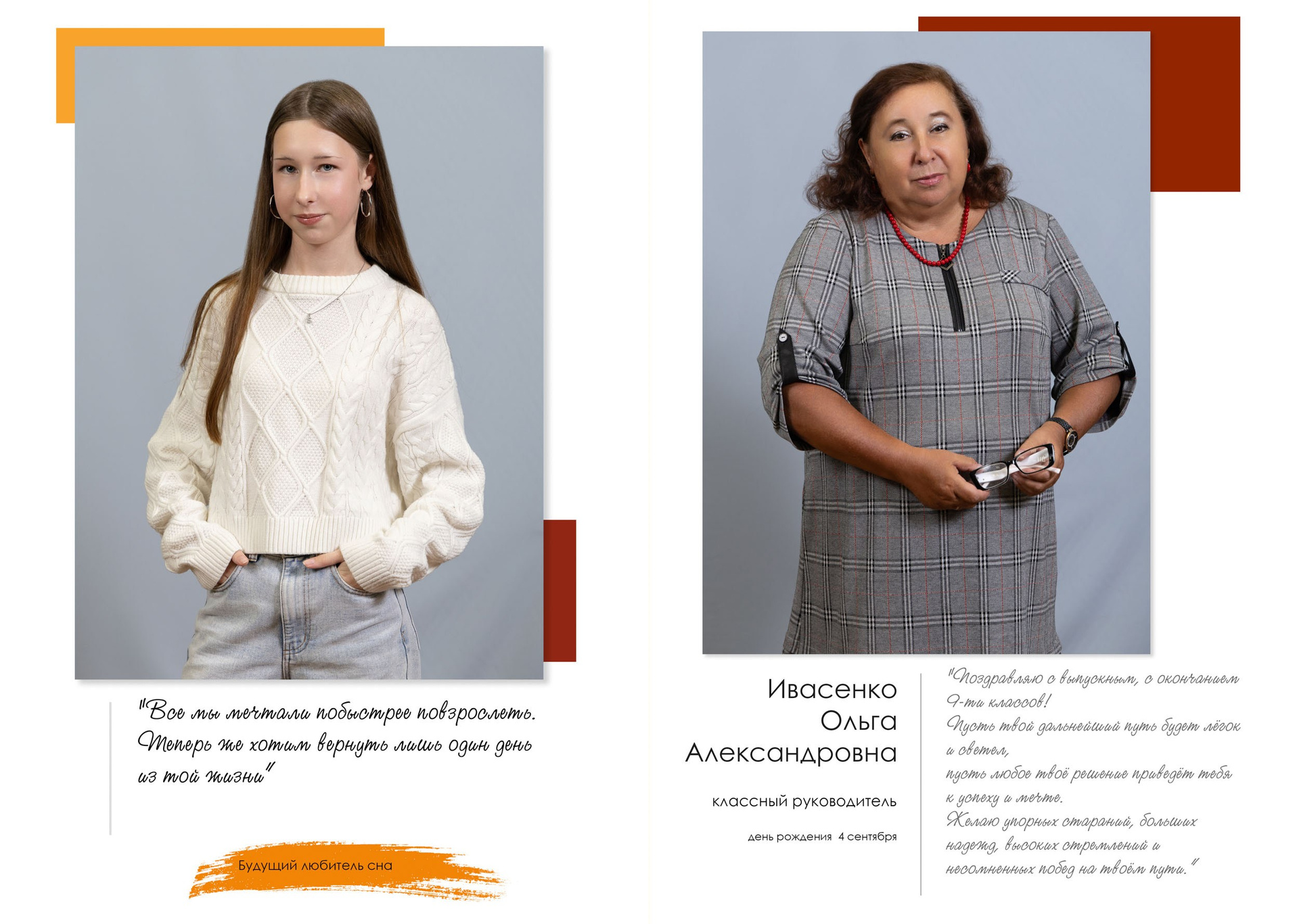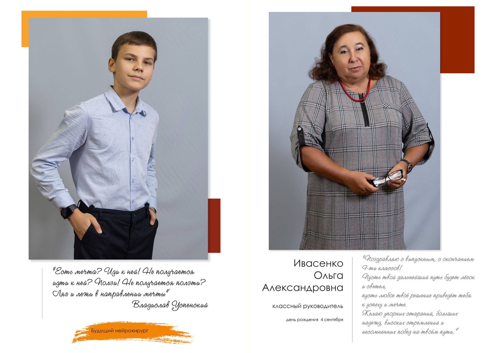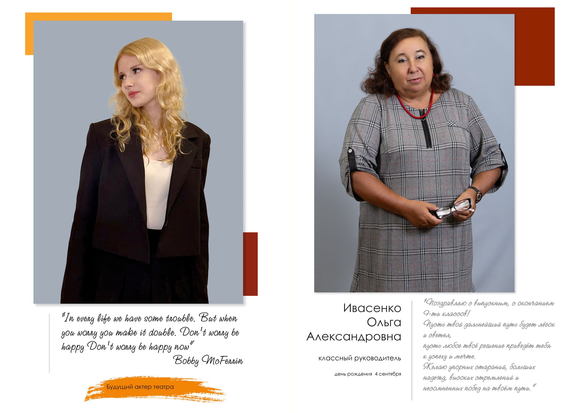 - индивидуальный разворот с личной цитатой
