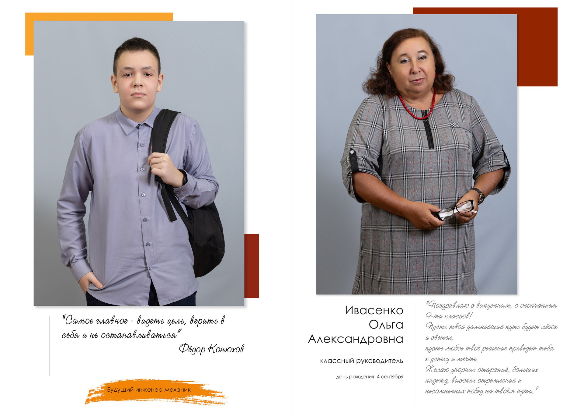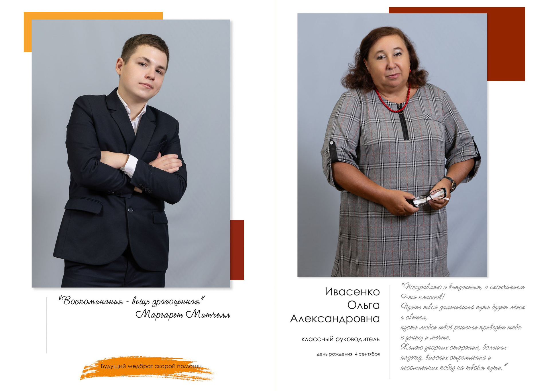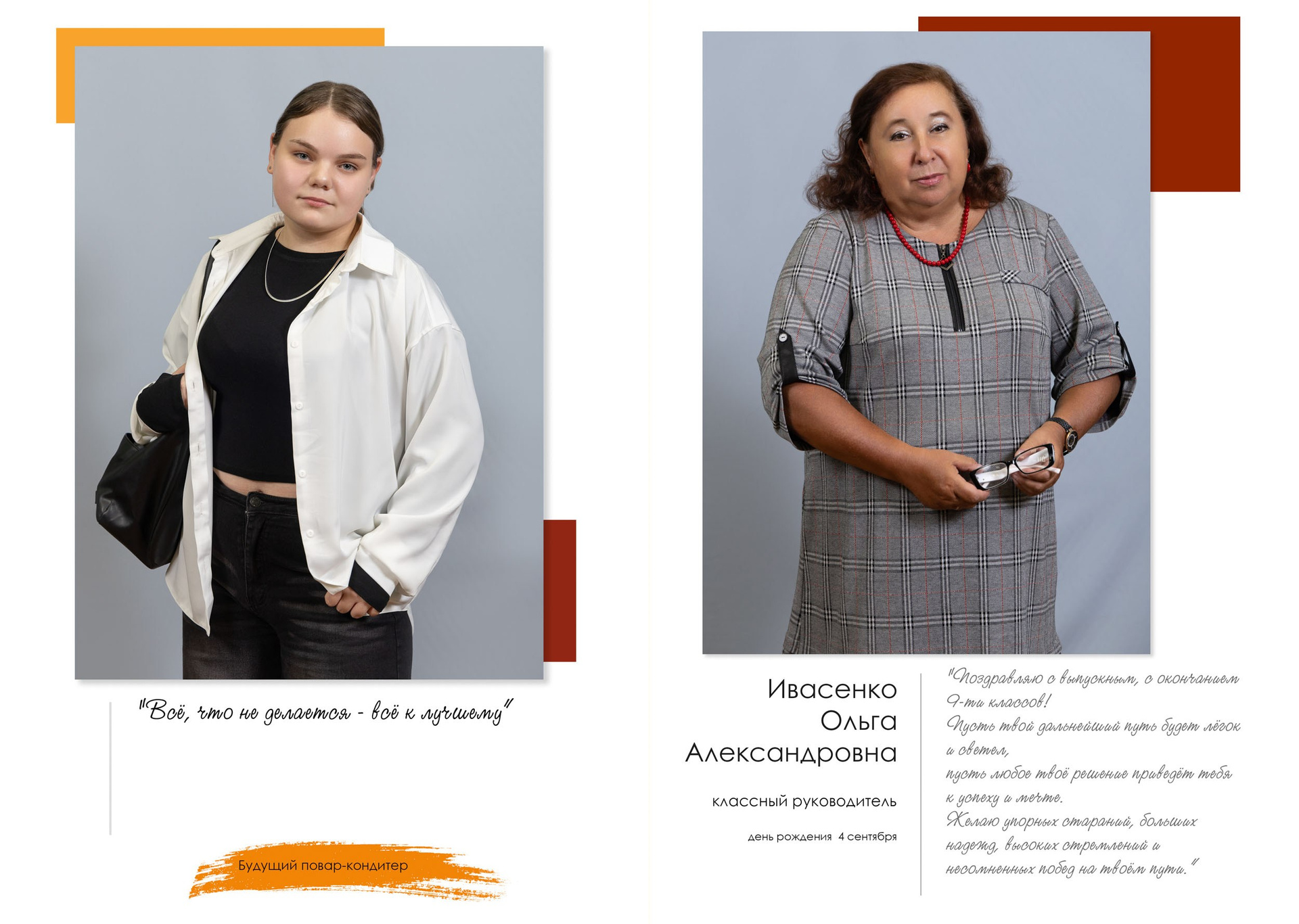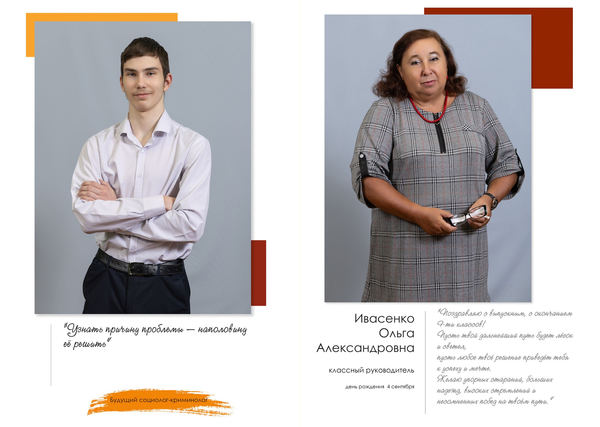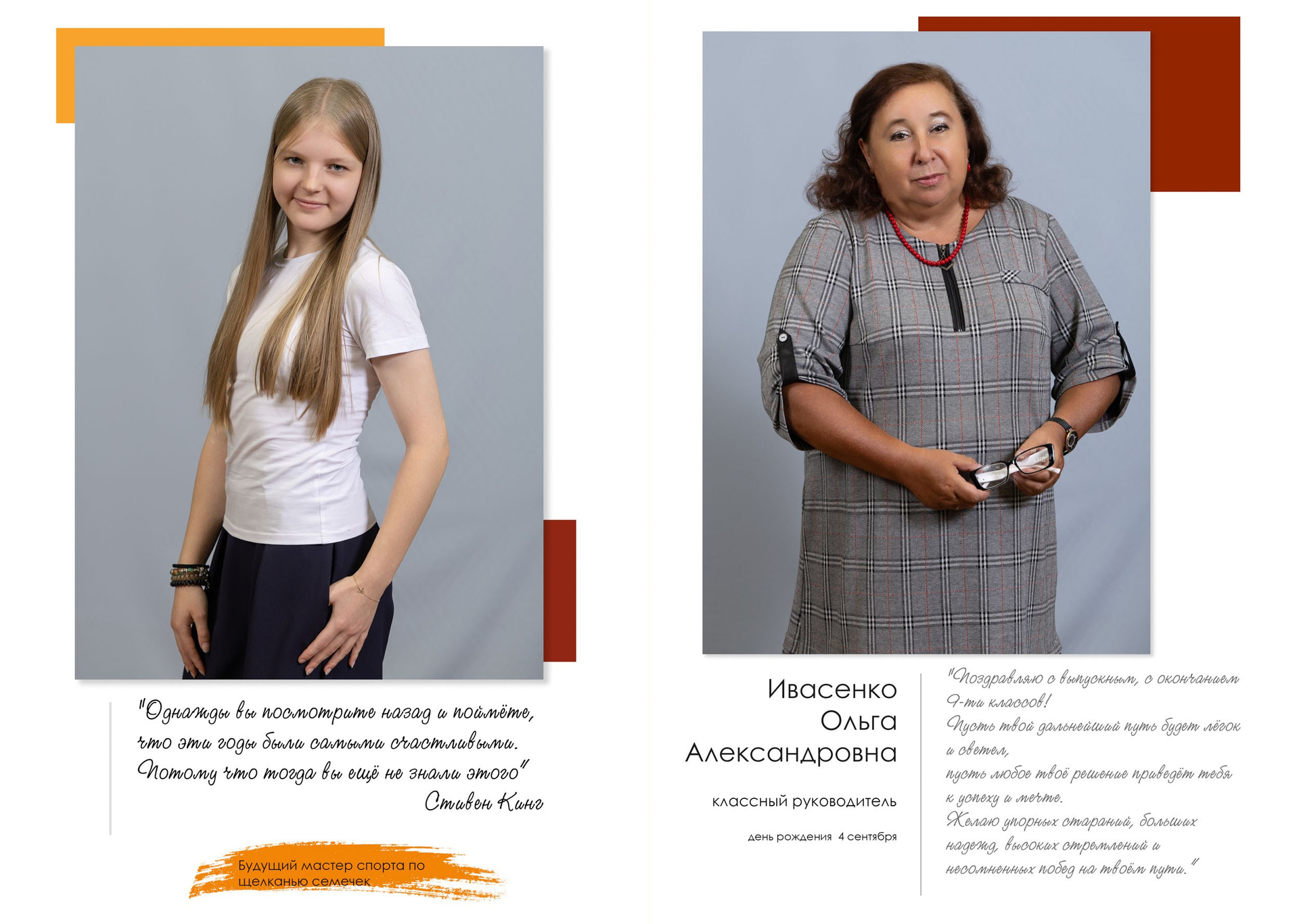- индивидуальный разворот с личной цитатой